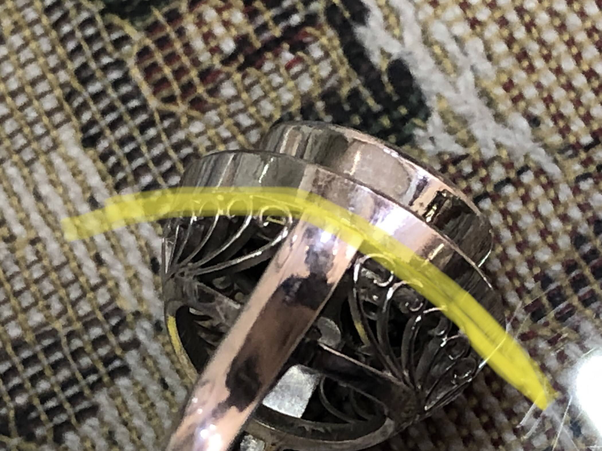 何が面白いかというと、元々翡翠が覆輪留めのために、タイタックに直接ロウ付けすると熱が伝わる。普通はそこで無理だと断る場合も多いだろうが、このリングは、タイタック丸ごと覆輪留めする事で熱問題をクリア✨しかも、正面から見て全然わからない。アイデアと技のリングなのです✨— 渕上清志(昭和のヴィンテージジュエリー (@fuchigami) October 2, 2020