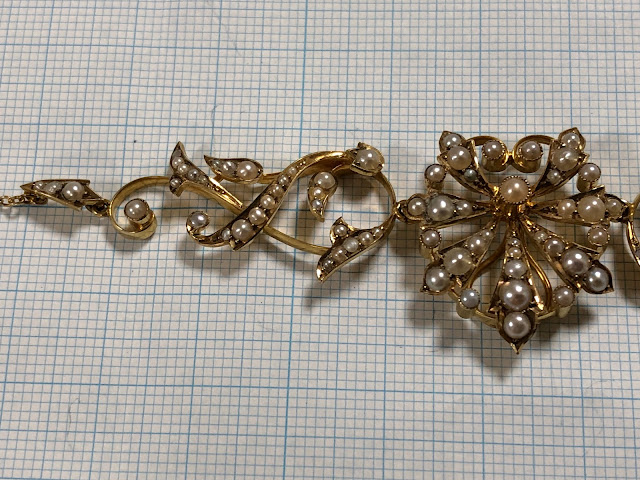 接着剤でセットされている部分や、これは真珠ではないのでは?という部分もあり、