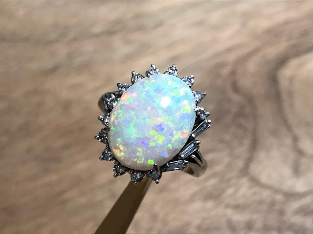 オパール ダイヤモンド取り巻き 手巻唐草 P.m900 リング #14 /1901081