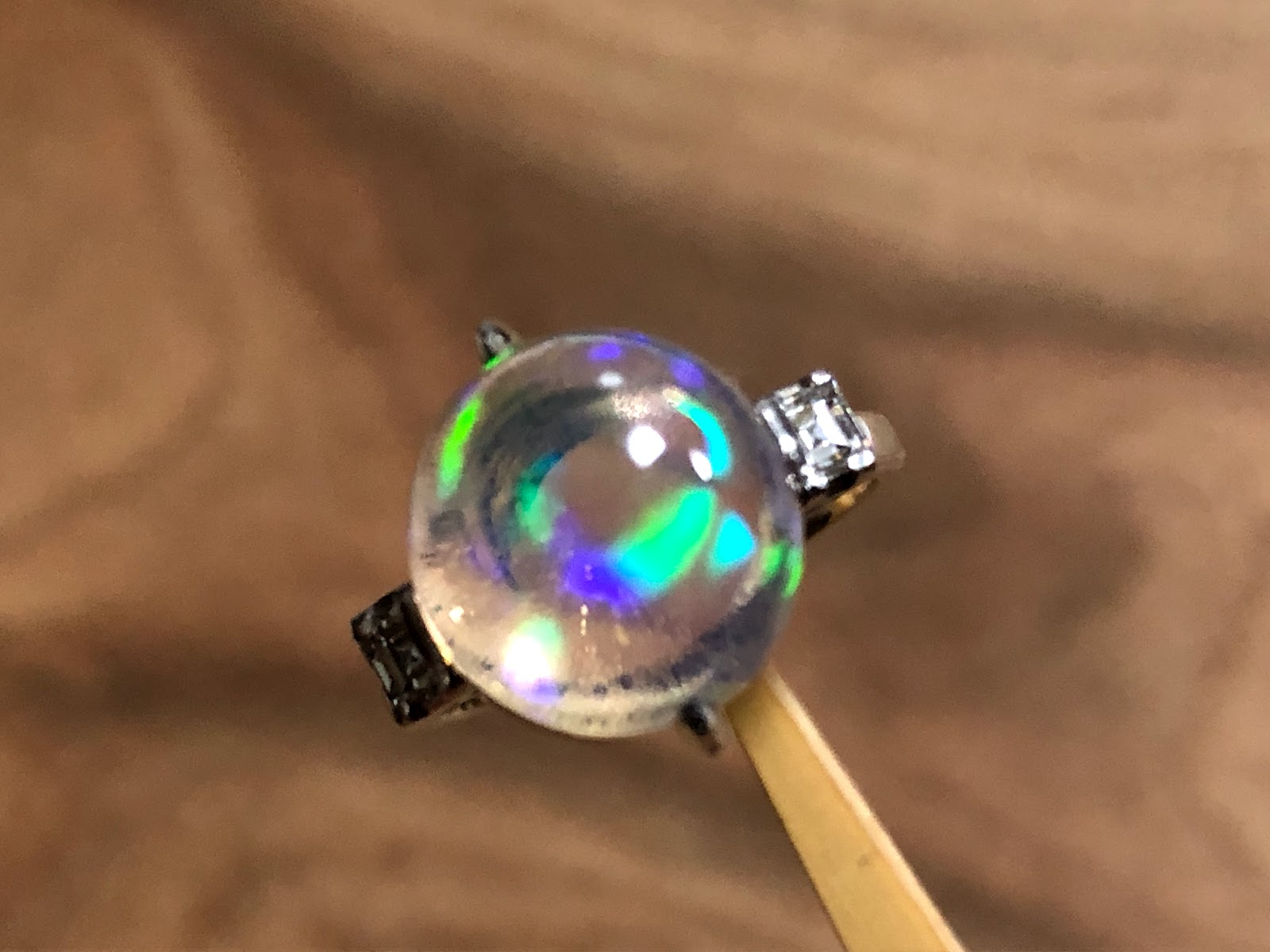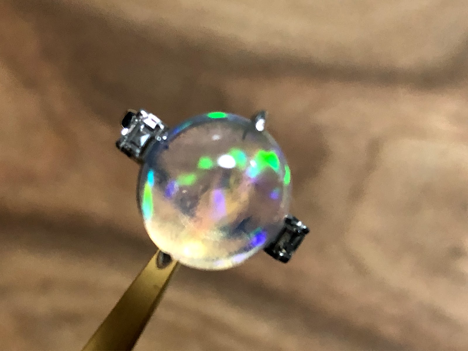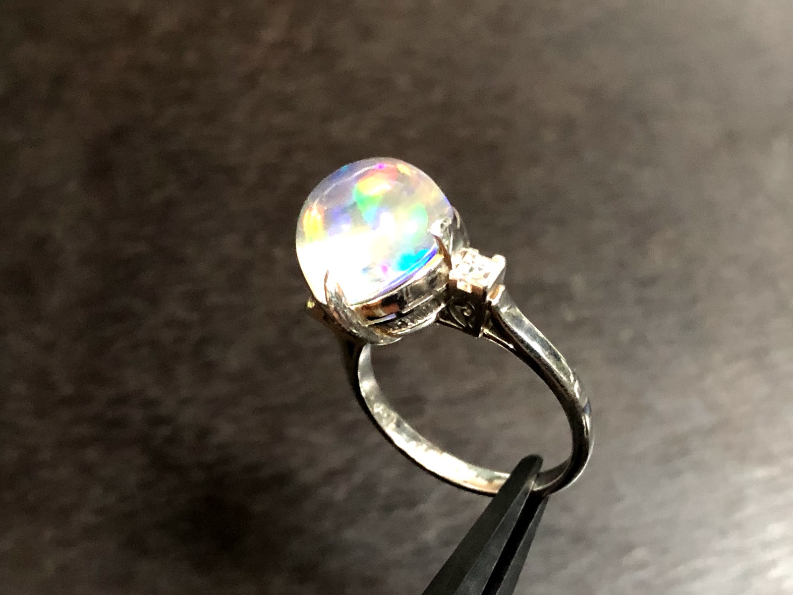 石座は丸みのある形で、ラウンドのウォーターオパールの丸みを際立たせます。