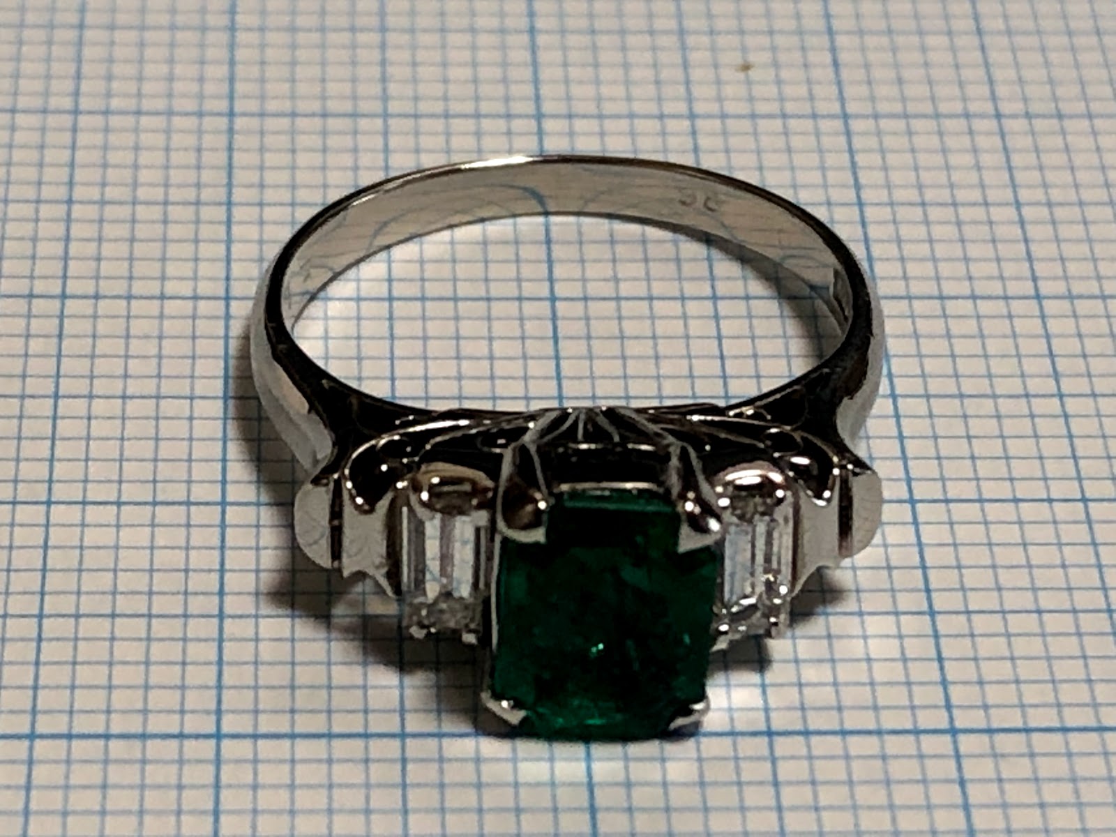 エメラルド1.0ct バゲットカットダイヤモンド2石 手巻き唐草 リング #12 /1902272