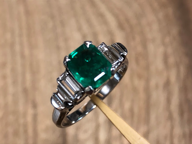 この手の色のエメラルドを探そうとすると結構大変になってきていますが、