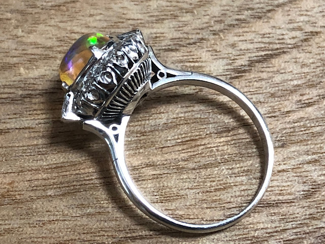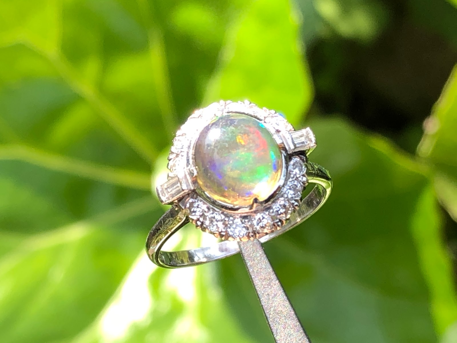 メキシコ産オパール ダイヤモンド取巻き 千本透かし P.m リング #13.8 昭和ジュエリー /1904091