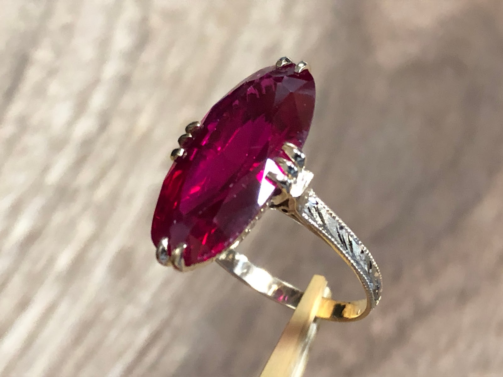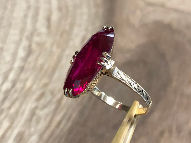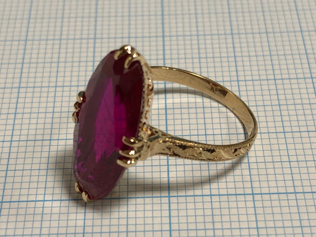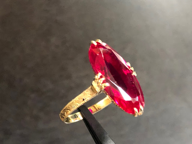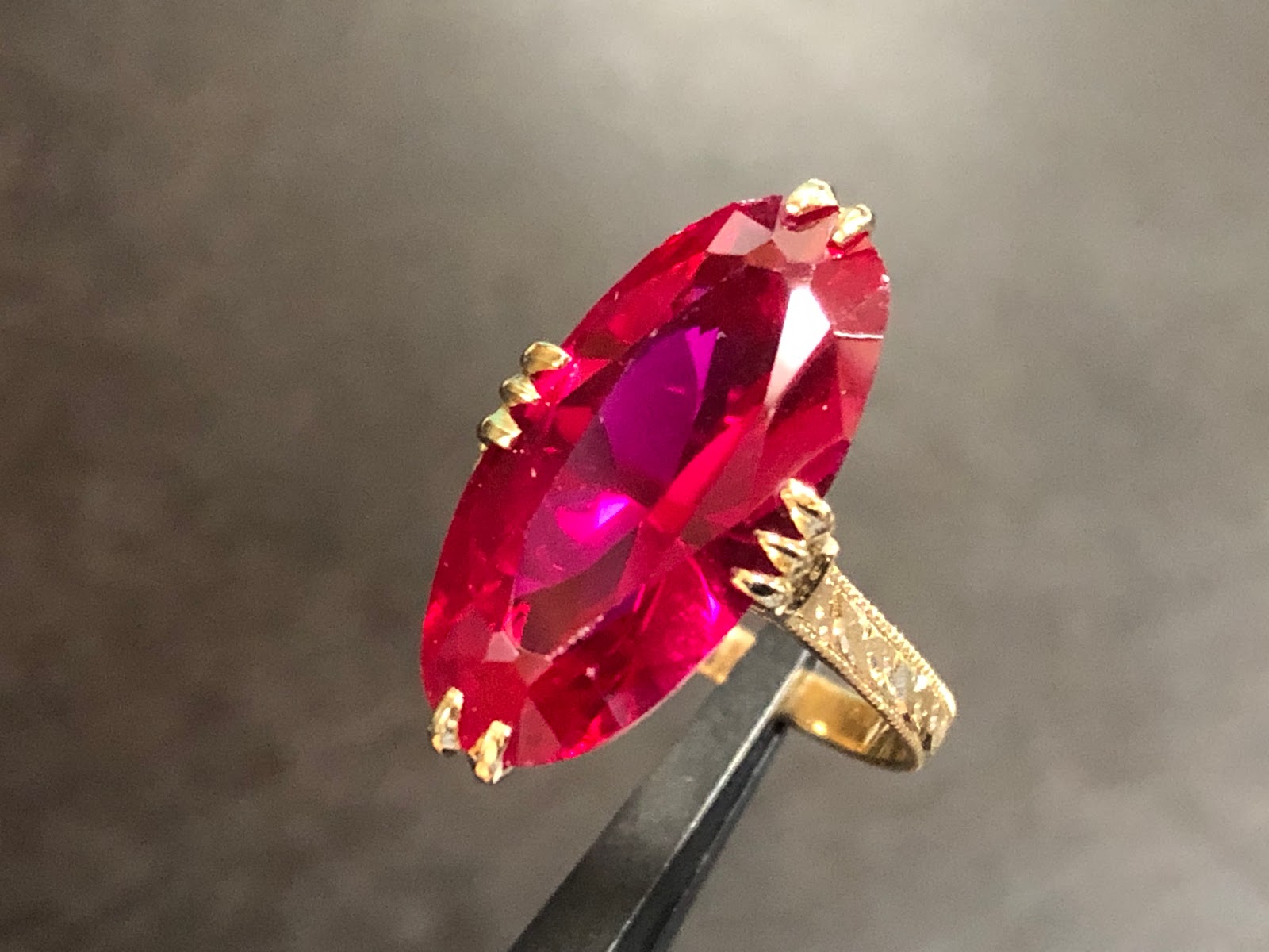 合成ルビーにはすり傷があり、肉眼で確認できますが、そこまで気にするほどの大きなキズではありません。