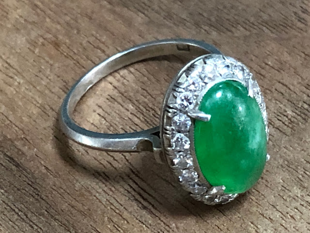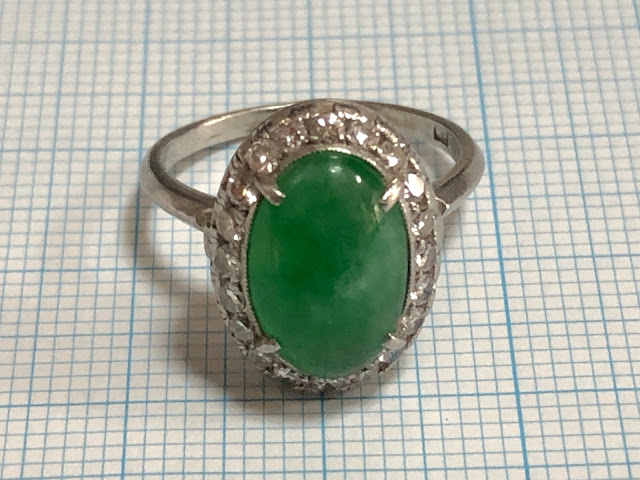 翡翠は表面に小キズ多く、内部にもインクルージョンが多いです。