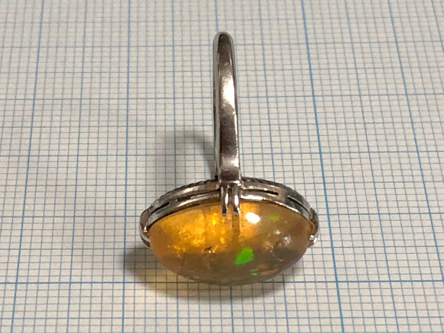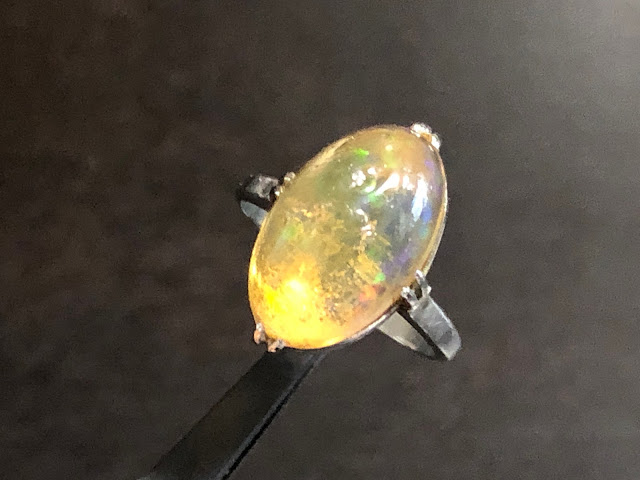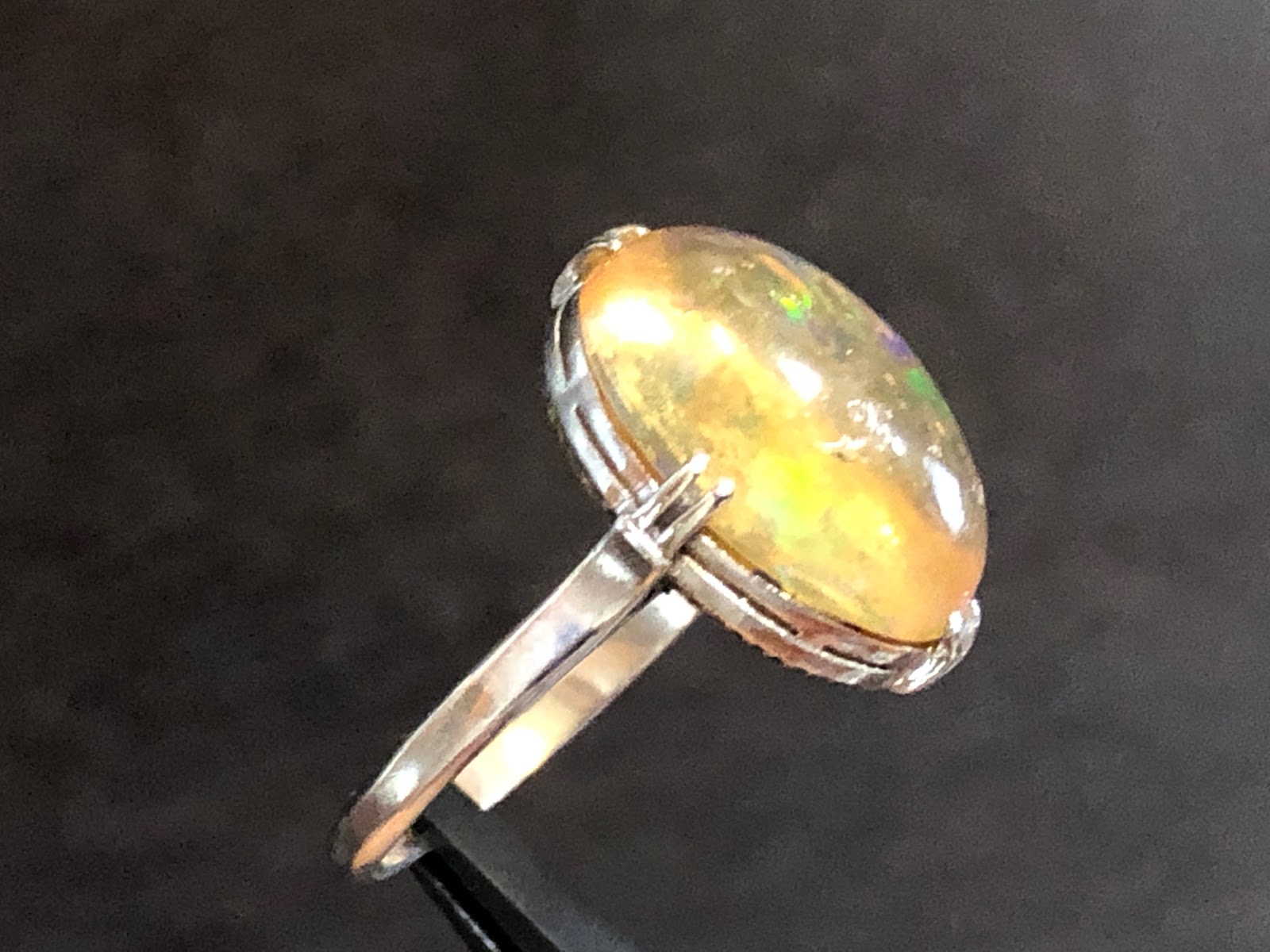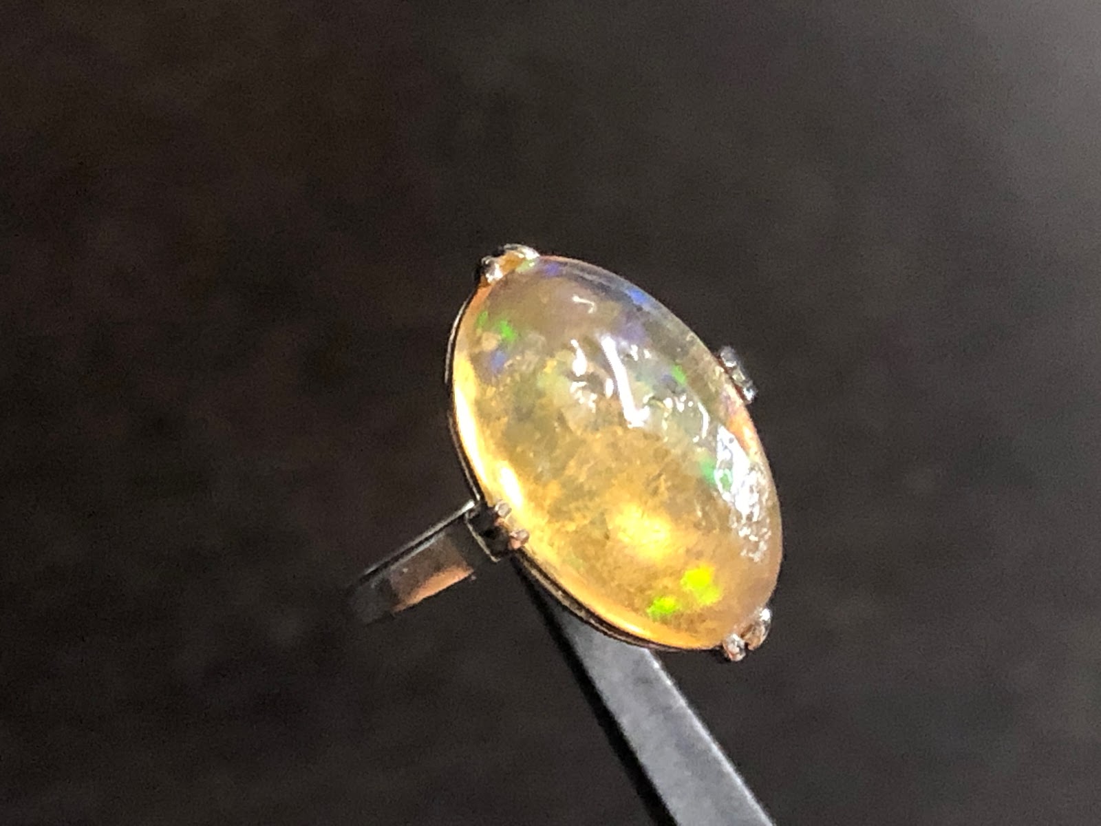 爪にオパールを固定するための接着剤が使われていますが、一旦爪から外したりせずそのまま仕上げようと思います。