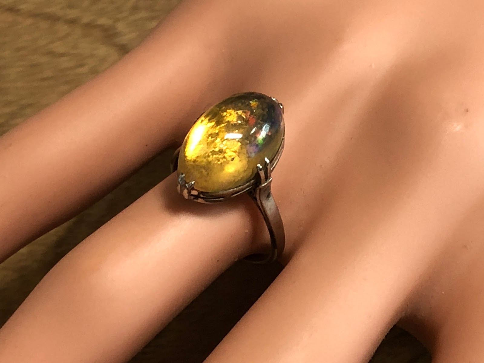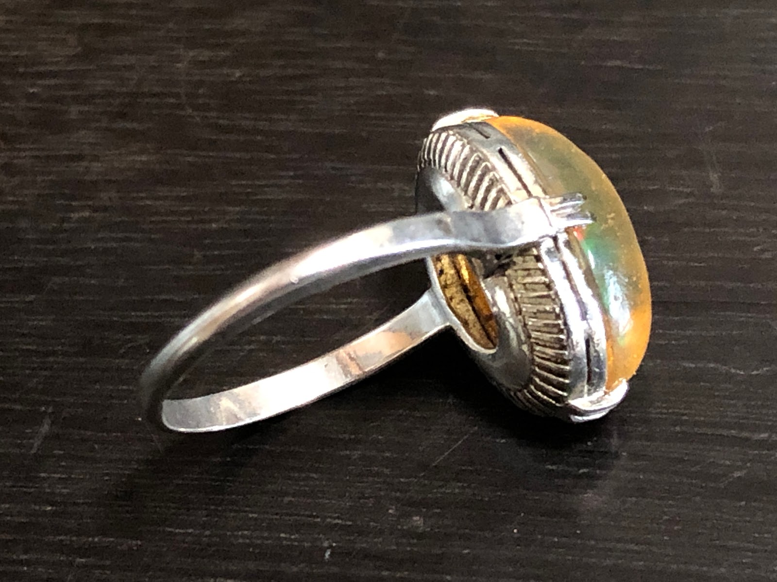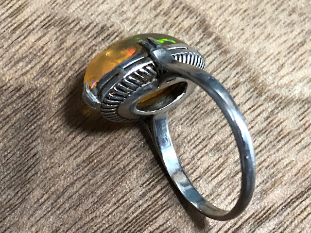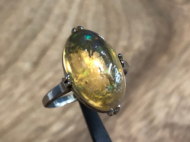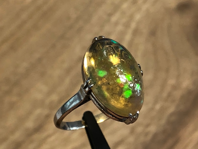爪にオパールを固定するための接着剤が使われていますが、一旦爪から外したりせずそのまま仕上げようと思います。
