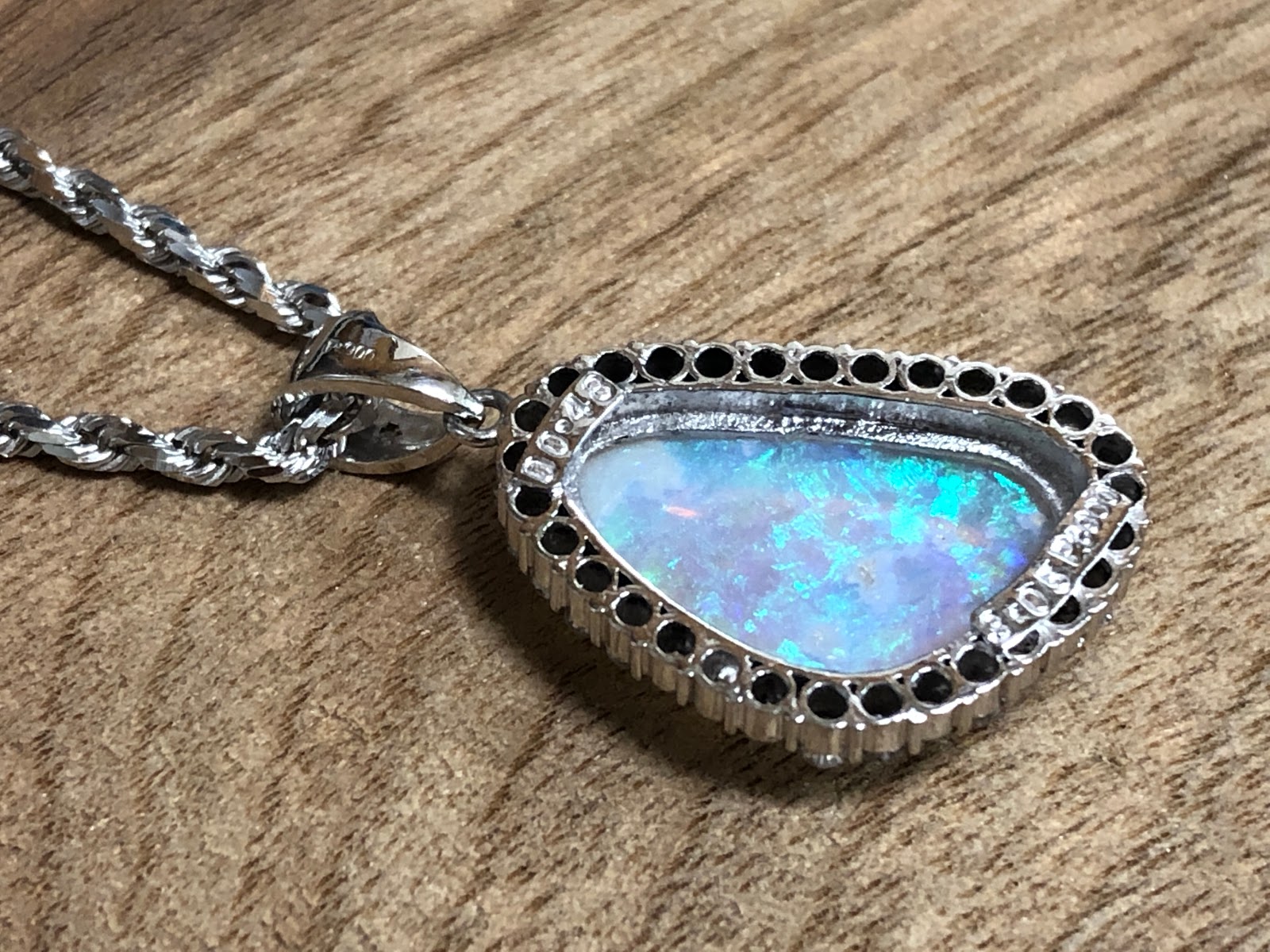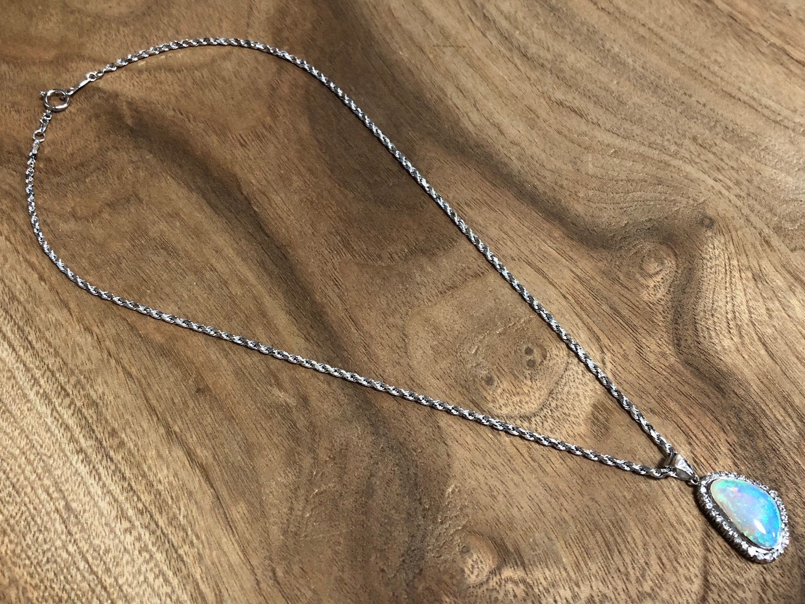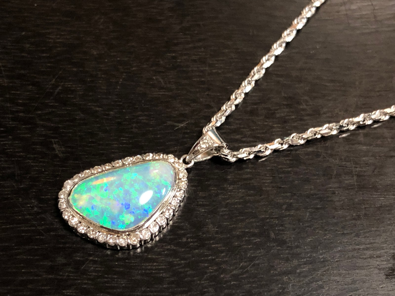 このビシッと本格感のあるオパールのペンダントに合っていますね。
