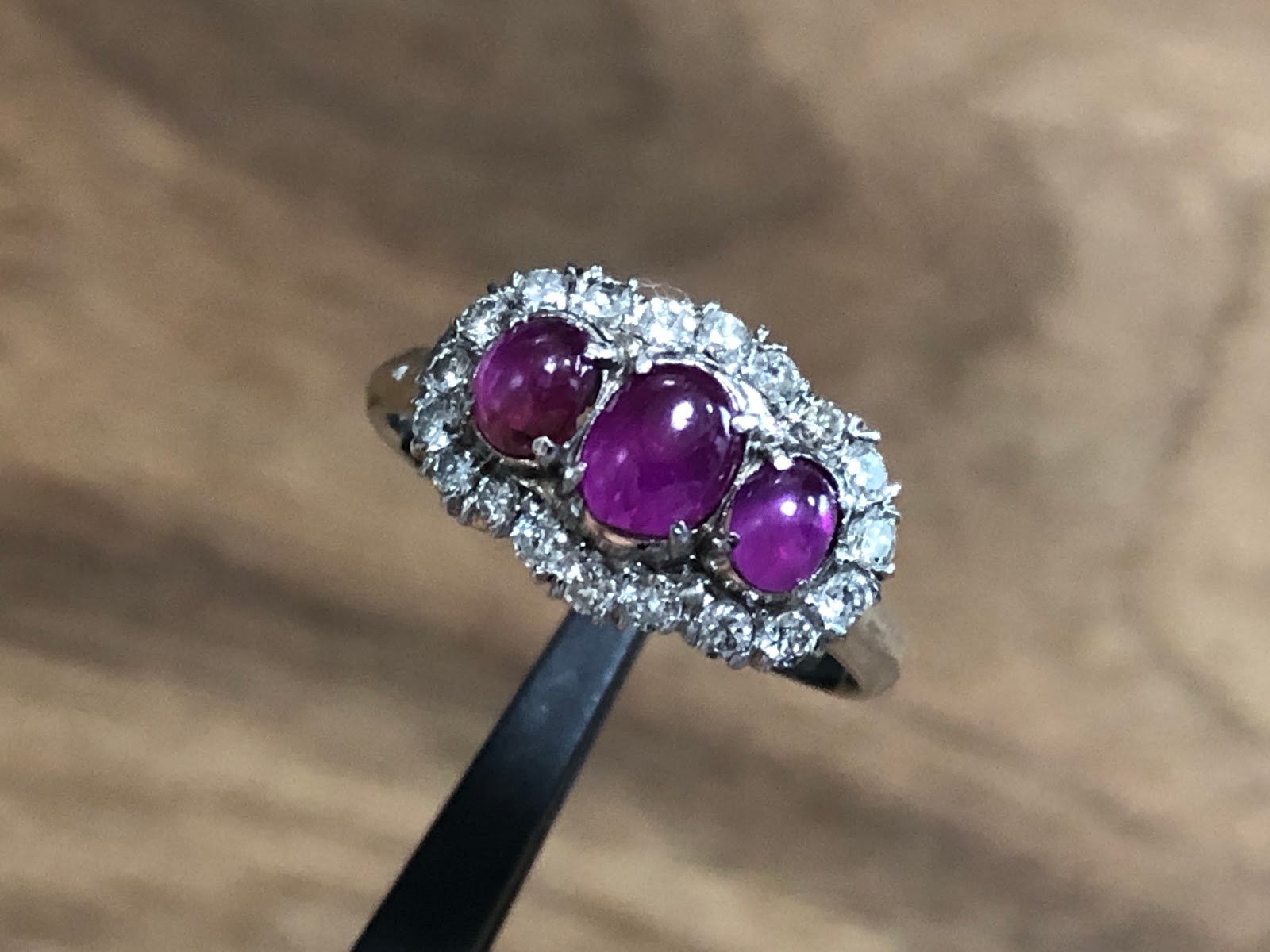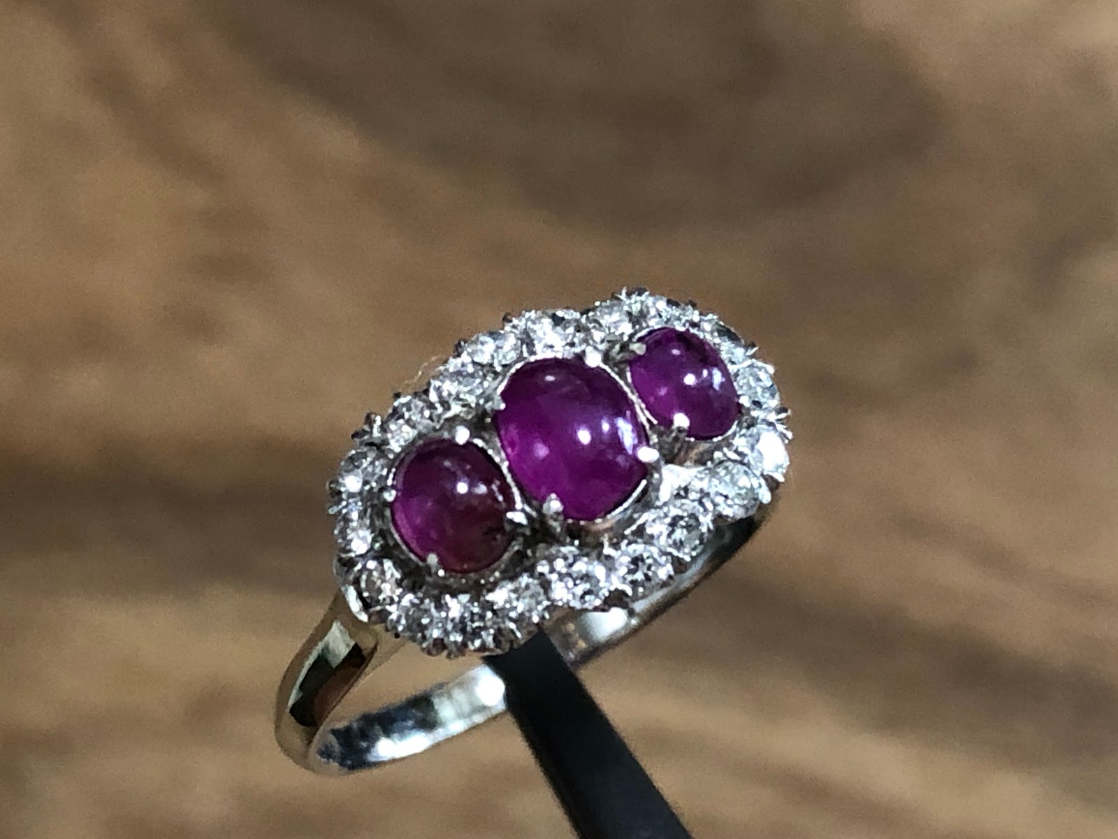 カボションカットではありますが、元からの凹みが残っていたり、石の裏側は凸凹して、現代の感覚だとどうなんだろう?という見方もできますが、