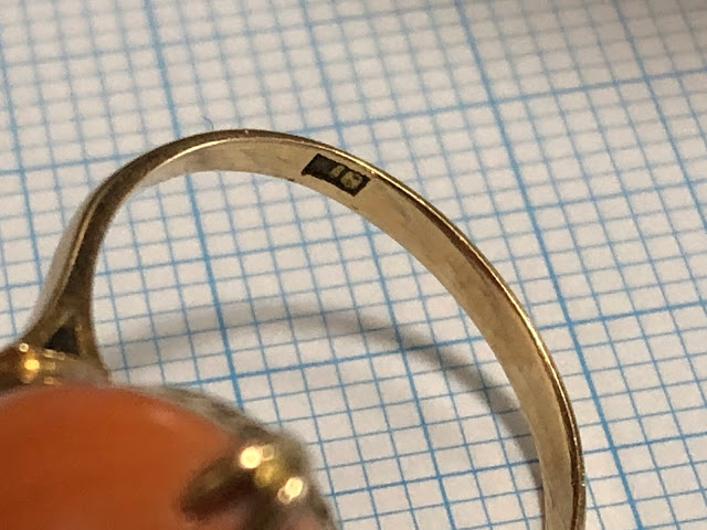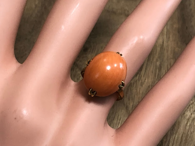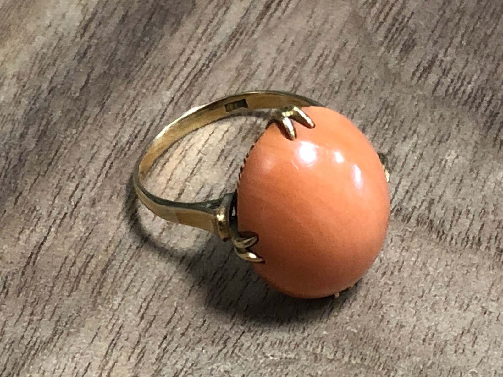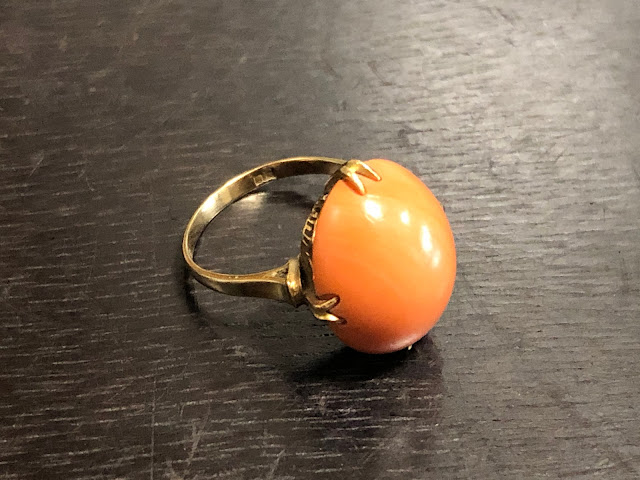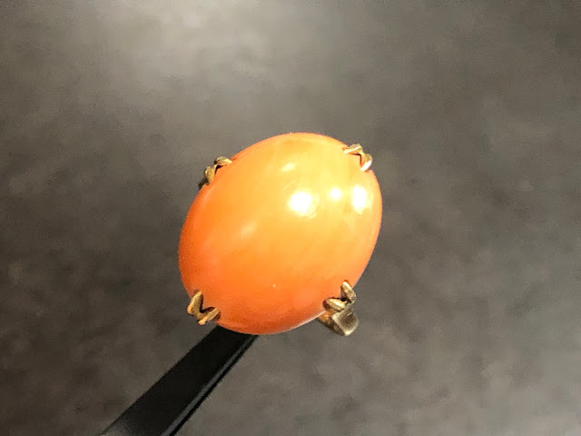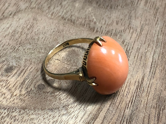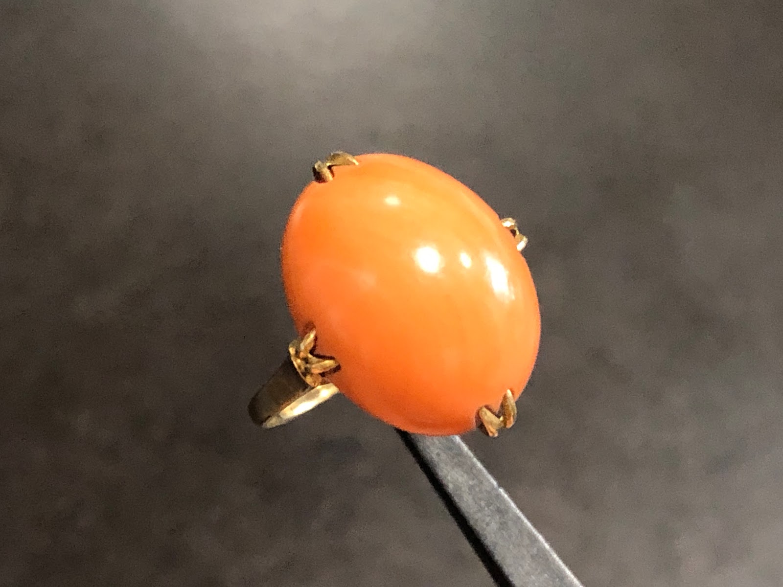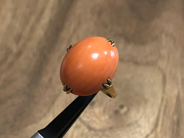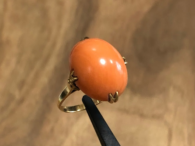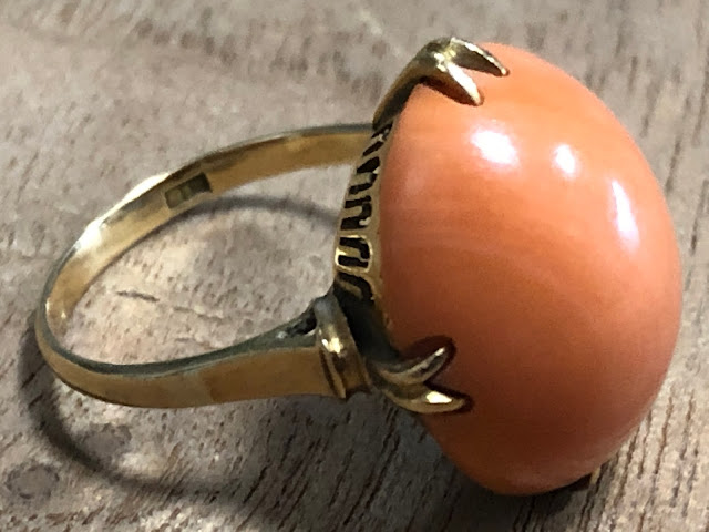 桃珊瑚 王冠透かし [K18] ヴィンテージ リング #7.2 昭和 /197091