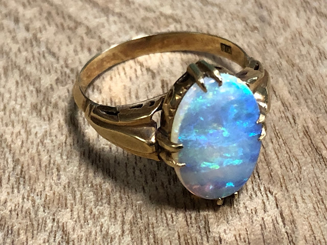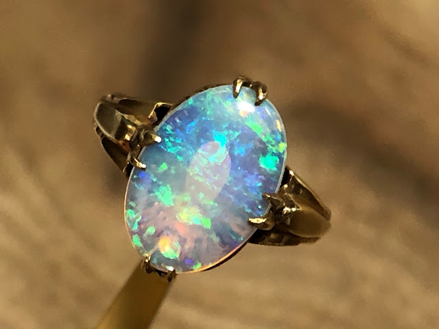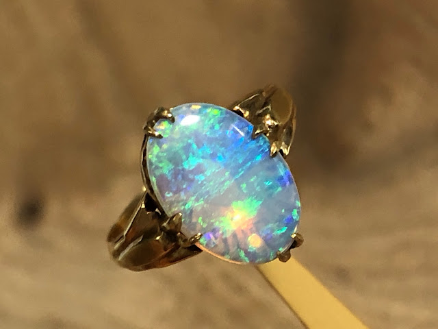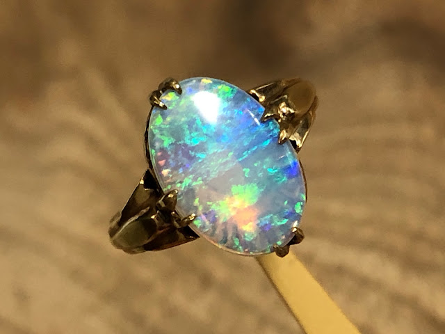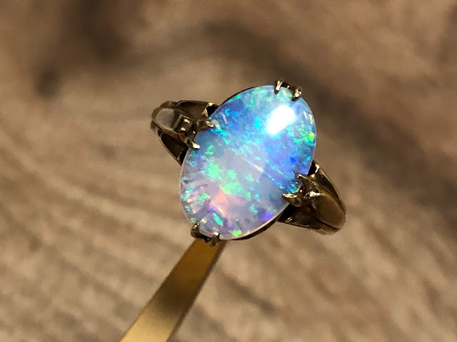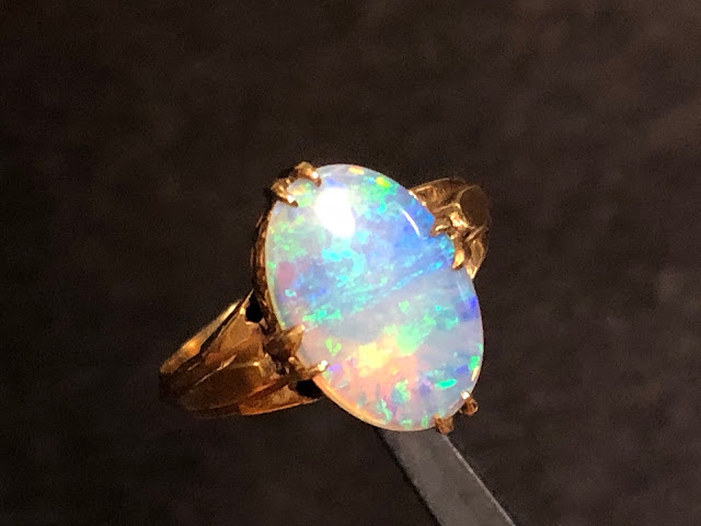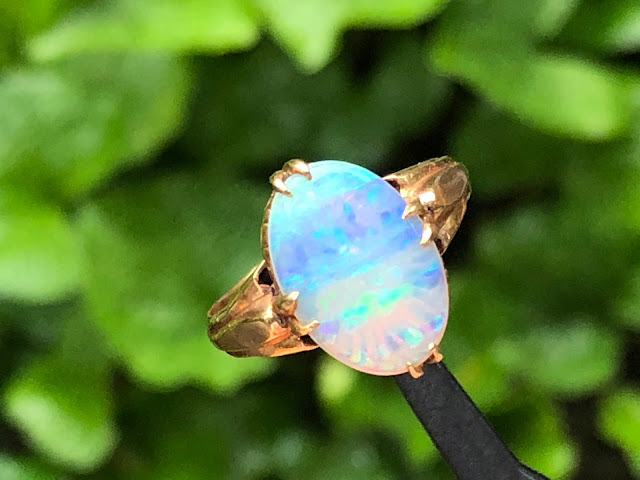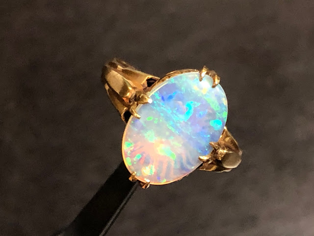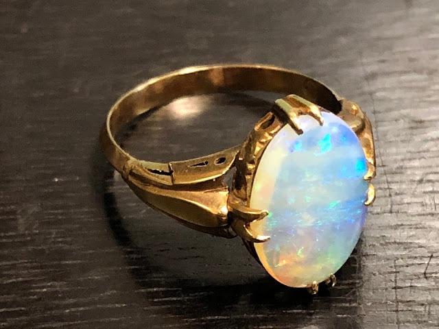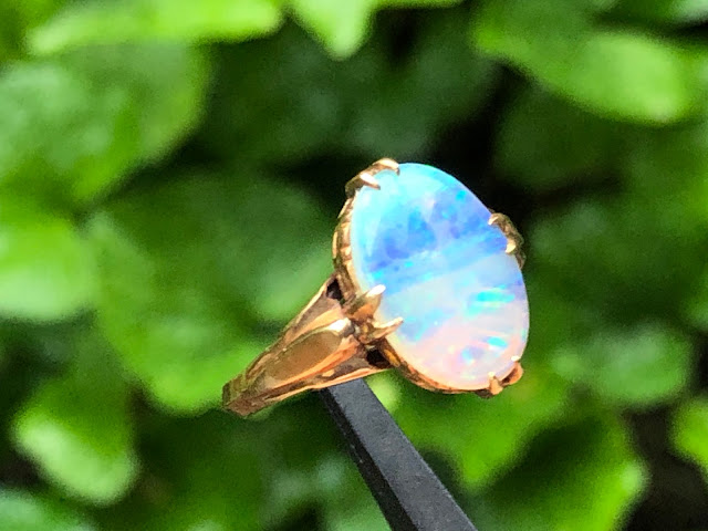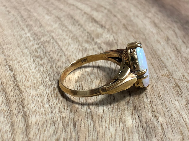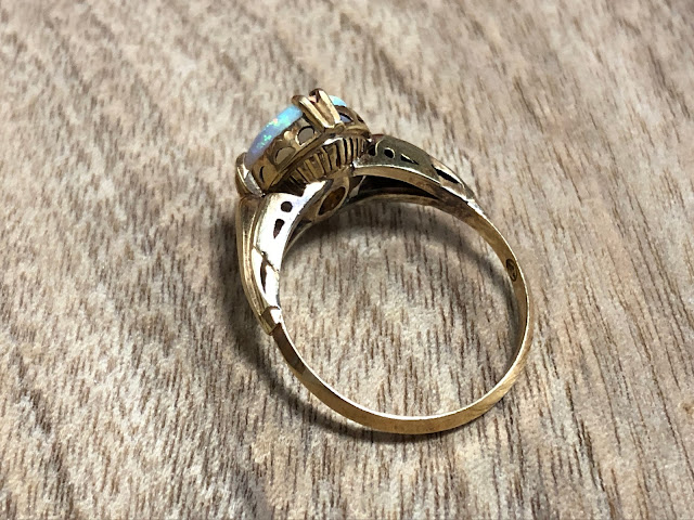 オパール K18 変則千本透かし ヴィンテージ リング #12 昭和 /197131