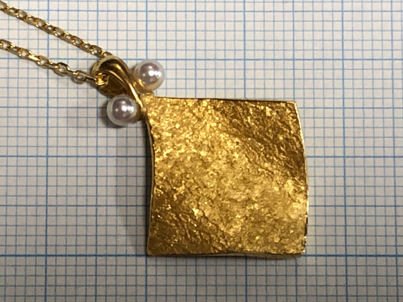 ペンダント本体には特殊なテクスチャが施されていますので触らずに、ネックレスとバチカンの部分だけ磨くことになるのだと思います。