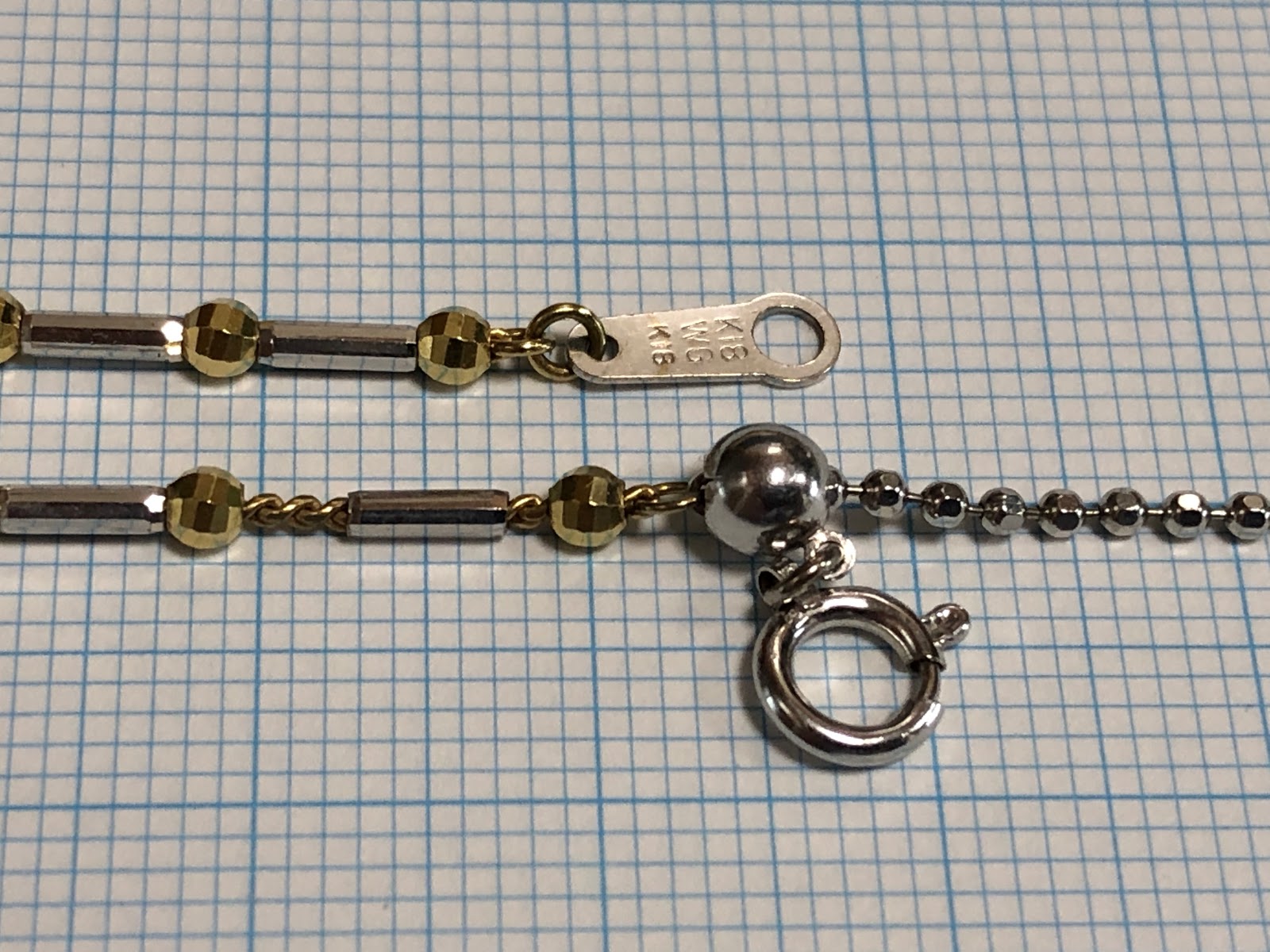 K18YGのチェーンとミラーボールの間にK18WGのパイプ通っています。