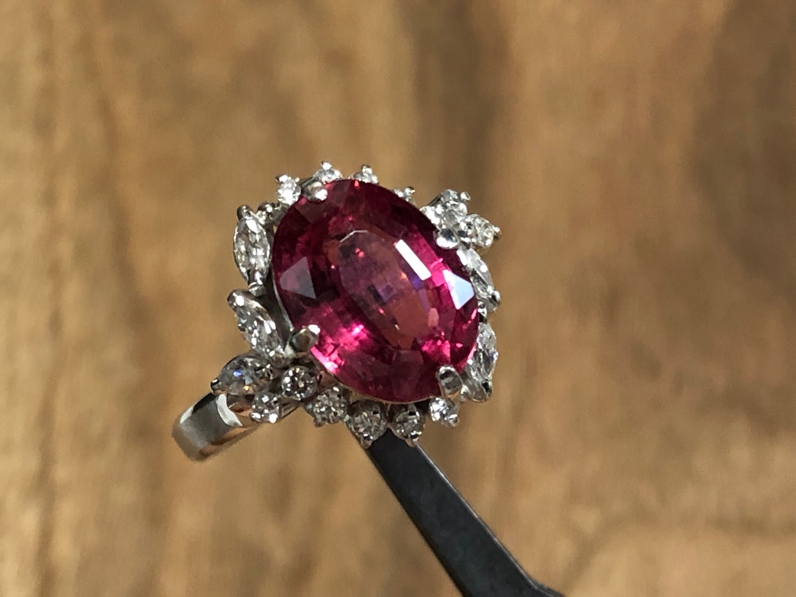 ピンクトルマリンは、無傷ではなく、細かいキズなどはルーペで確認できますが、使用によるキズも少なく表面のコンディションは割と良いです。