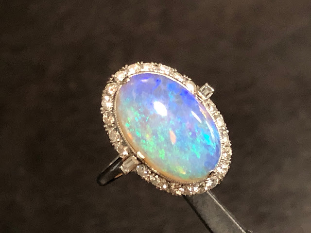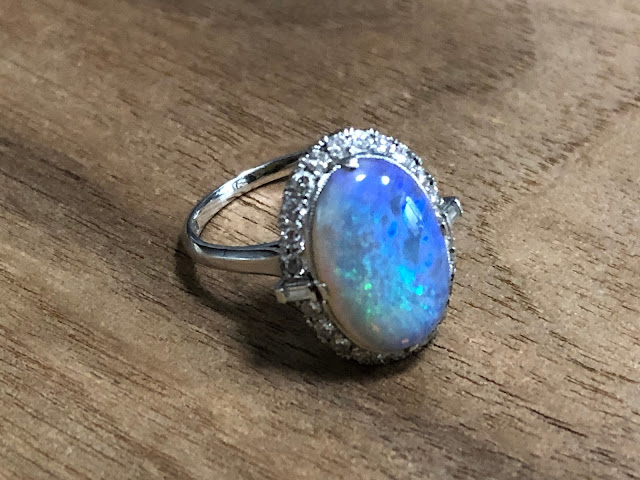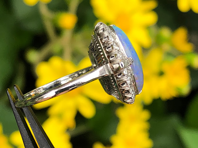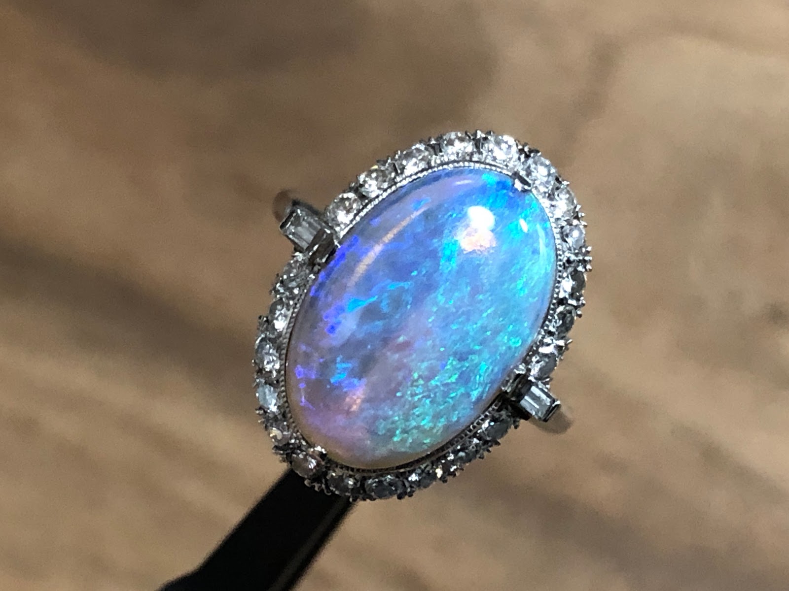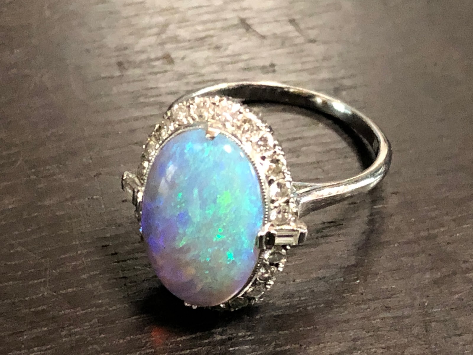 オパールにピターッとよりそった石座の縁に細かいミル打ちのあたりは惚れ惚れしますね。