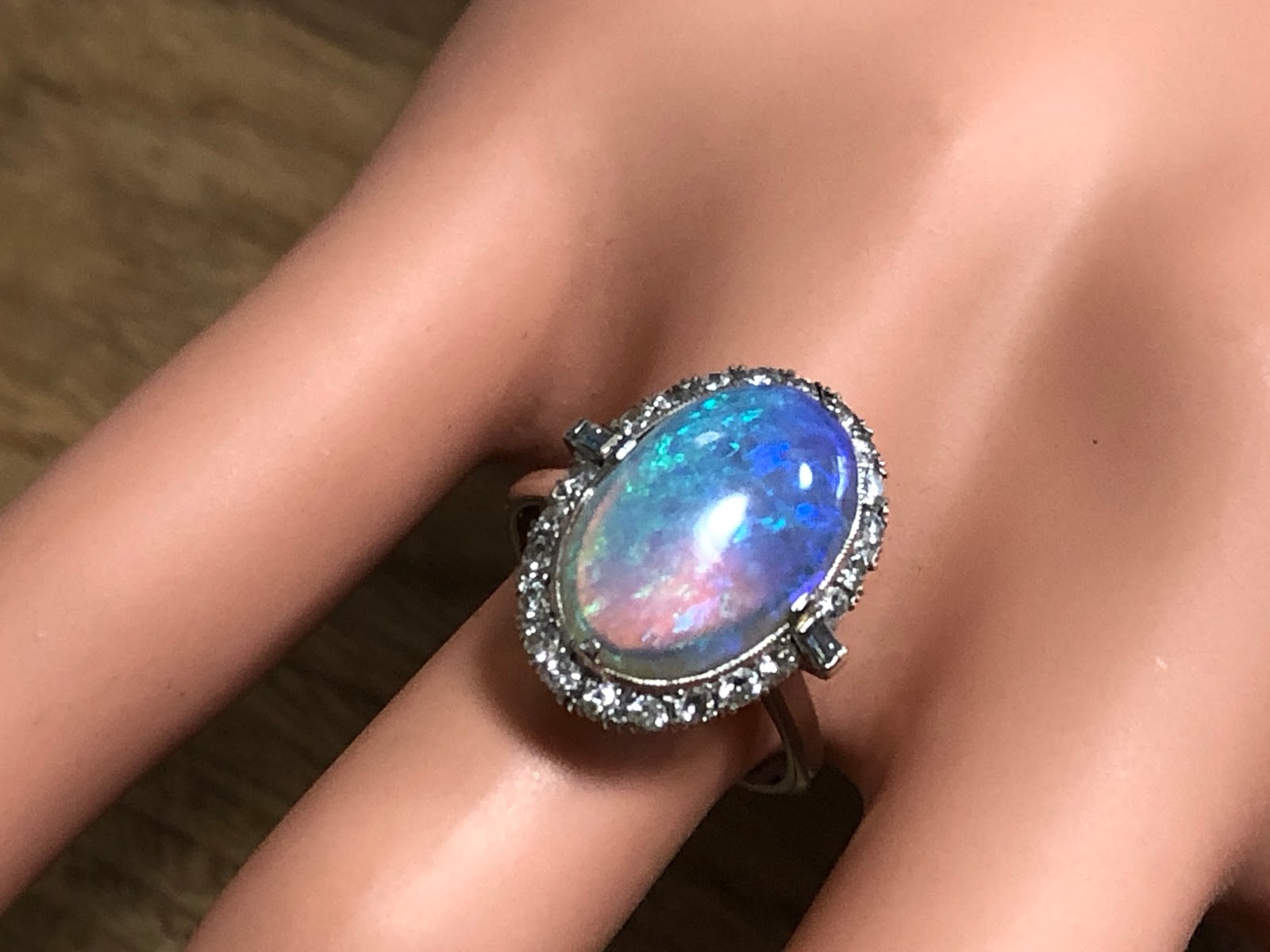 オパール ダイヤモンド取り巻き [Pt] 千本すかし リング #9.5 /911021