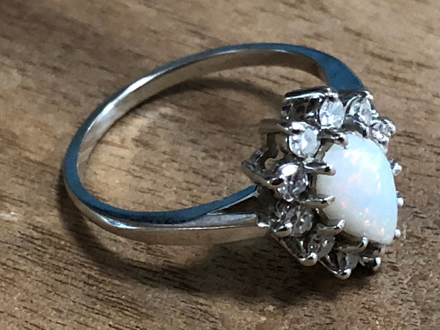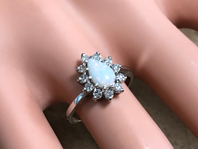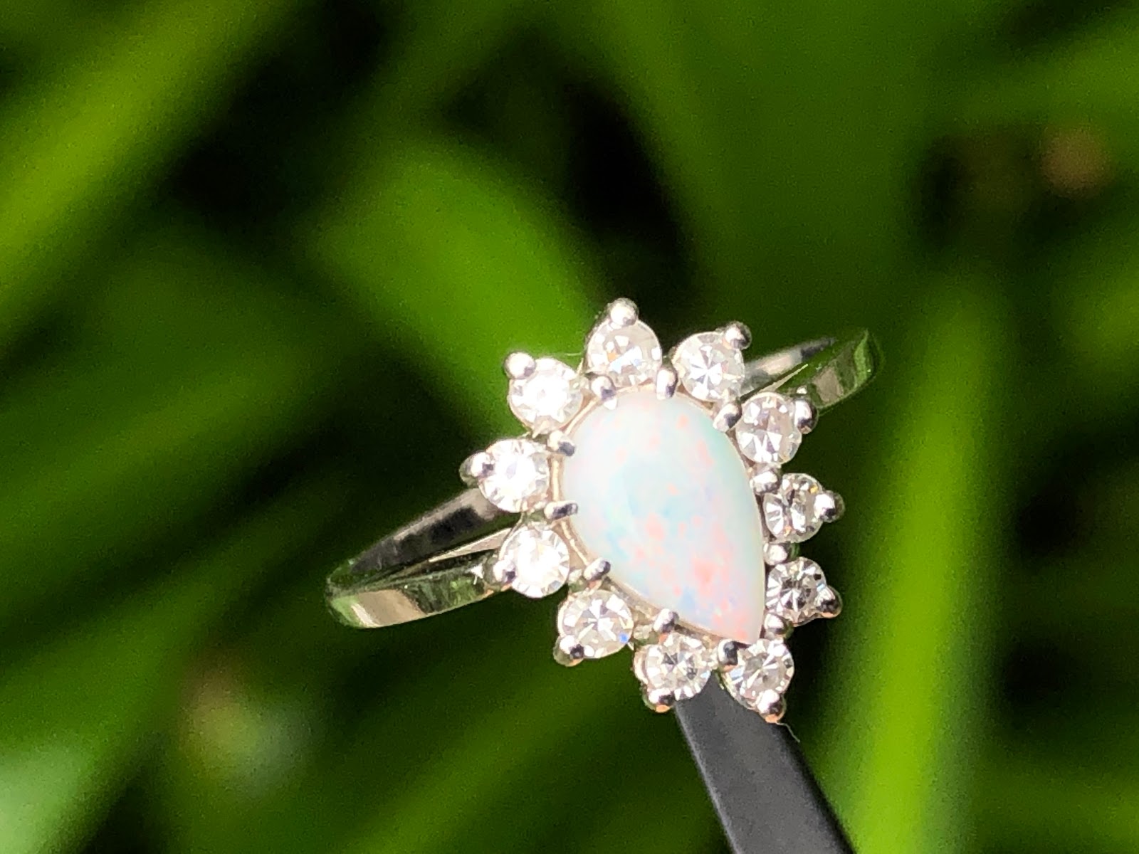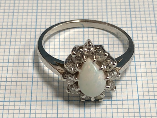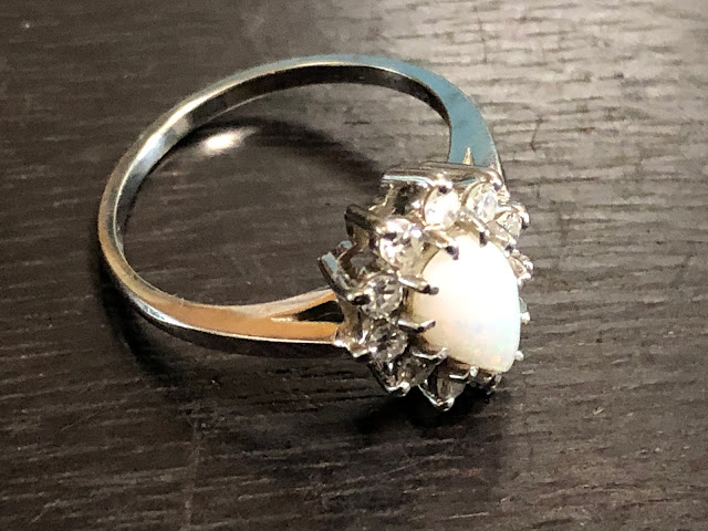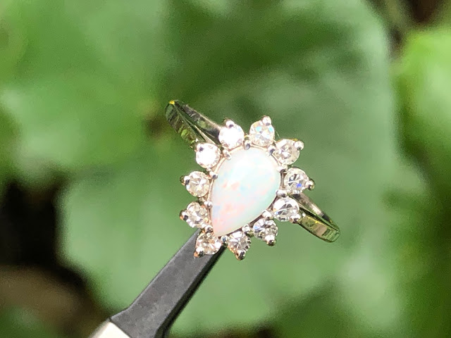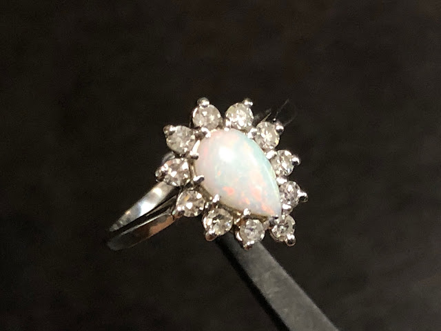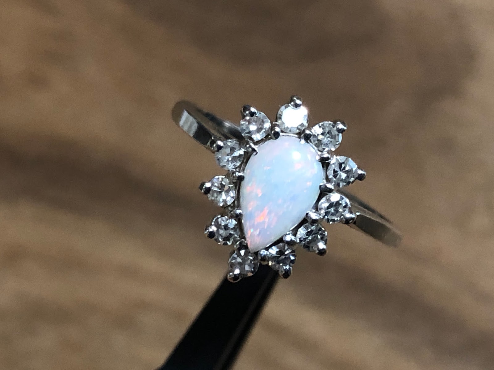 ペアシェイプカットのオパールに、今となってはあまりお目にかかることも減ってきたシングルカットのダイヤモンドの取り巻き。