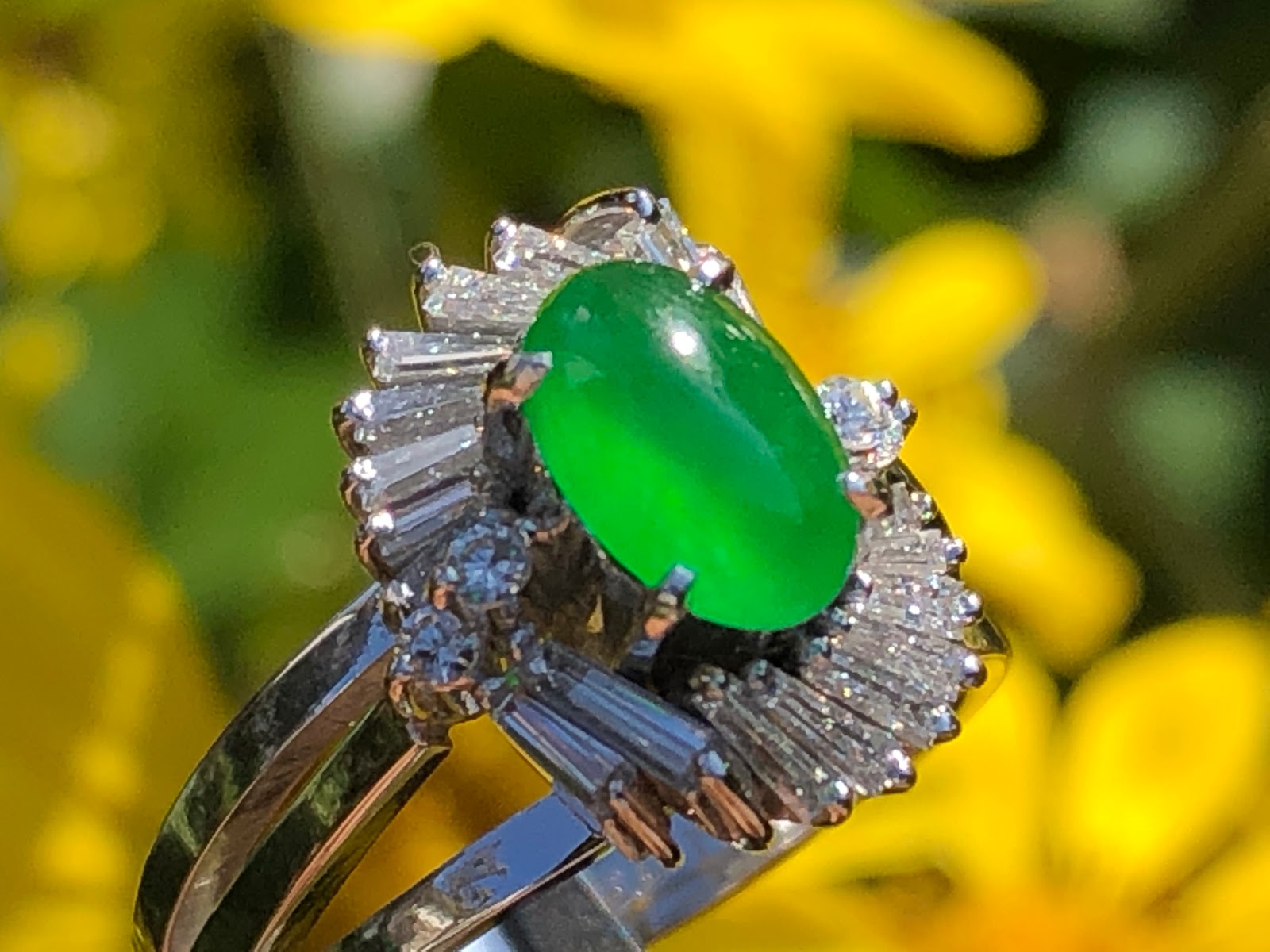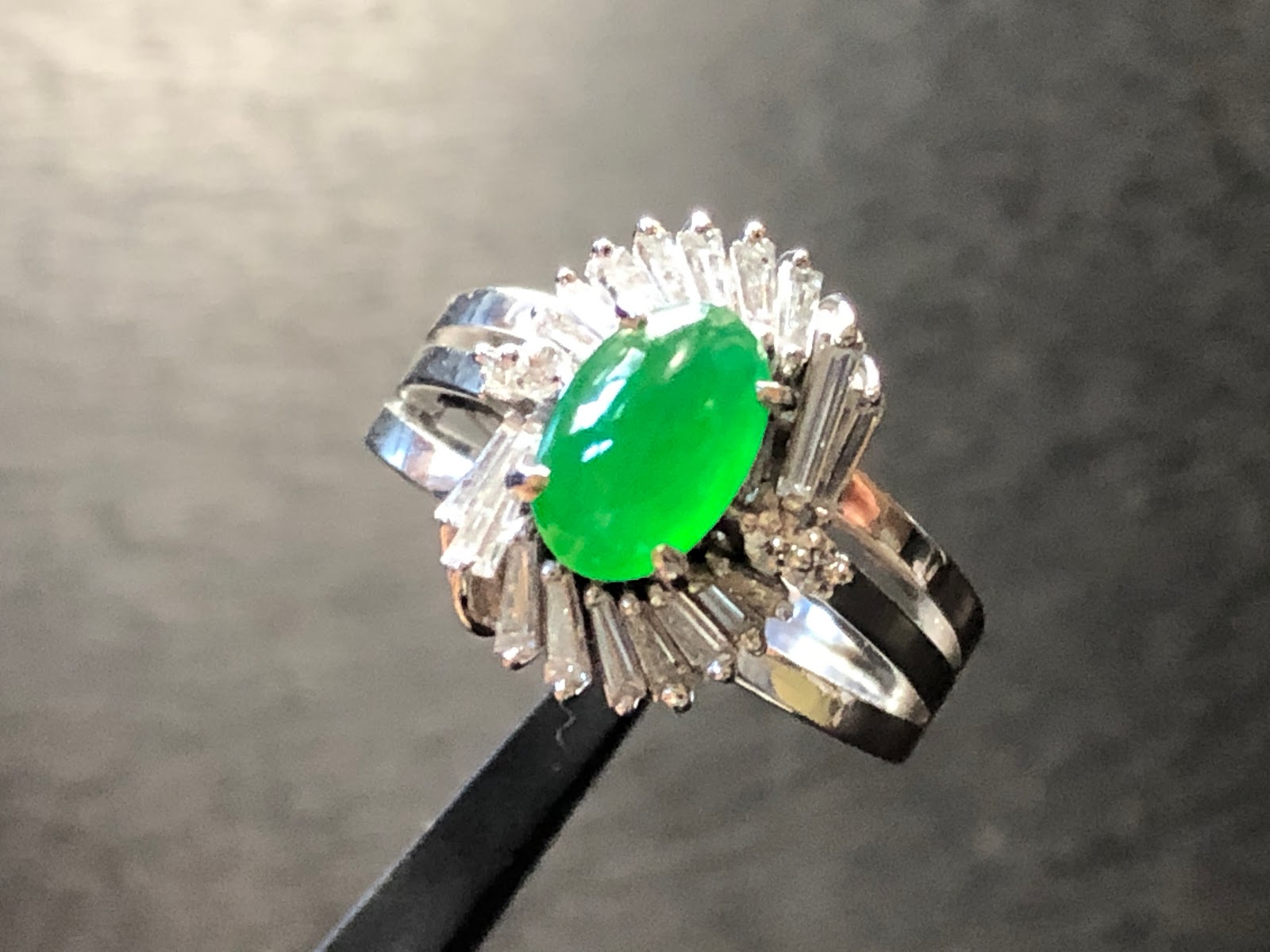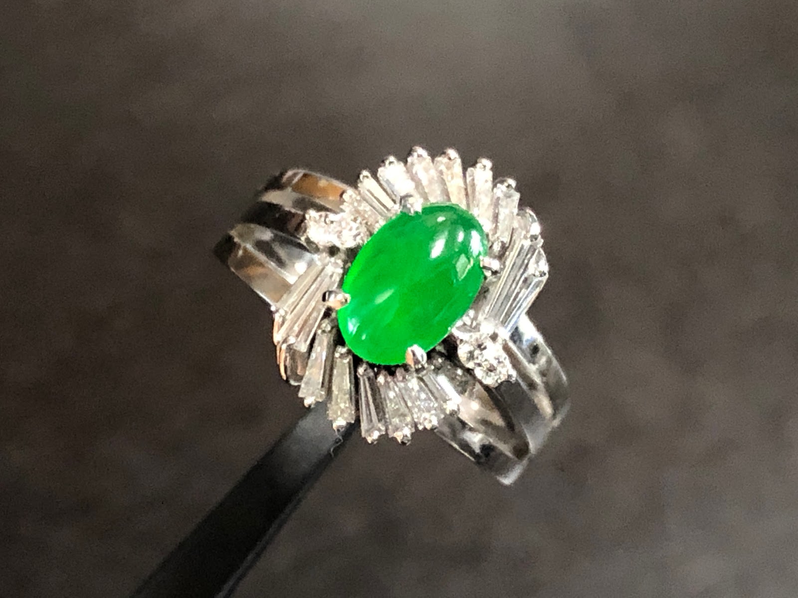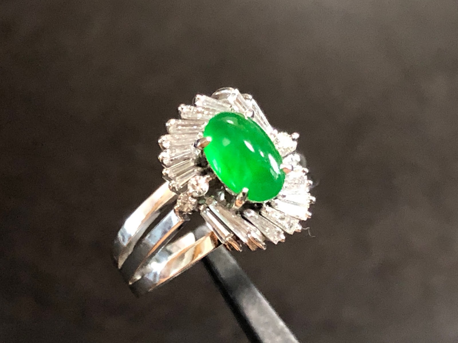 翡翠、ダイヤモンドの良さと、プラチナの素材感が前面に出てますね。
