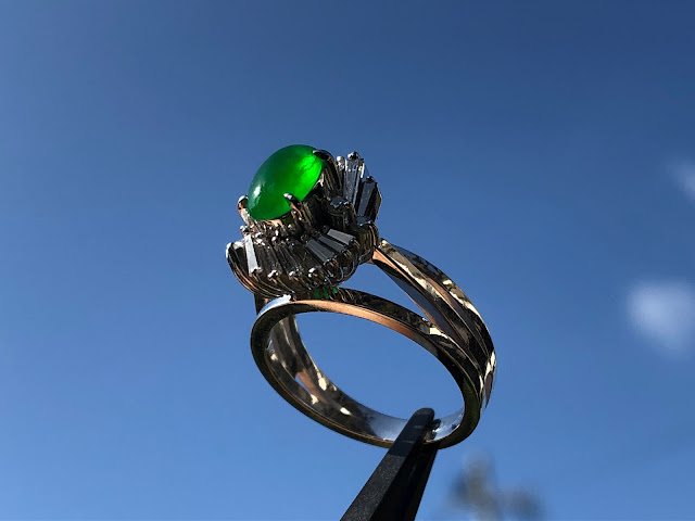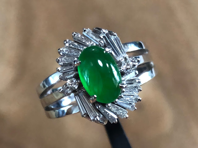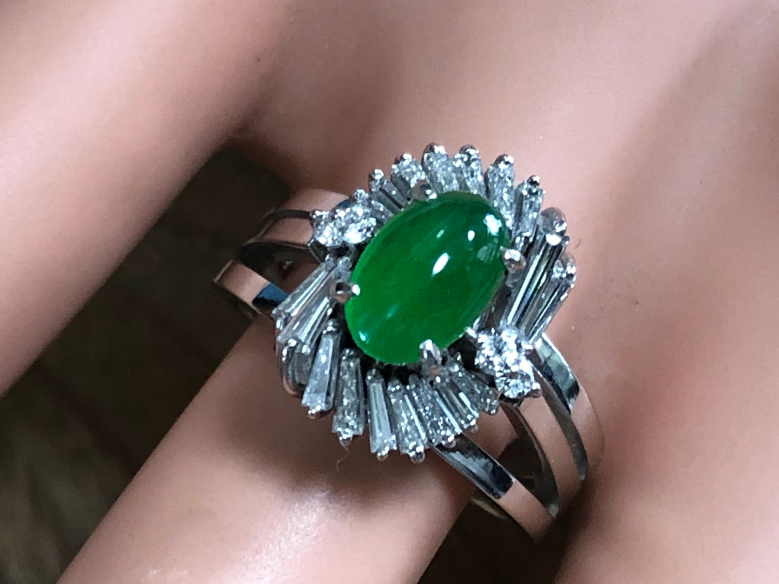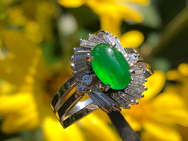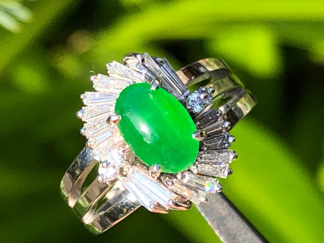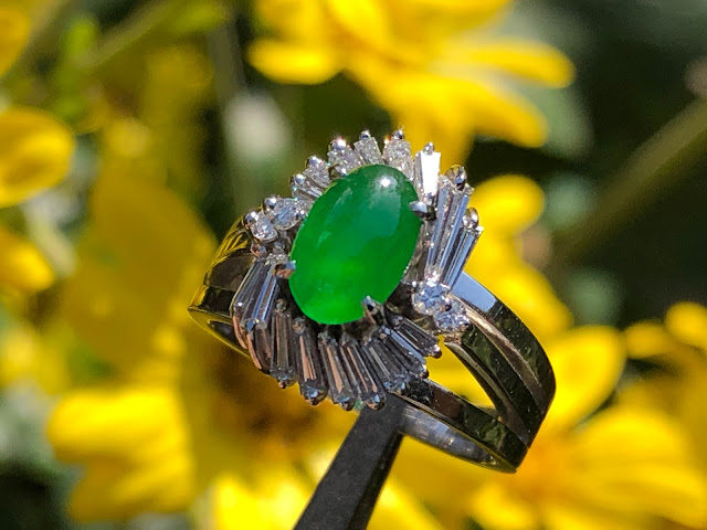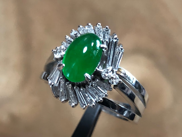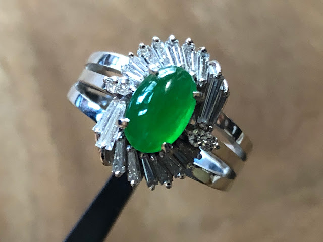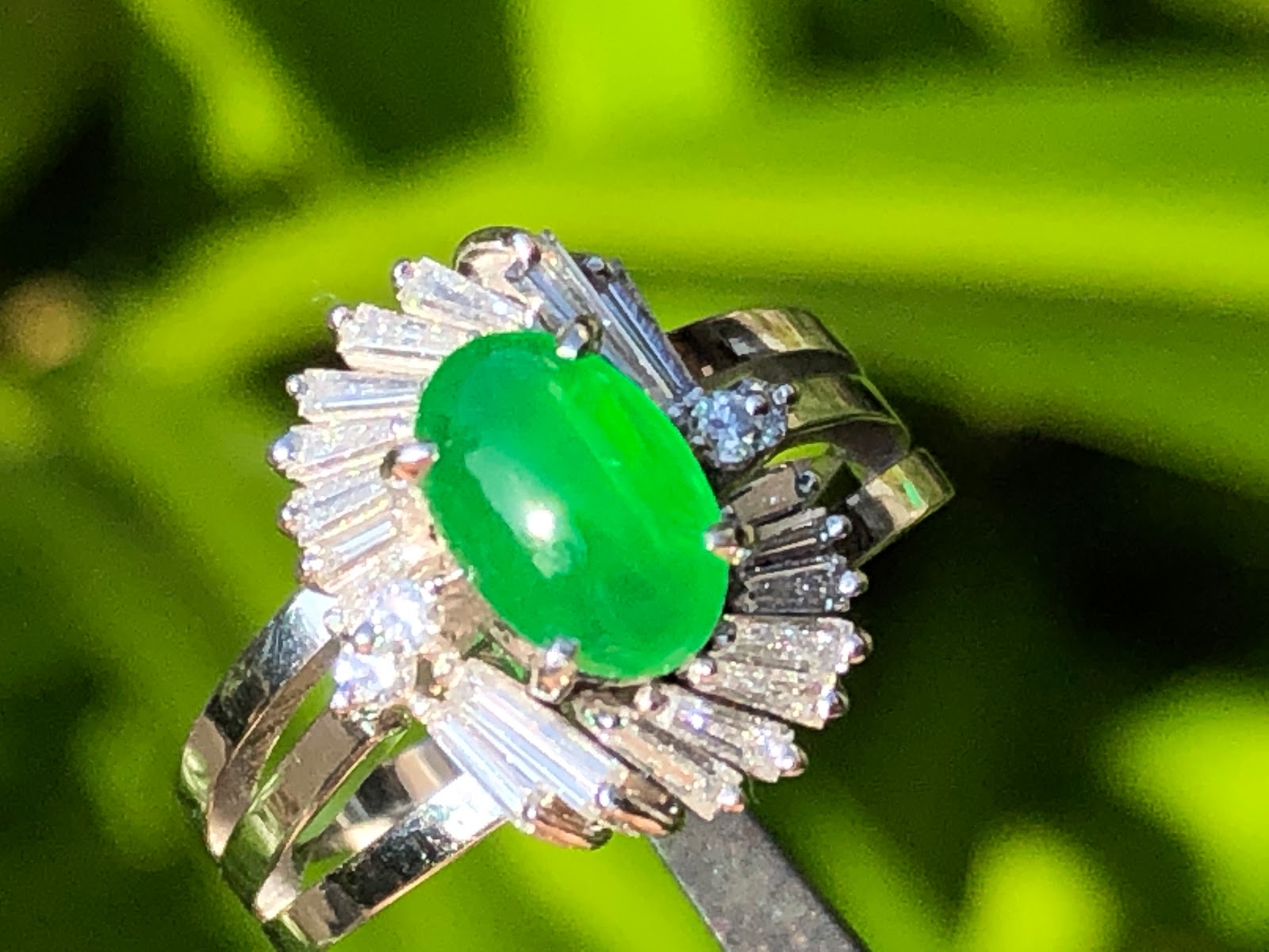 翡翠、ダイヤモンドの良さと、プラチナの素材感が前面に出てますね。