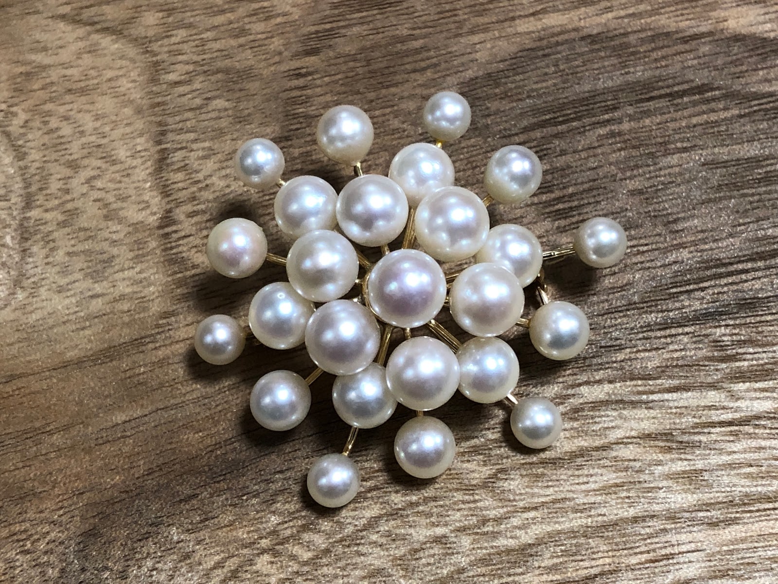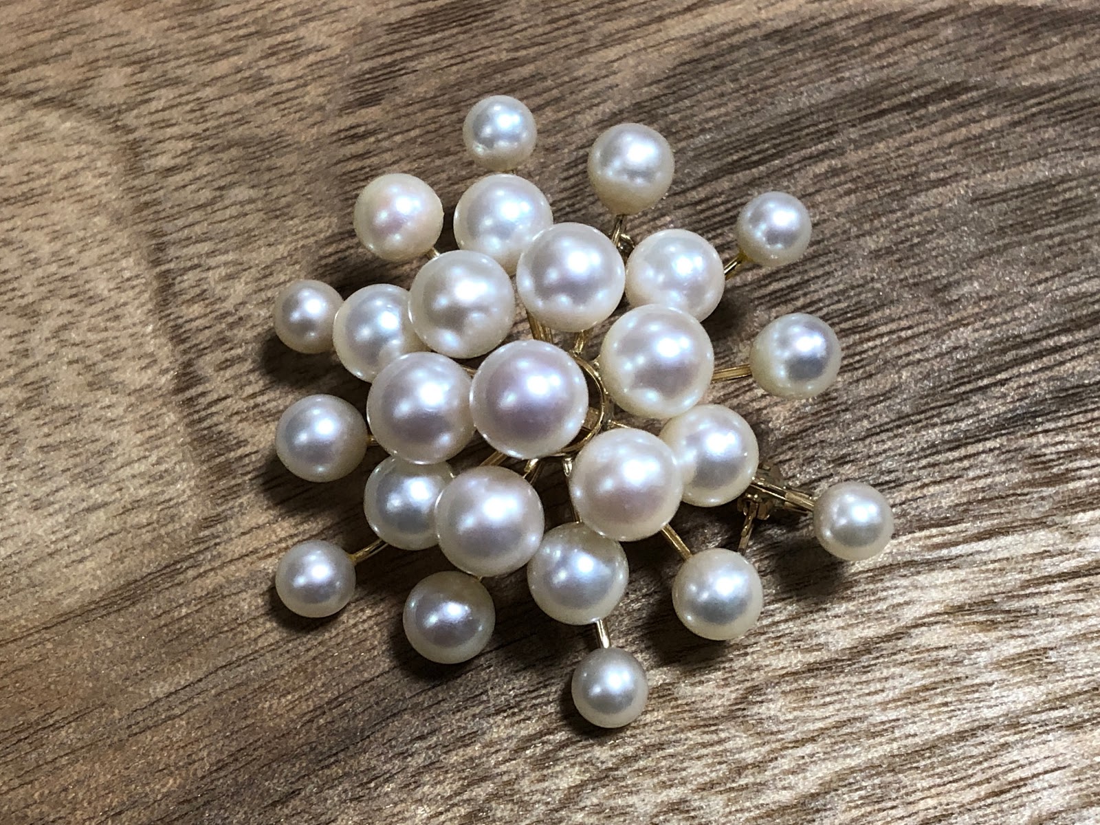ただ、真珠用の接着剤が時を経ると褐色になるんですよね…