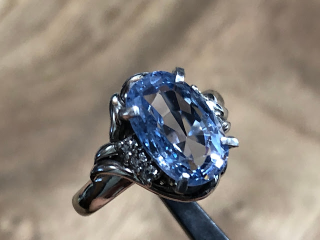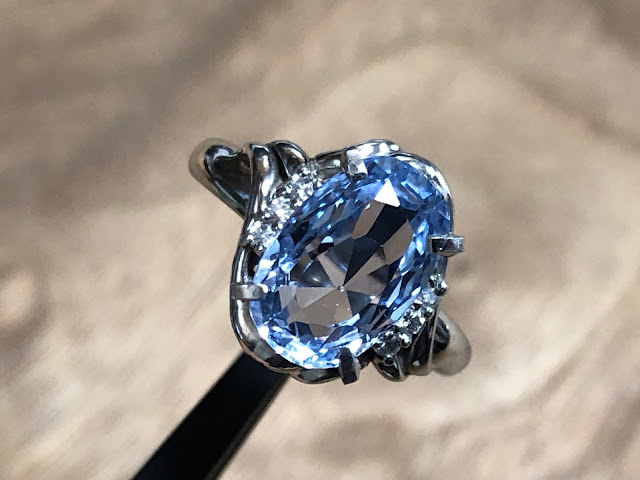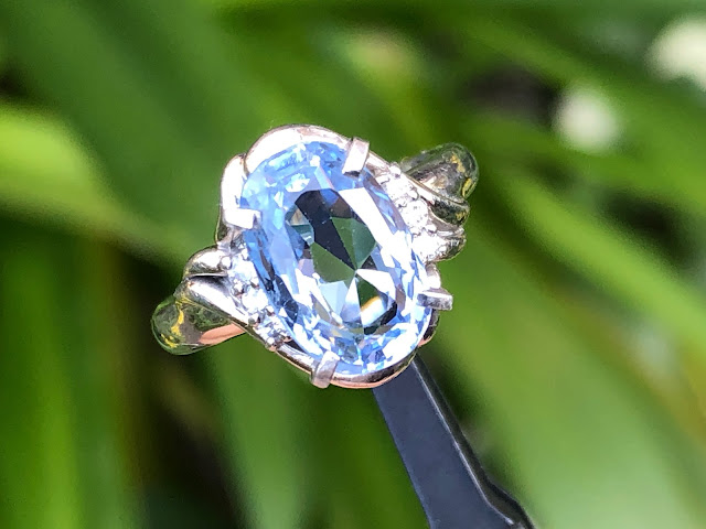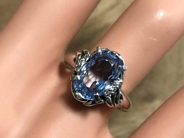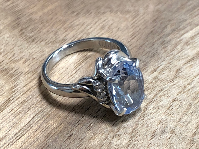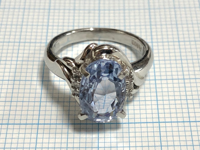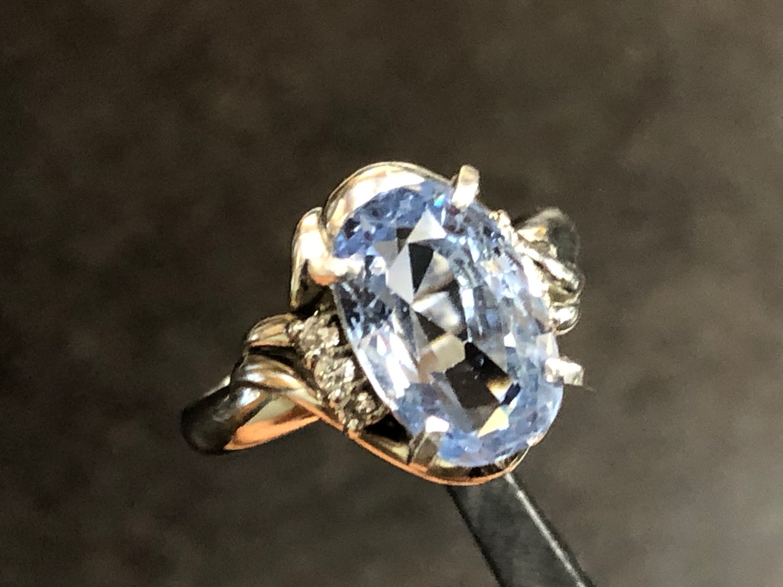 大粒サファイア ダイヤモンド Pt900 鋳造 リング #9.5 /912091