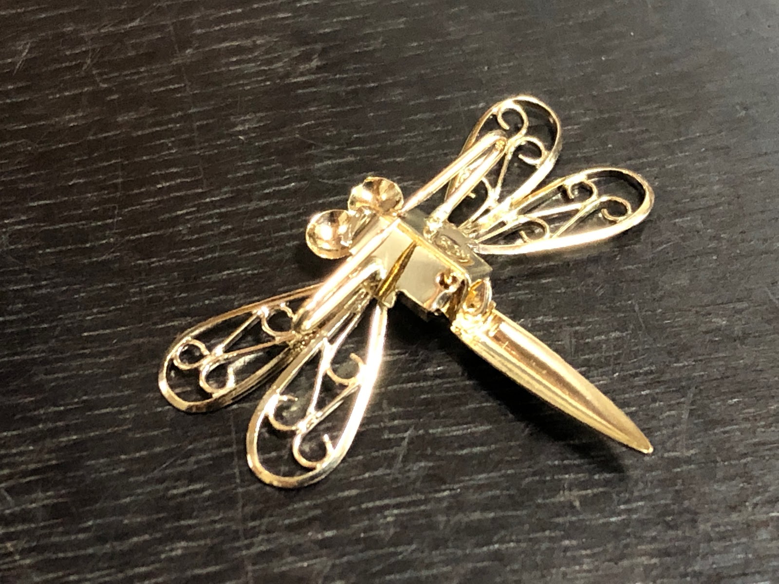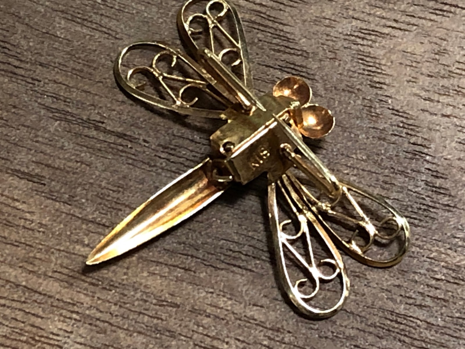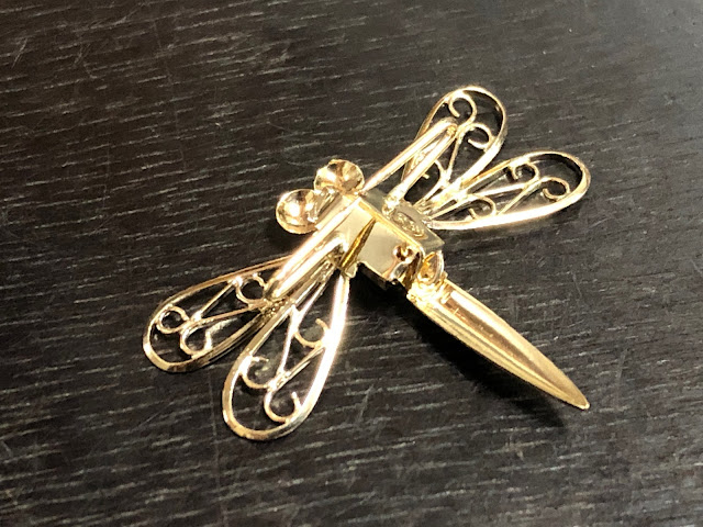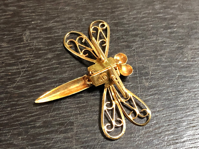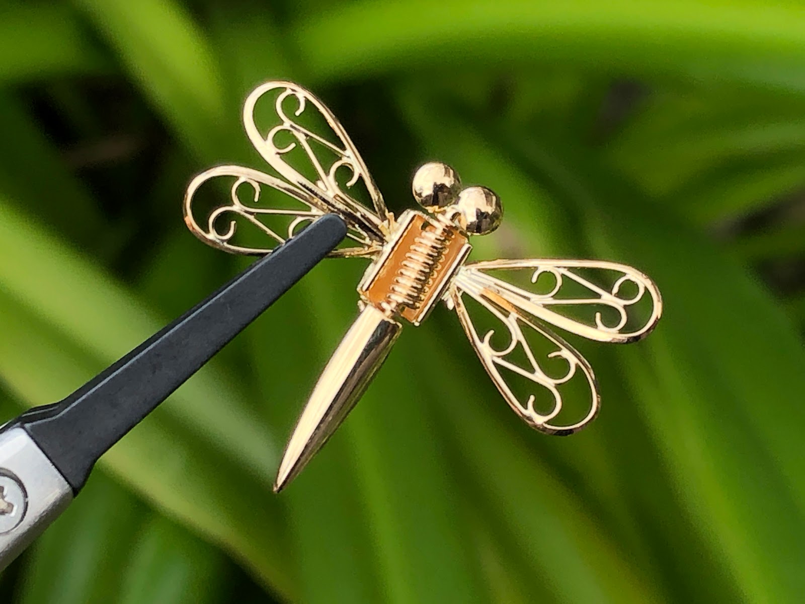 金線を巻いたバネを使った昭和のショール留め、ブローチ。仕上げ済みの記念写真📸バネを胴体に、針を足に見立てたナイスデザイン。数十年経てもバネはしっかり効いています。説明には伏せてましたが、トンボははじめて見ました。めっちゃ珍しいっす。納品済みです✨✨✨ pic.twitter.com/AiK5GGqzYd— 渕上清志(昭和のヴィンテージジュエリー (@fuchigami) December 23, 2019
