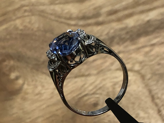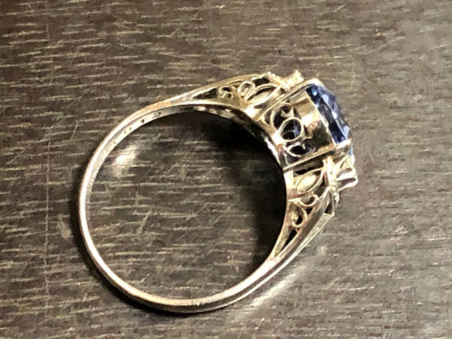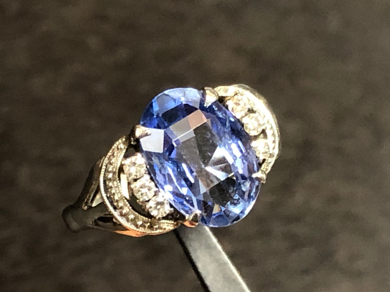 サファイア4ct ダイヤモンド 手巻き唐草 Pm850 #16 昭和ジュエリー /912102