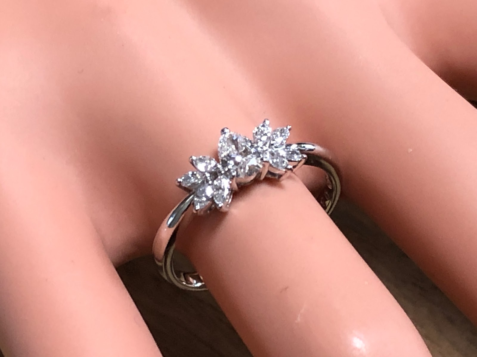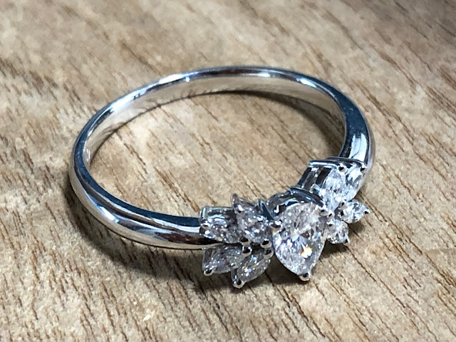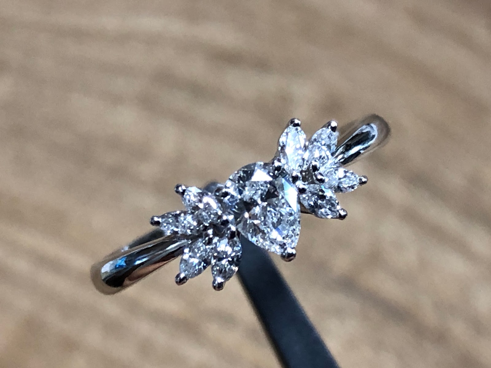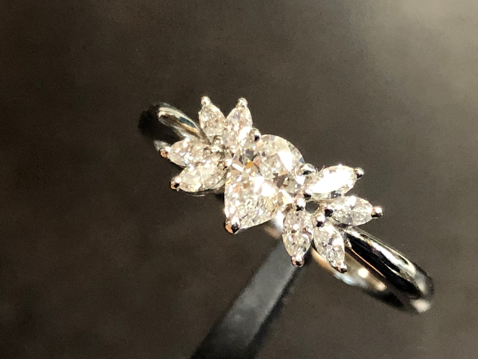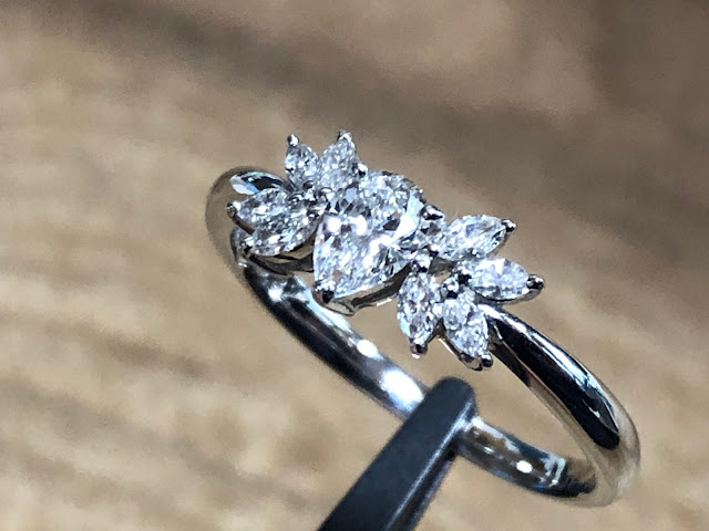 ラウンドを使わず、ペアシェイプカットとマーキスカットのメレだけで構成というのもイイですね。