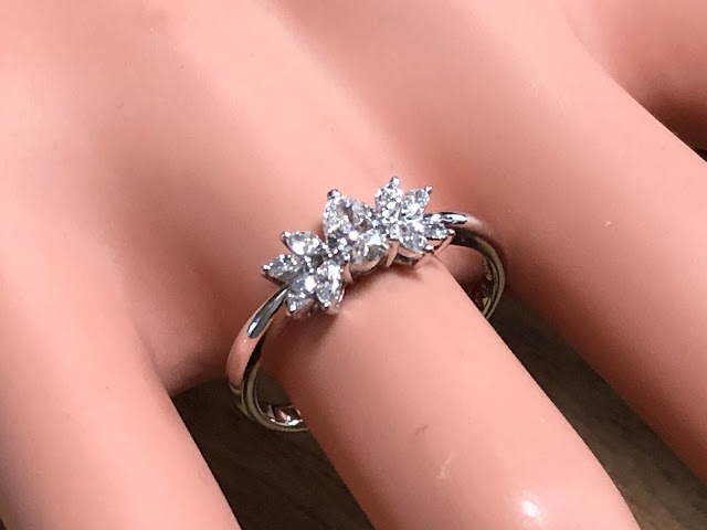 黒板背景の写真は、ダイヤモンドが黄色く写っていますが、実物は無色系スッキリキラキラ感のある綺麗なダイヤモンドです。