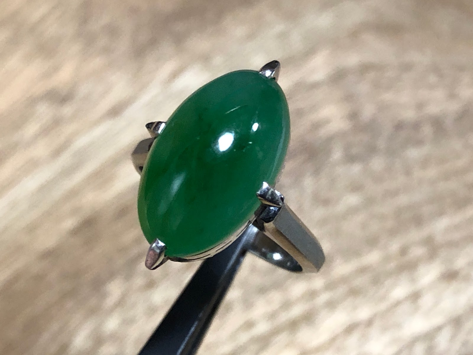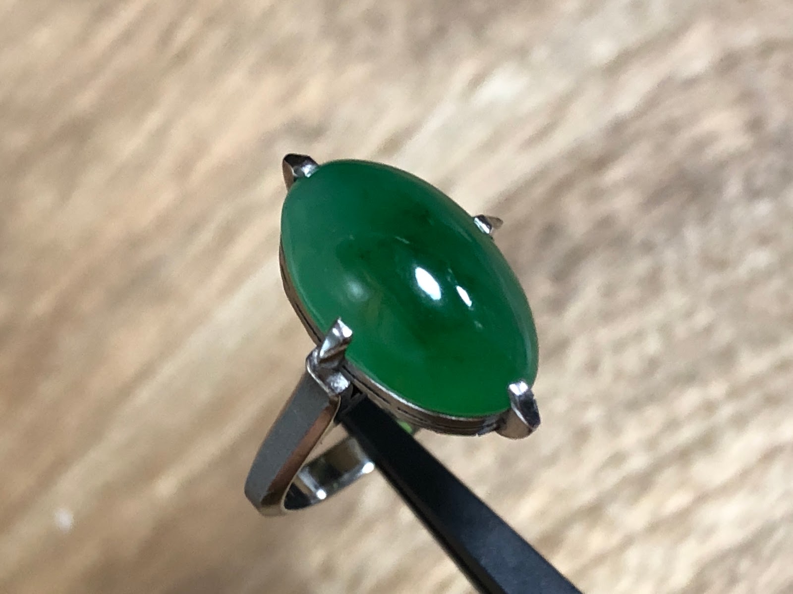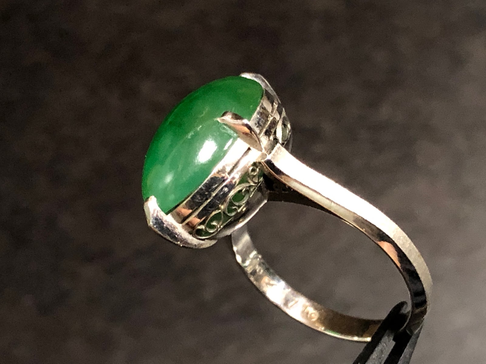 透明感のある翡翠 手巻き唐草 P.m900 リング #12 昭和ジュエリー /04121