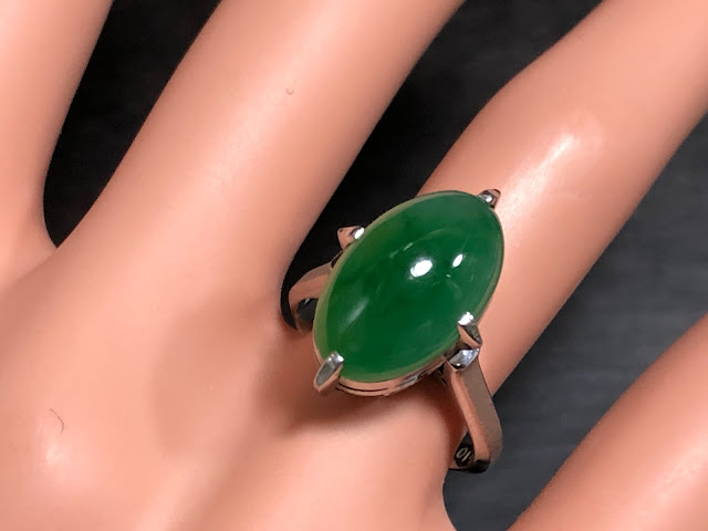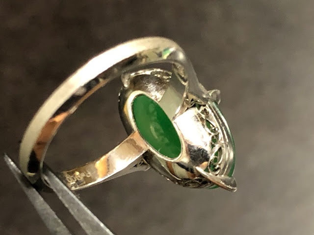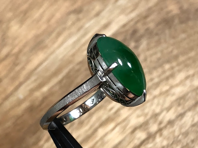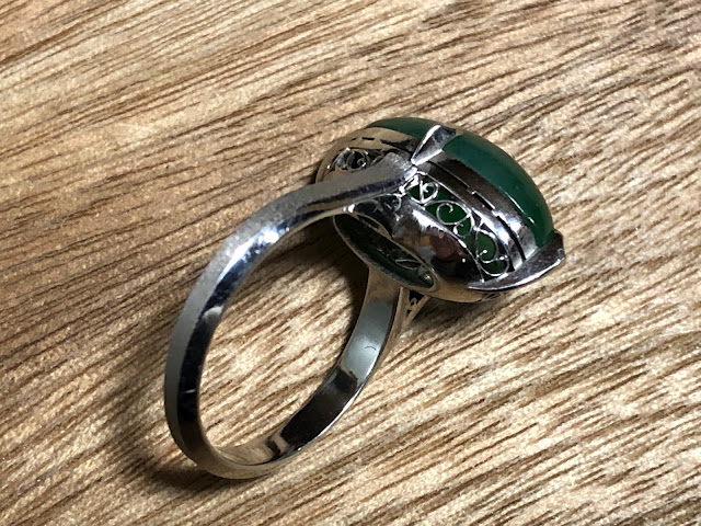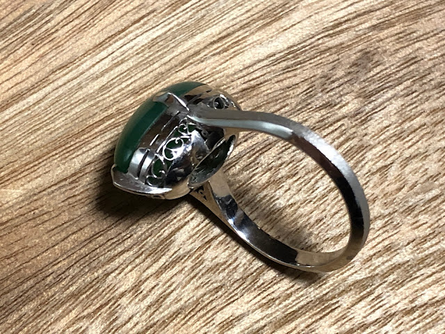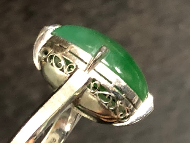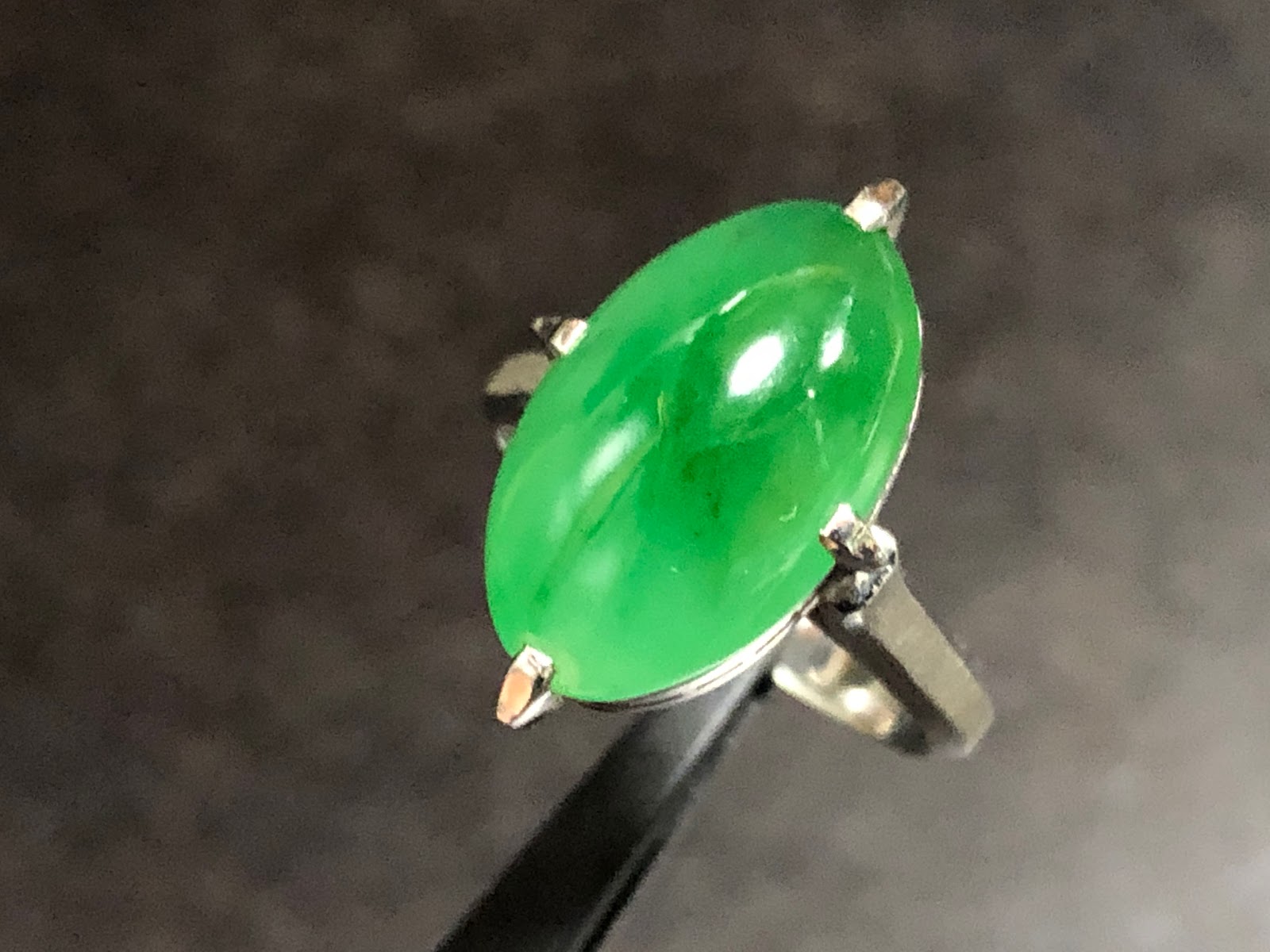 透明感のある翡翠 手巻き唐草 P.m900 リング #12 昭和ジュエリー /04121
