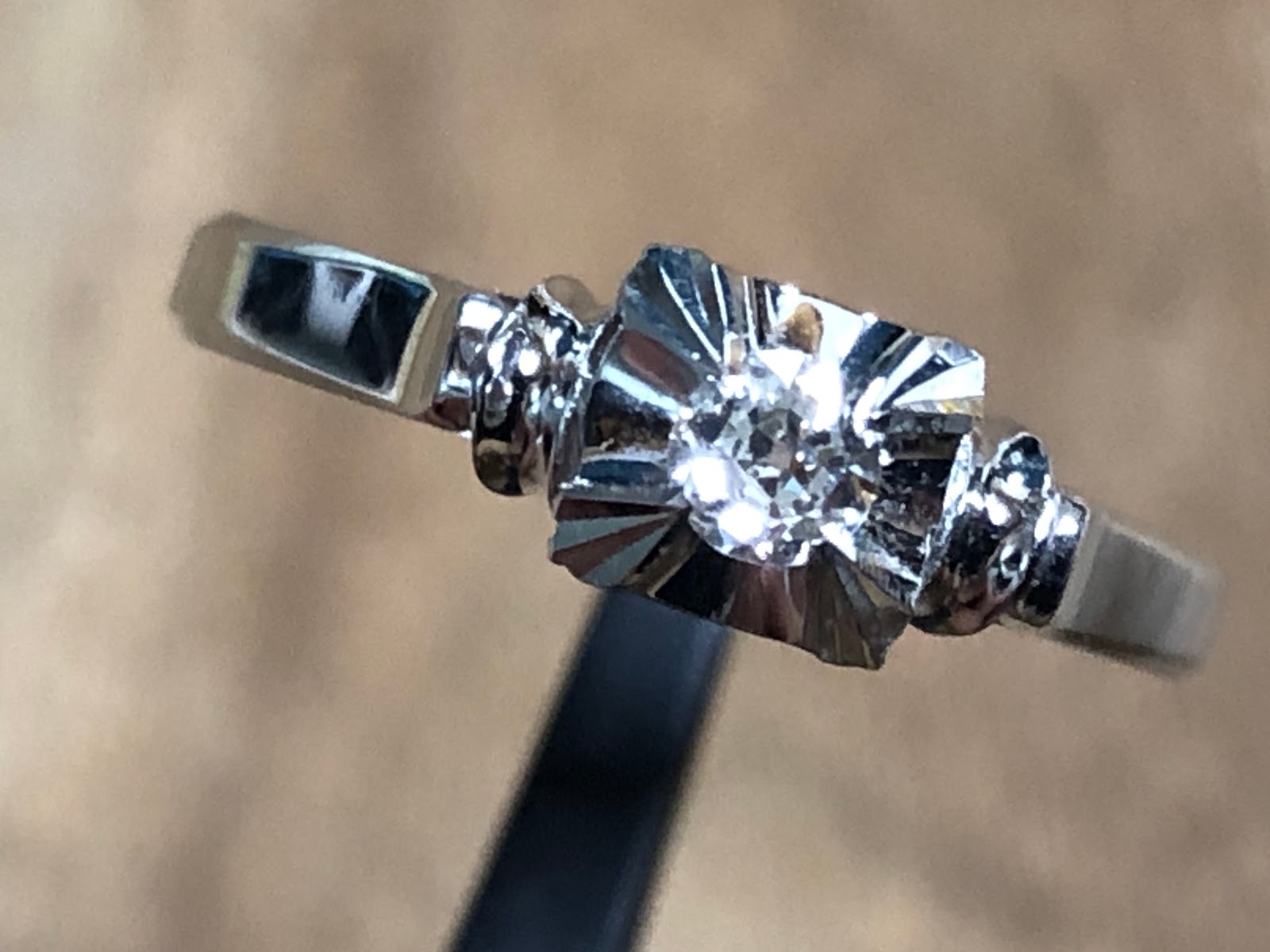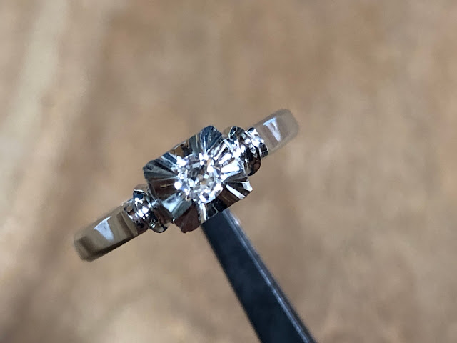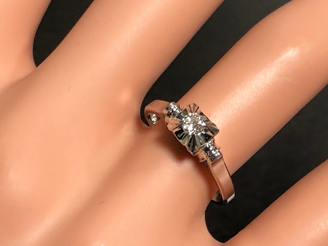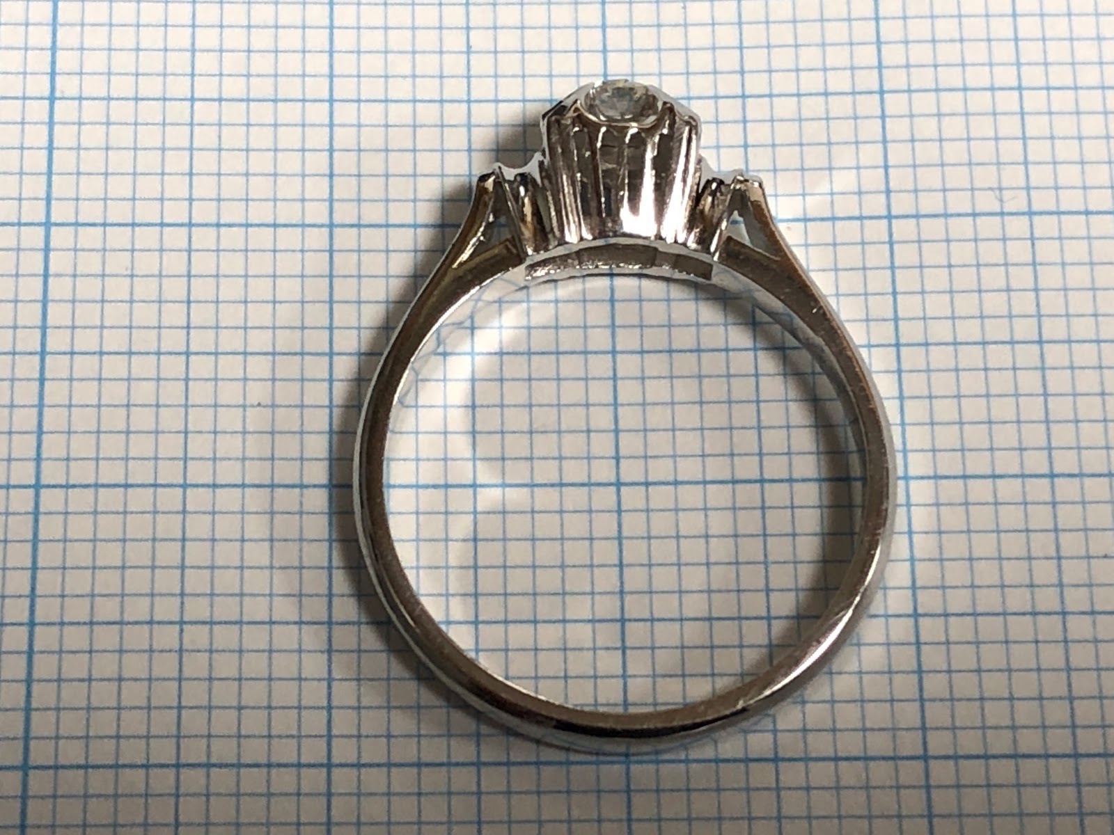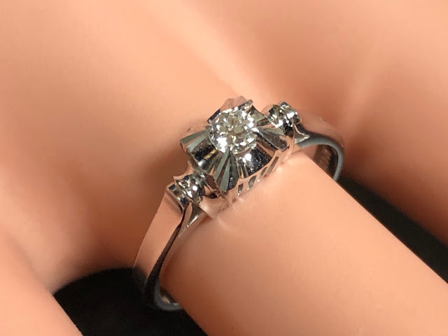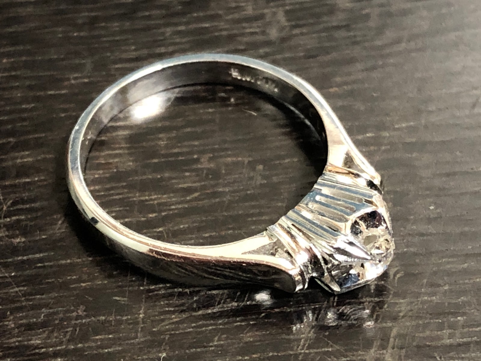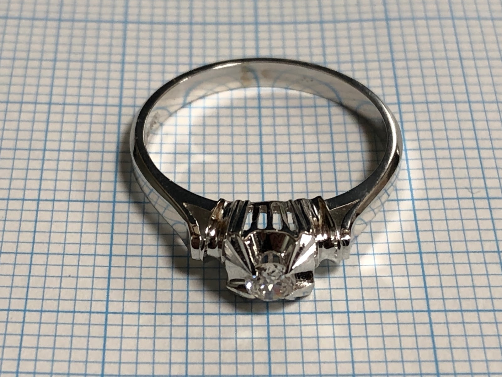 古いダイヤモンドがセットされた 鋳造千本透かし K14WG リング #11.3 昭和 /04133