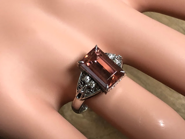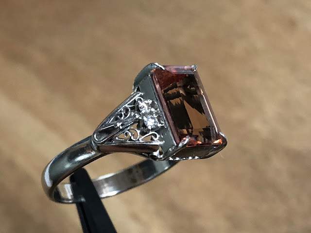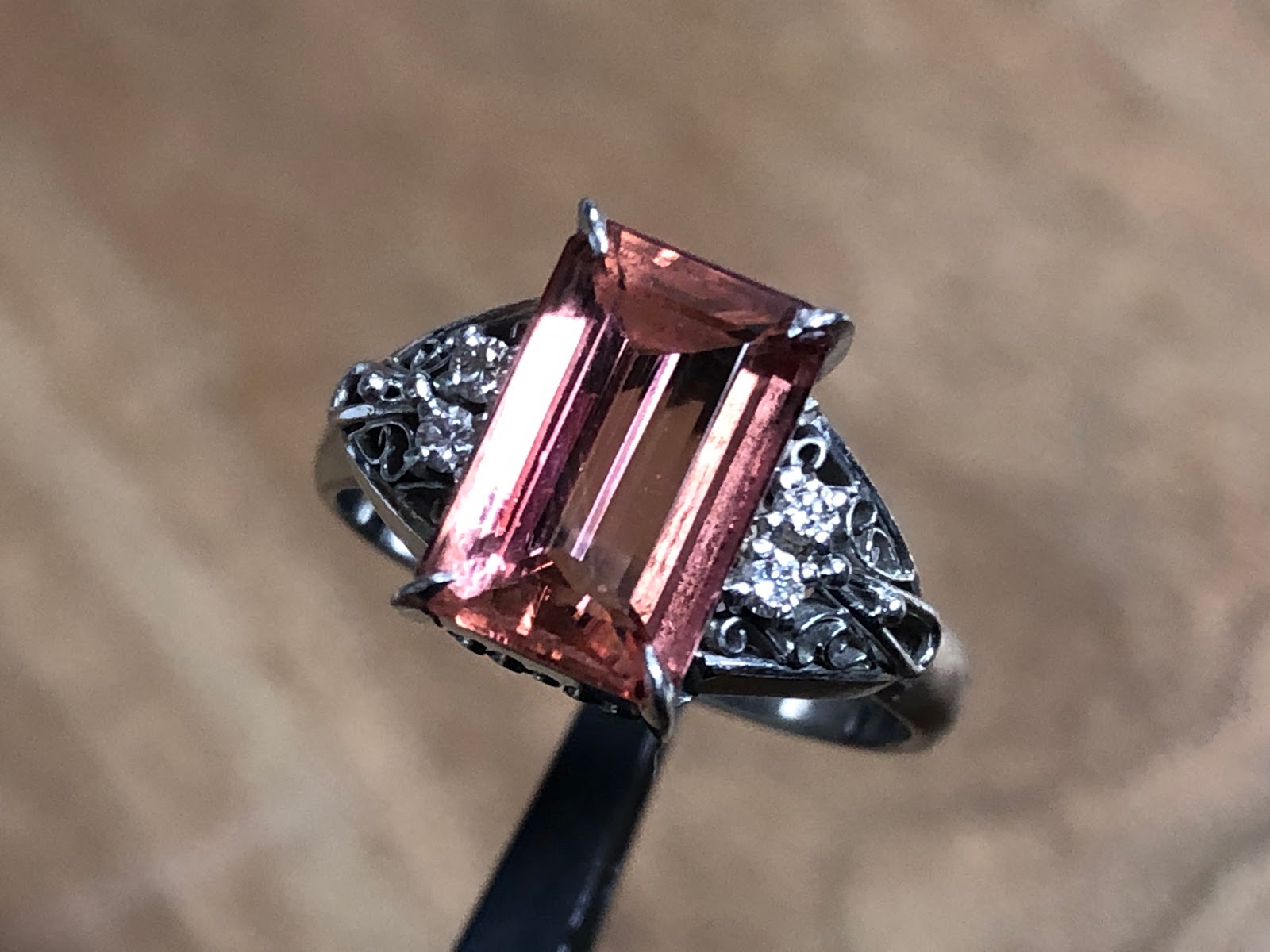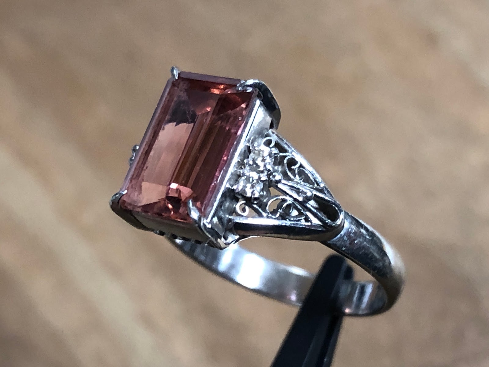インペリアルトパーズ ダイヤモンド 手巻き唐草 Pt900 リング #15 昭和ジュエリー /04173