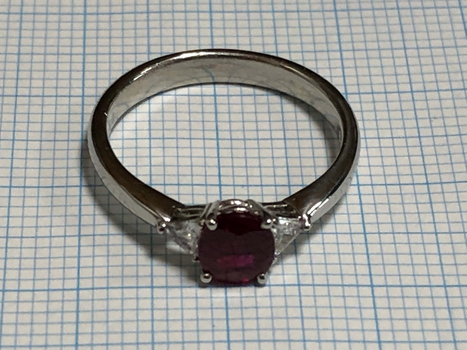赤いルビー トリリアントダイヤモンド Pt900 リング #12.5 平成 /04172