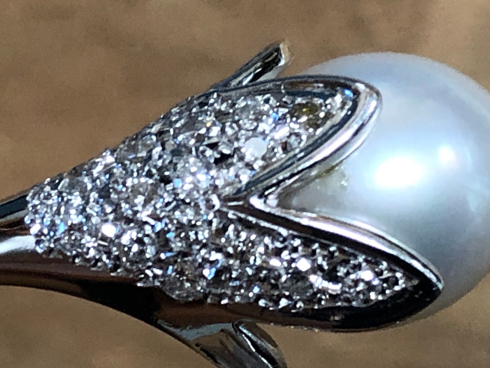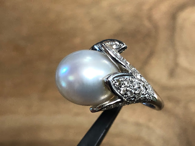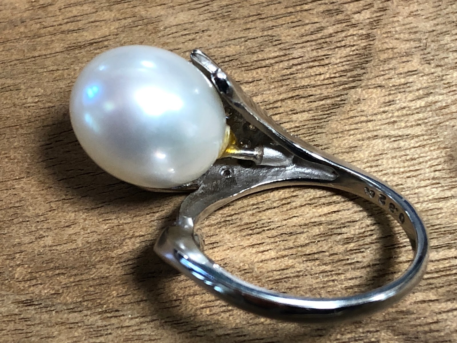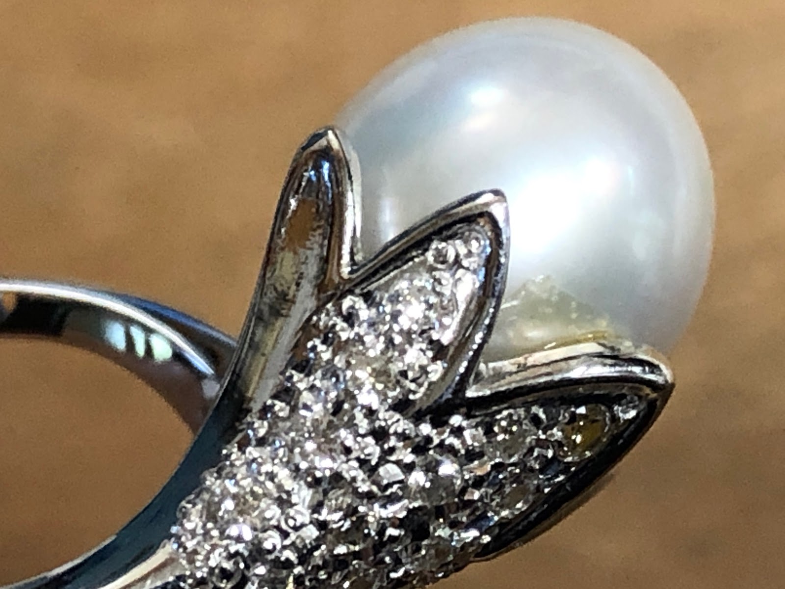 枠は鋳造、淡水真珠だけれども、なんだかいいなぁと思いまして…