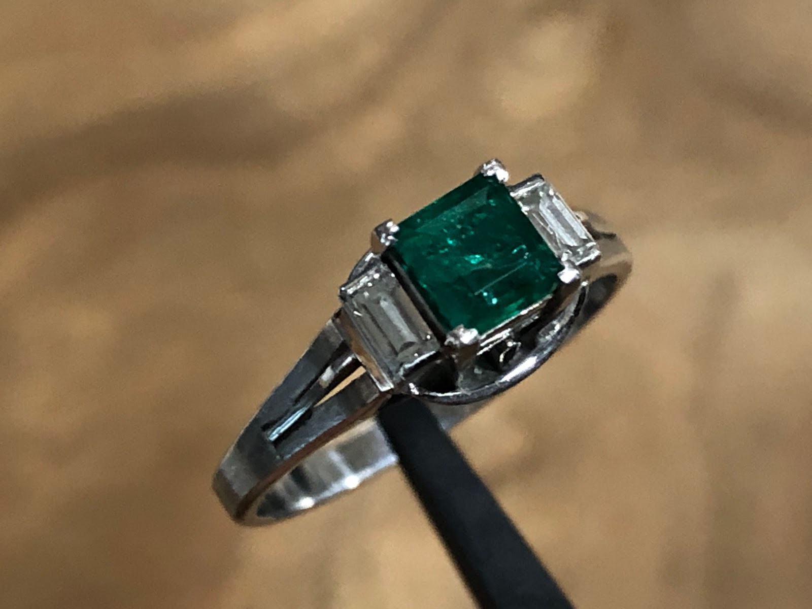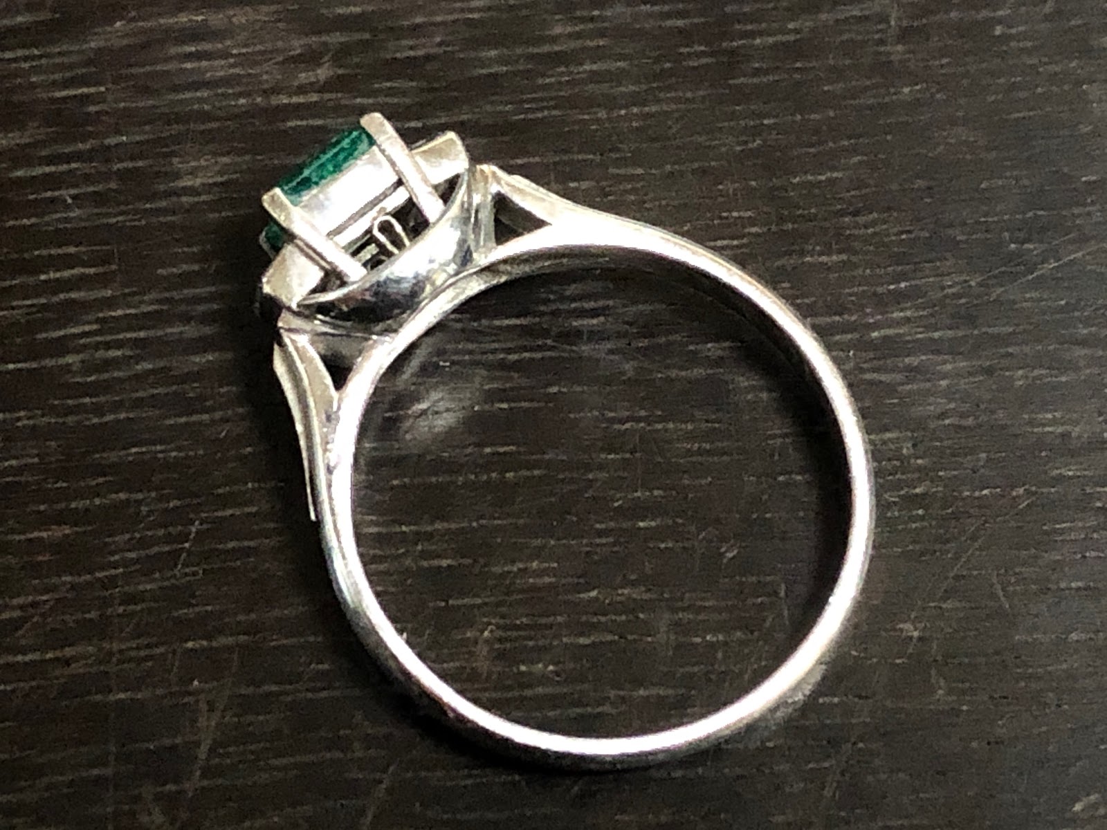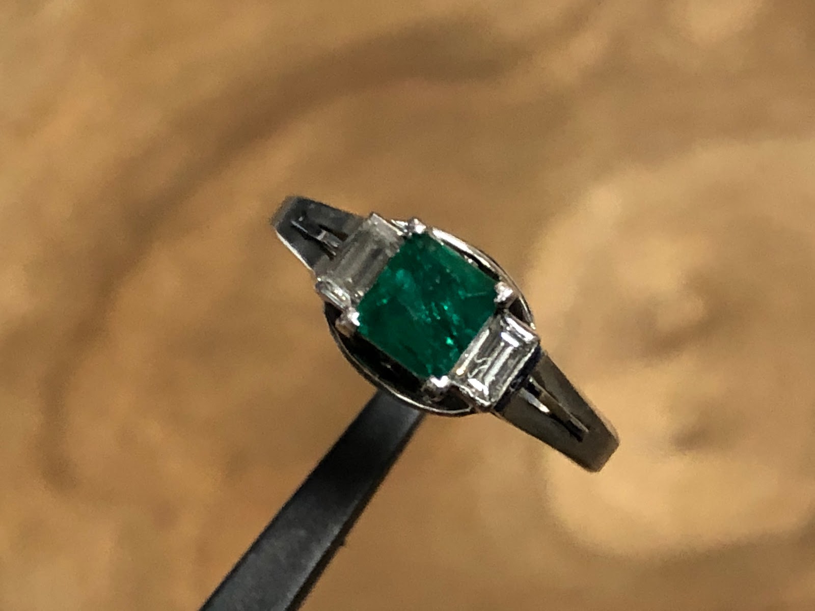 エメラルドはインクルージョンもあり、テーブル面に達している内部のキズが割とわかりやすい感じではあります。