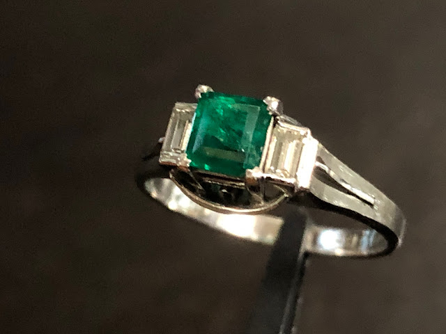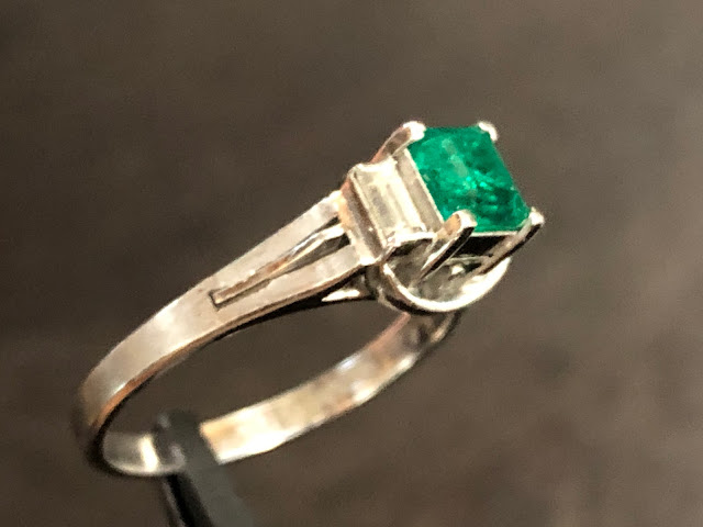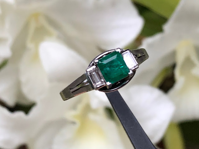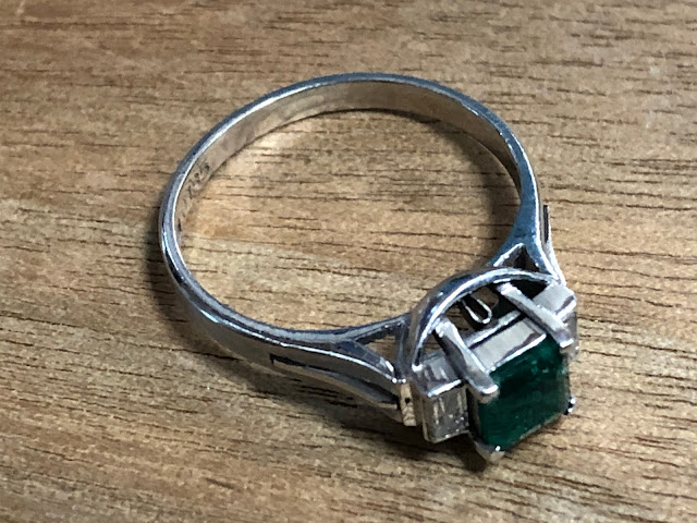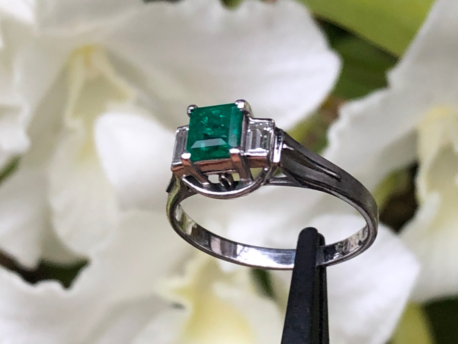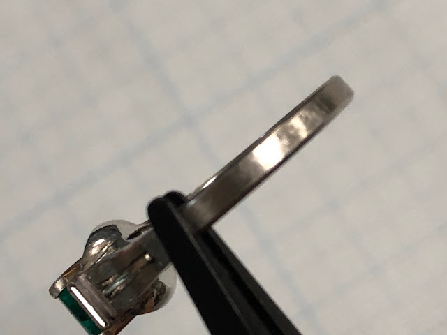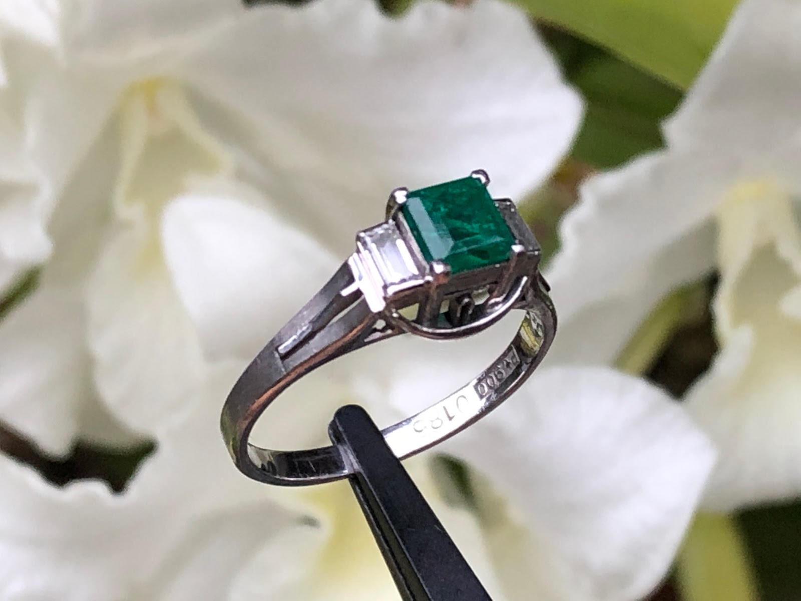エメラルドはインクルージョンもあり、テーブル面に達している内部のキズが割とわかりやすい感じではあります。