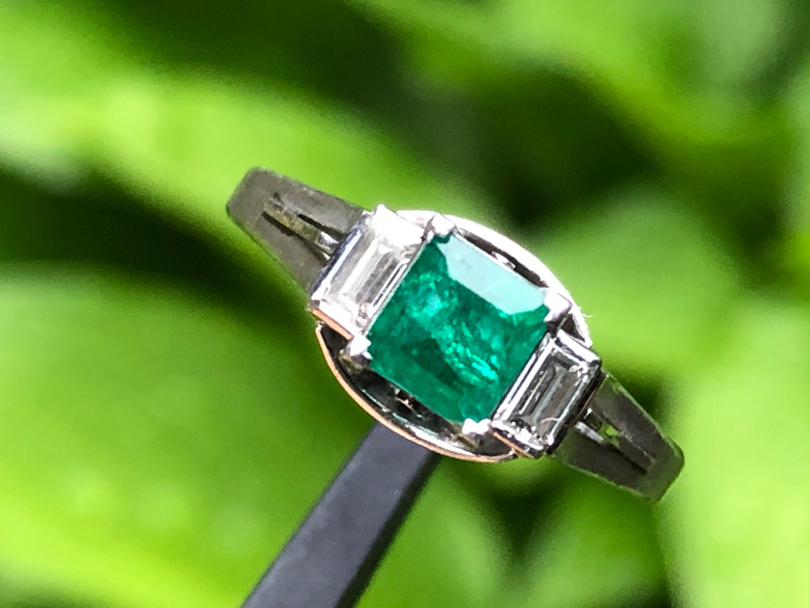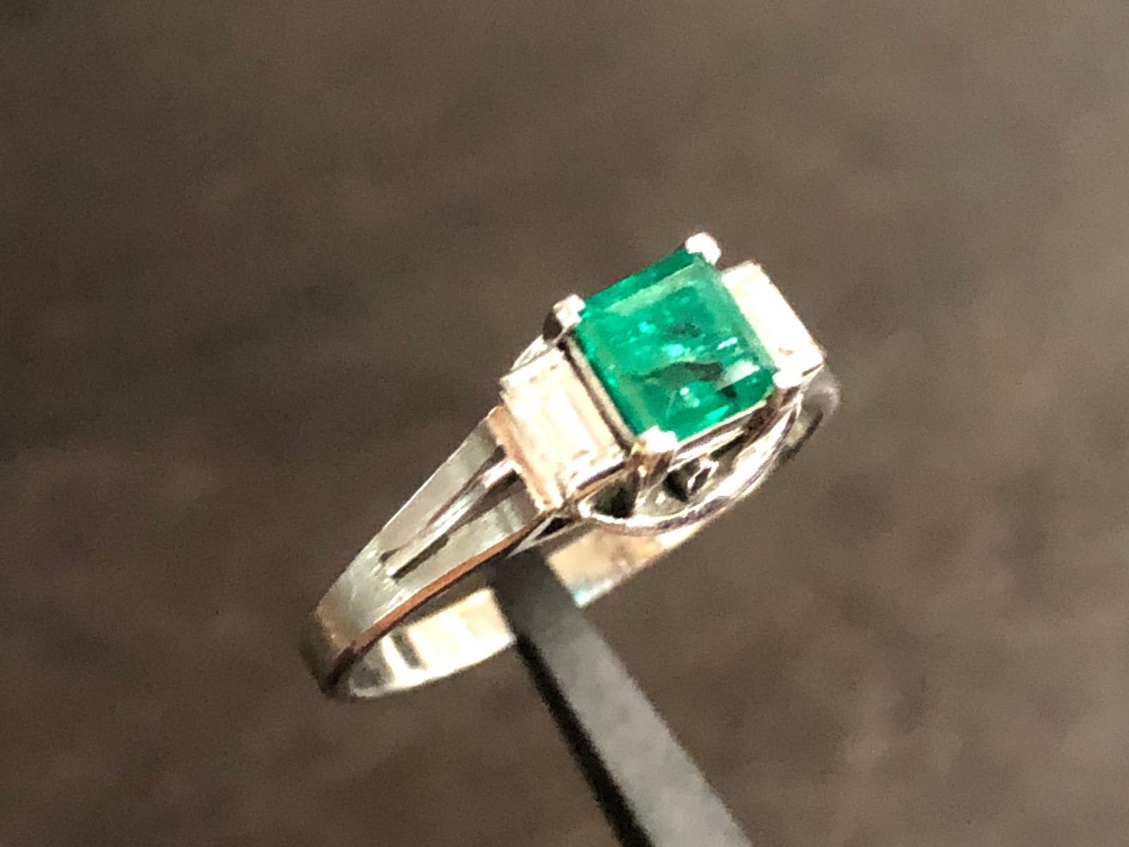 エメラルド ダイヤモンド ハンドメイド Pt900 リング #12.2 昭和 /05031