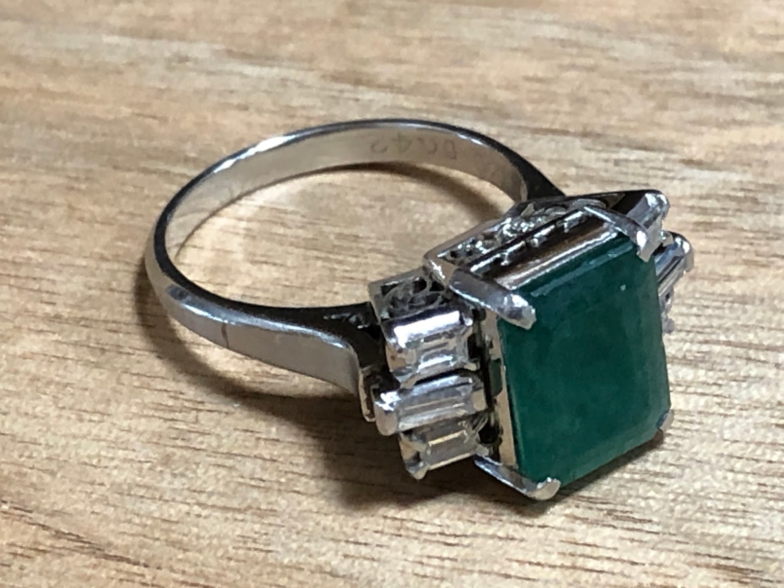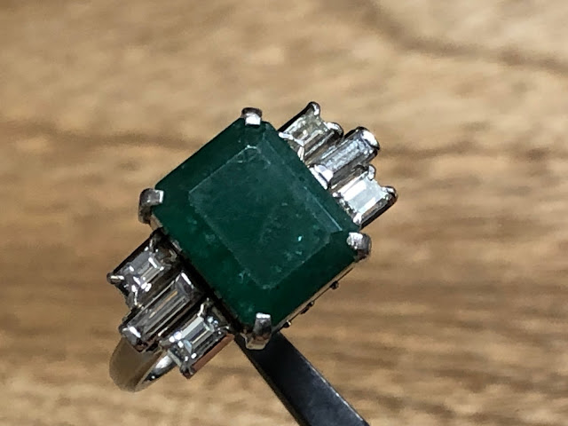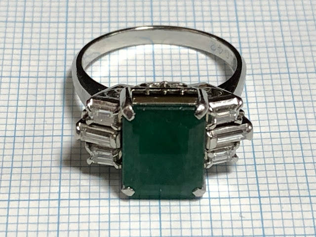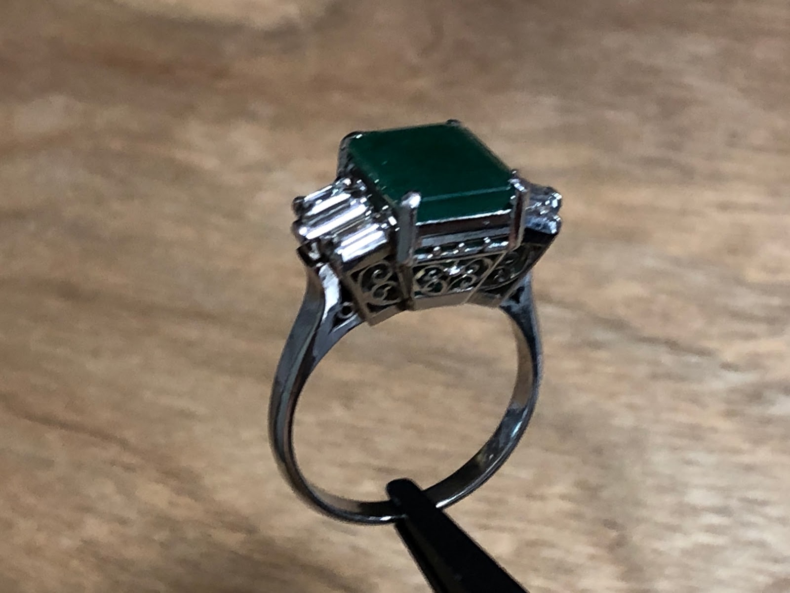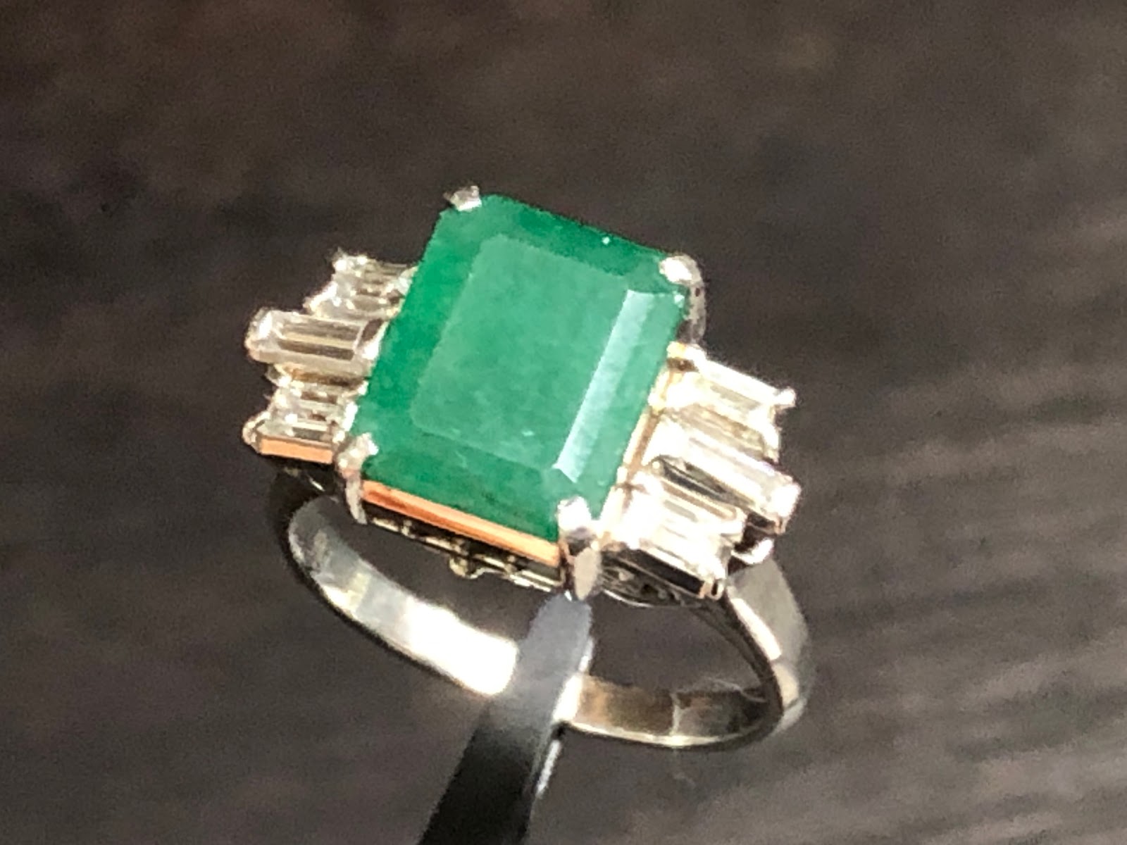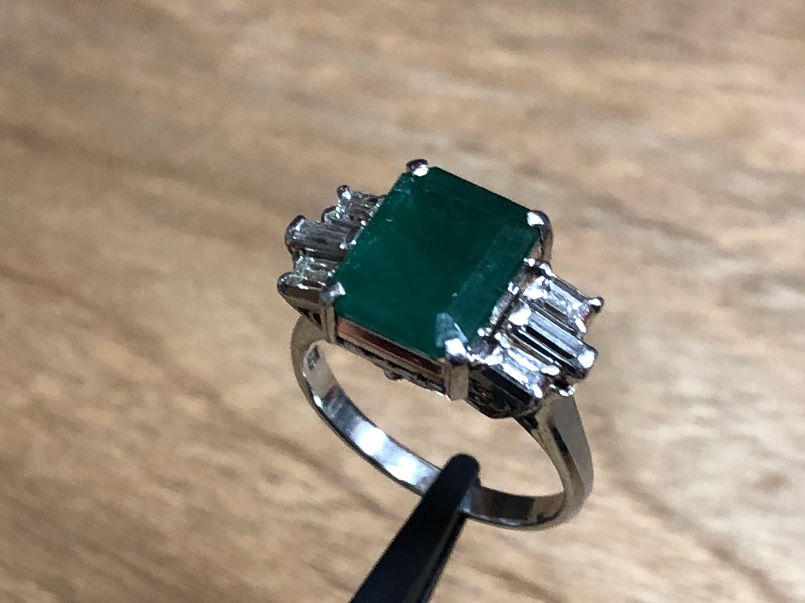 6石のバゲットカットのメレダイヤモンドも存在感あって綺麗でいい感じ。