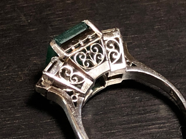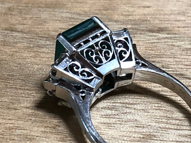 難ありエメラルド 手巻き唐草 リング #12 昭和ジュエリー /05101