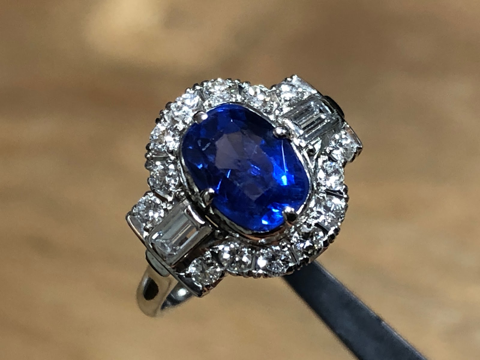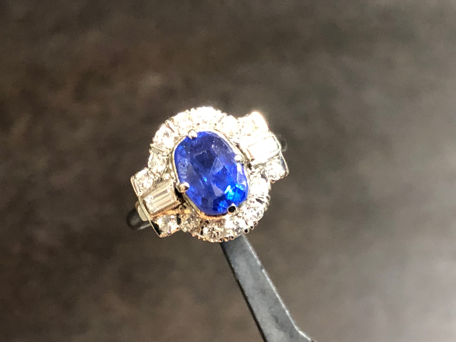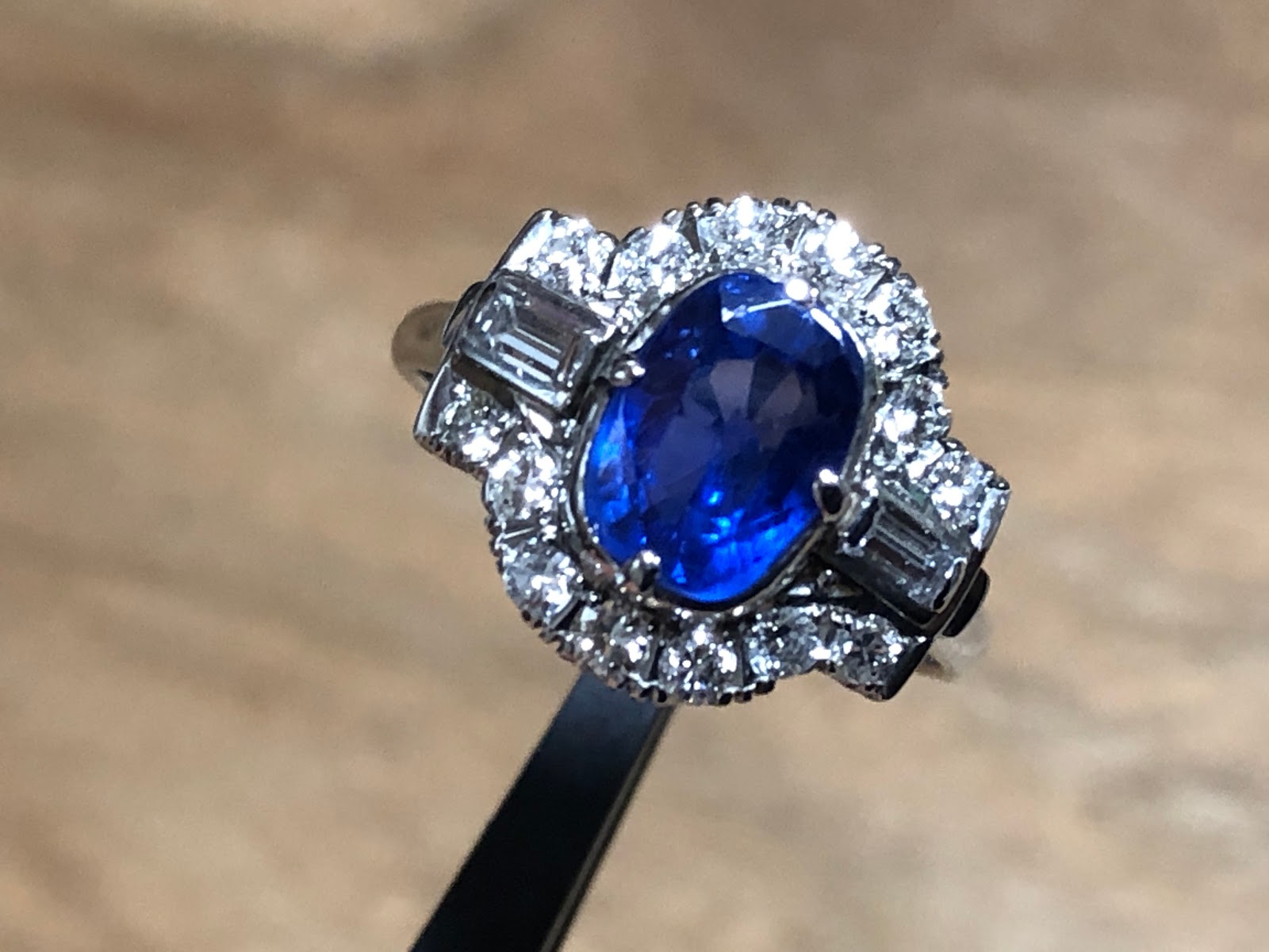 ヴィンテージ 非加熱サファイア ダイヤモンド取巻き リング #11 /05102