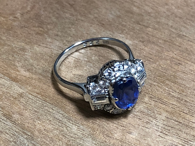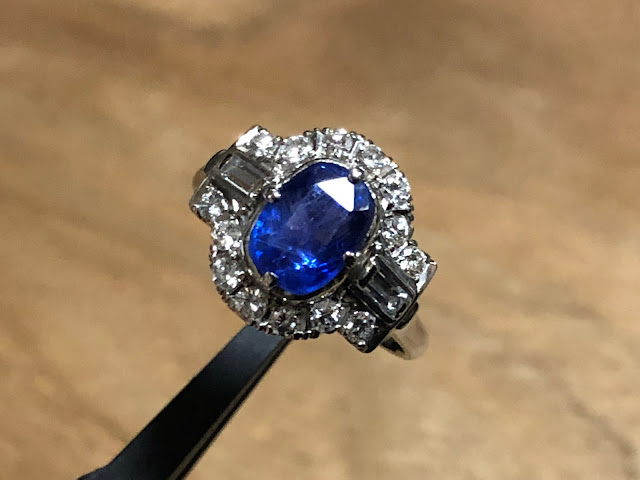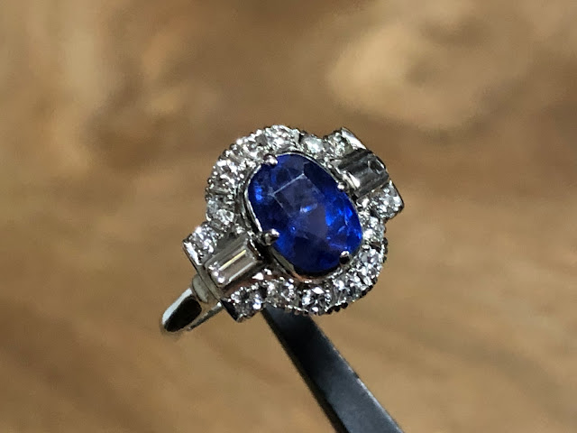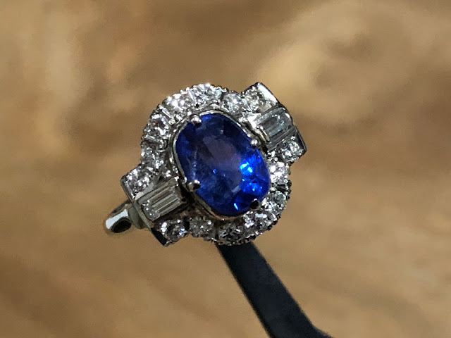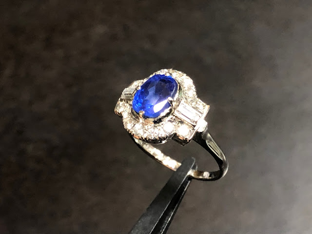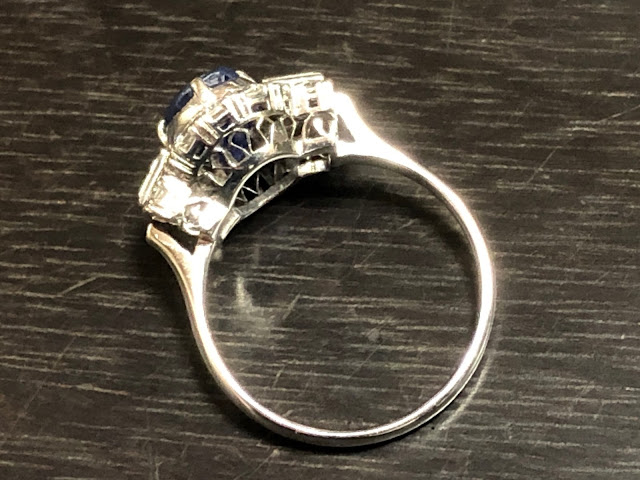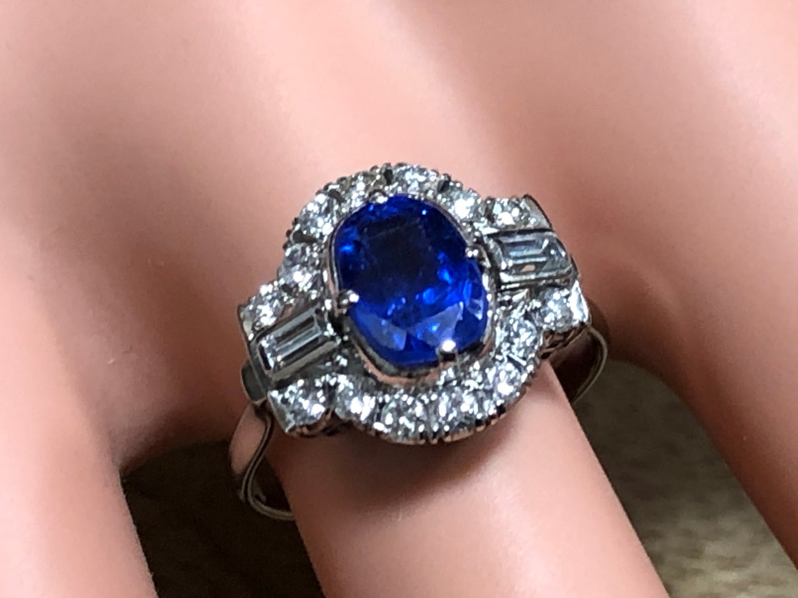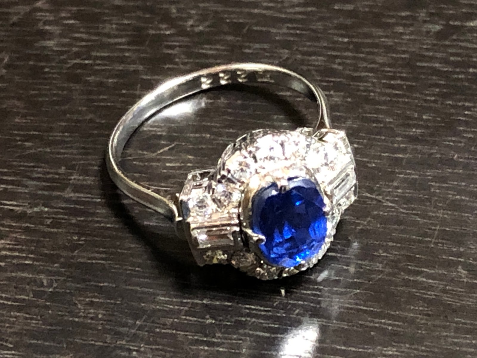 ヴィンテージ 非加熱サファイア ダイヤモンド取巻き リング #11 /05102