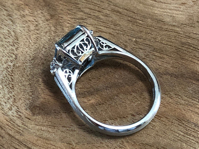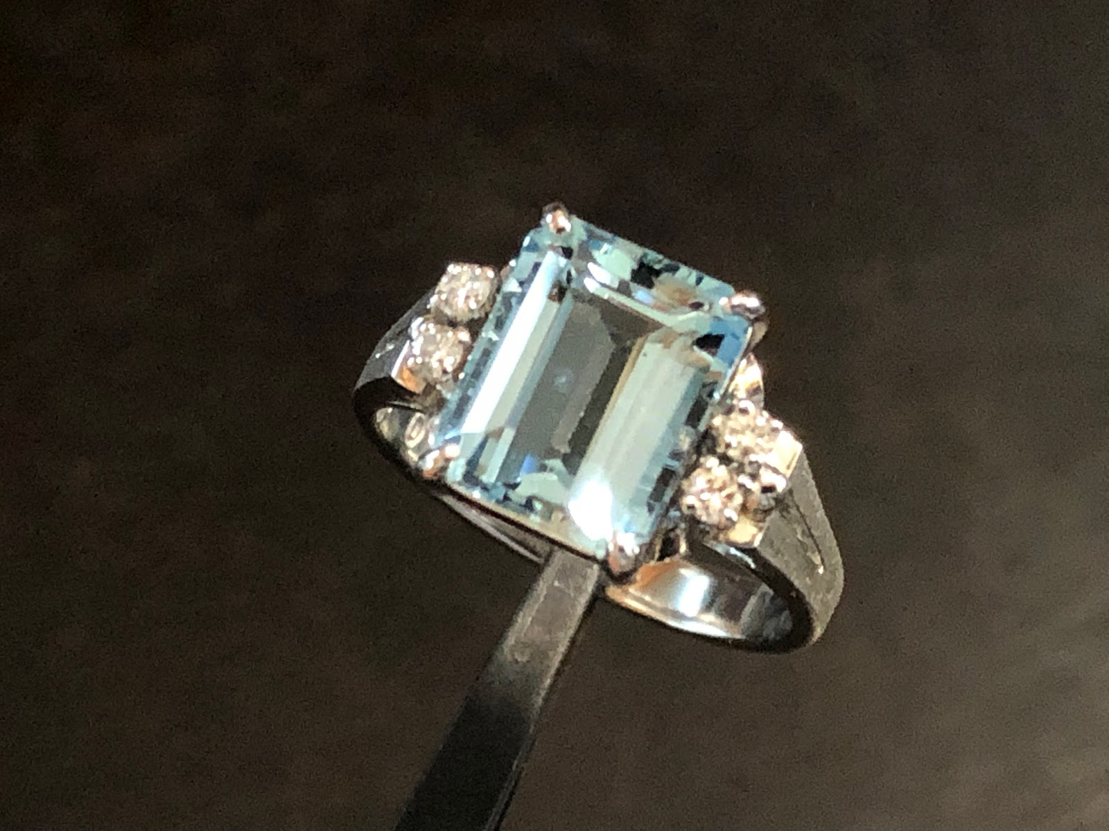 エメラルドカットで、透明感が際立っています。