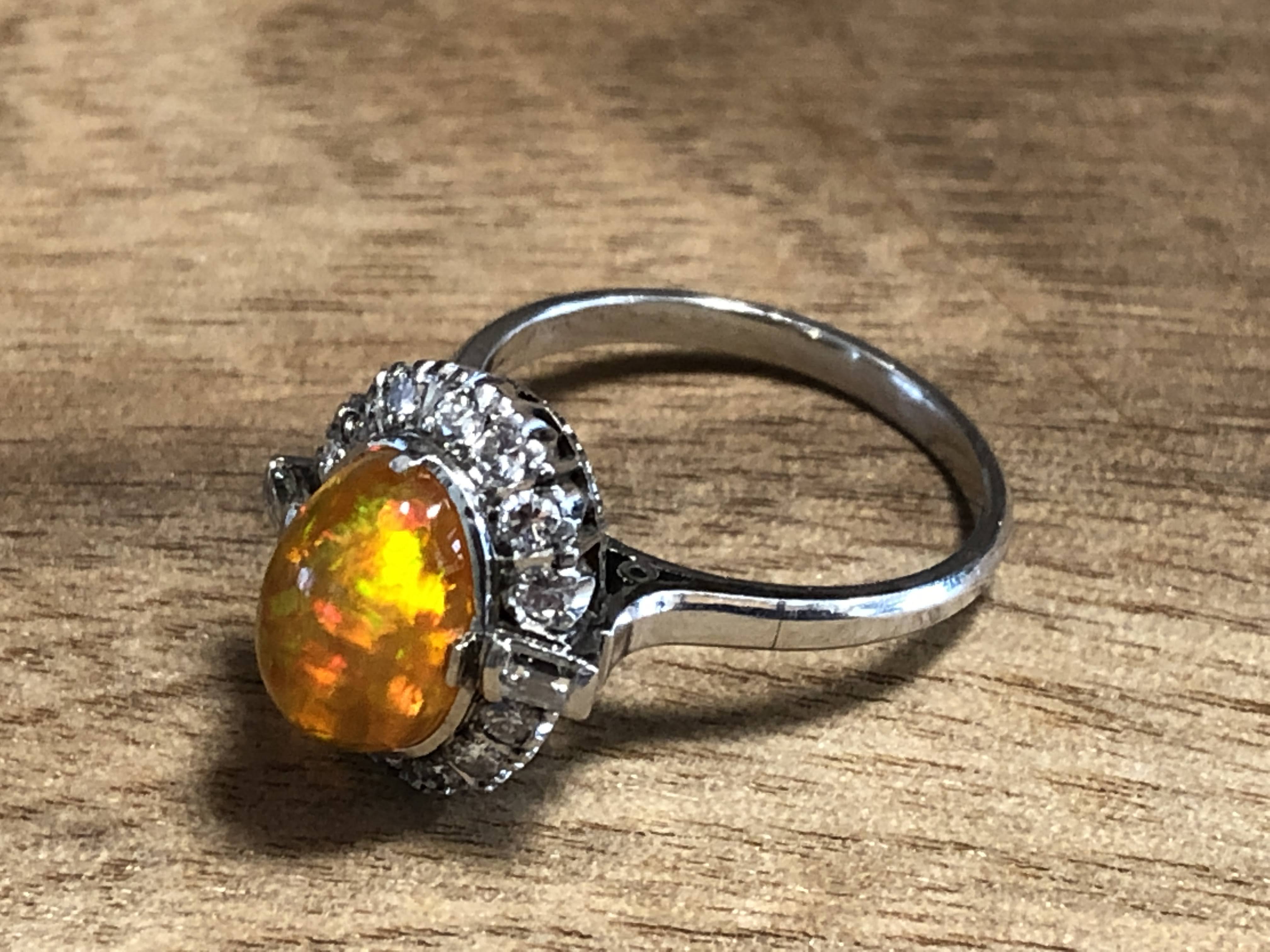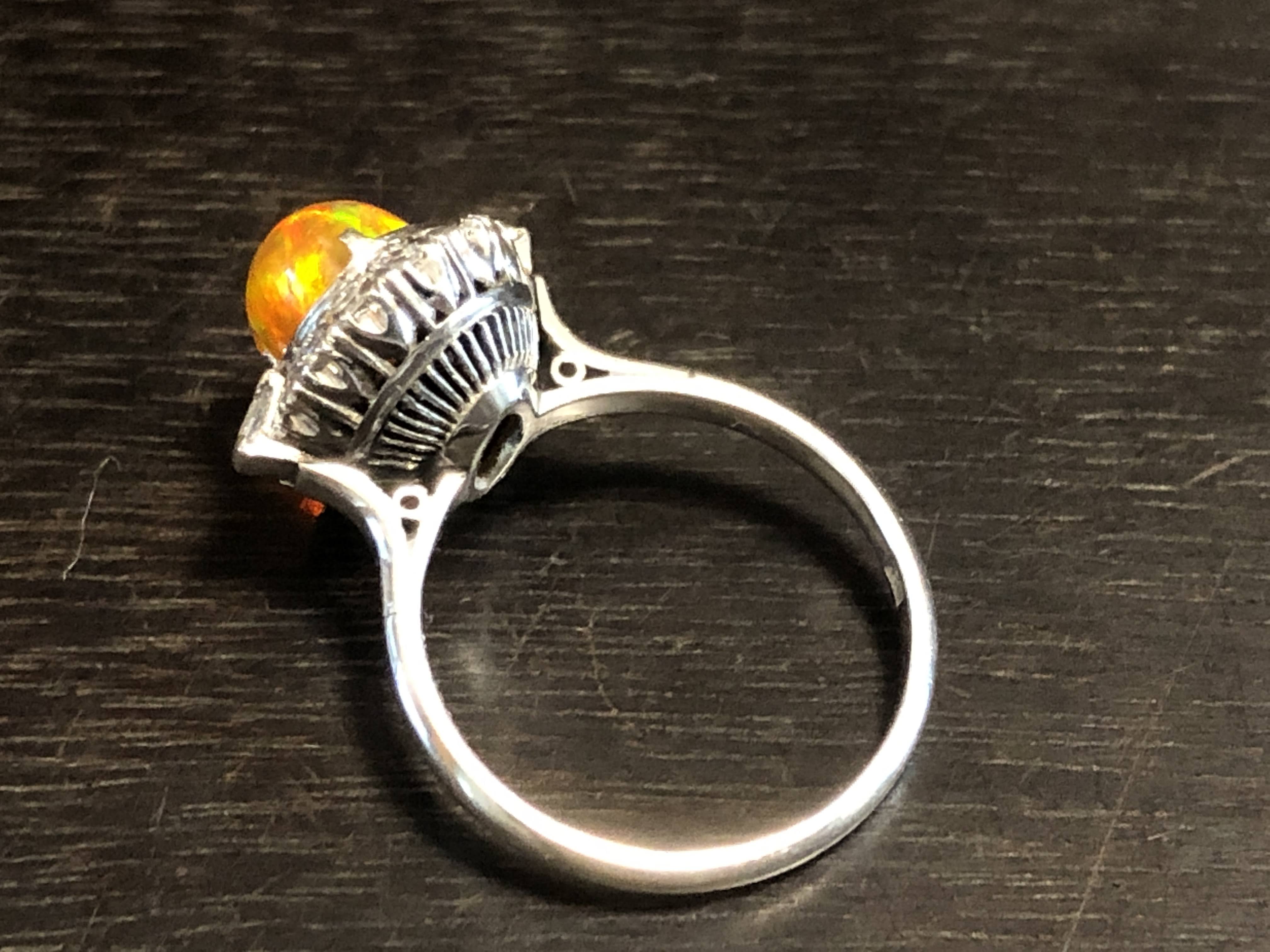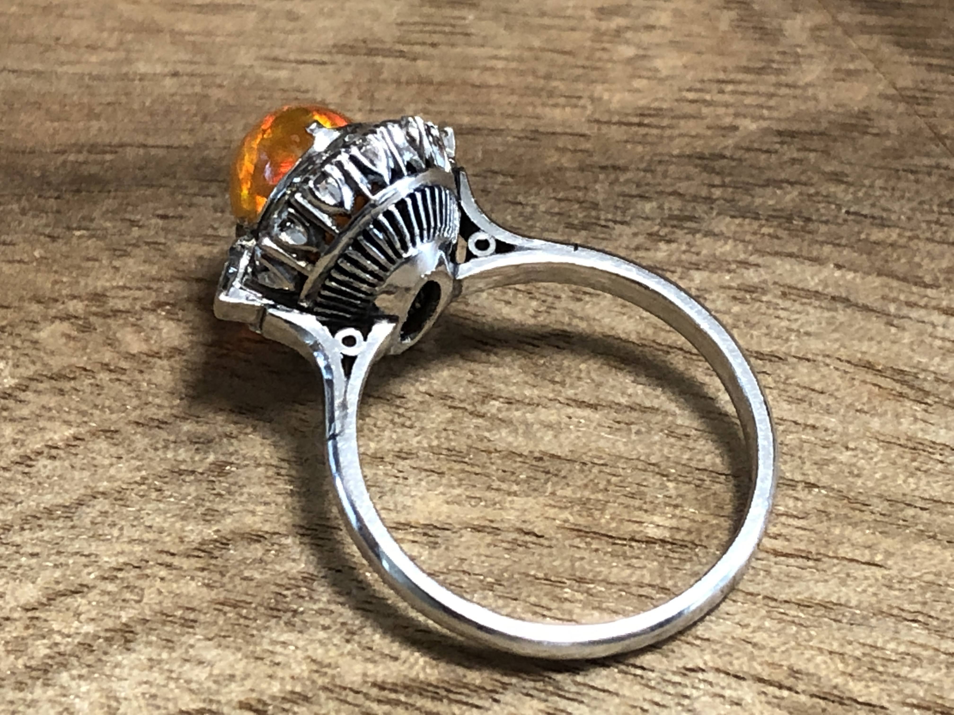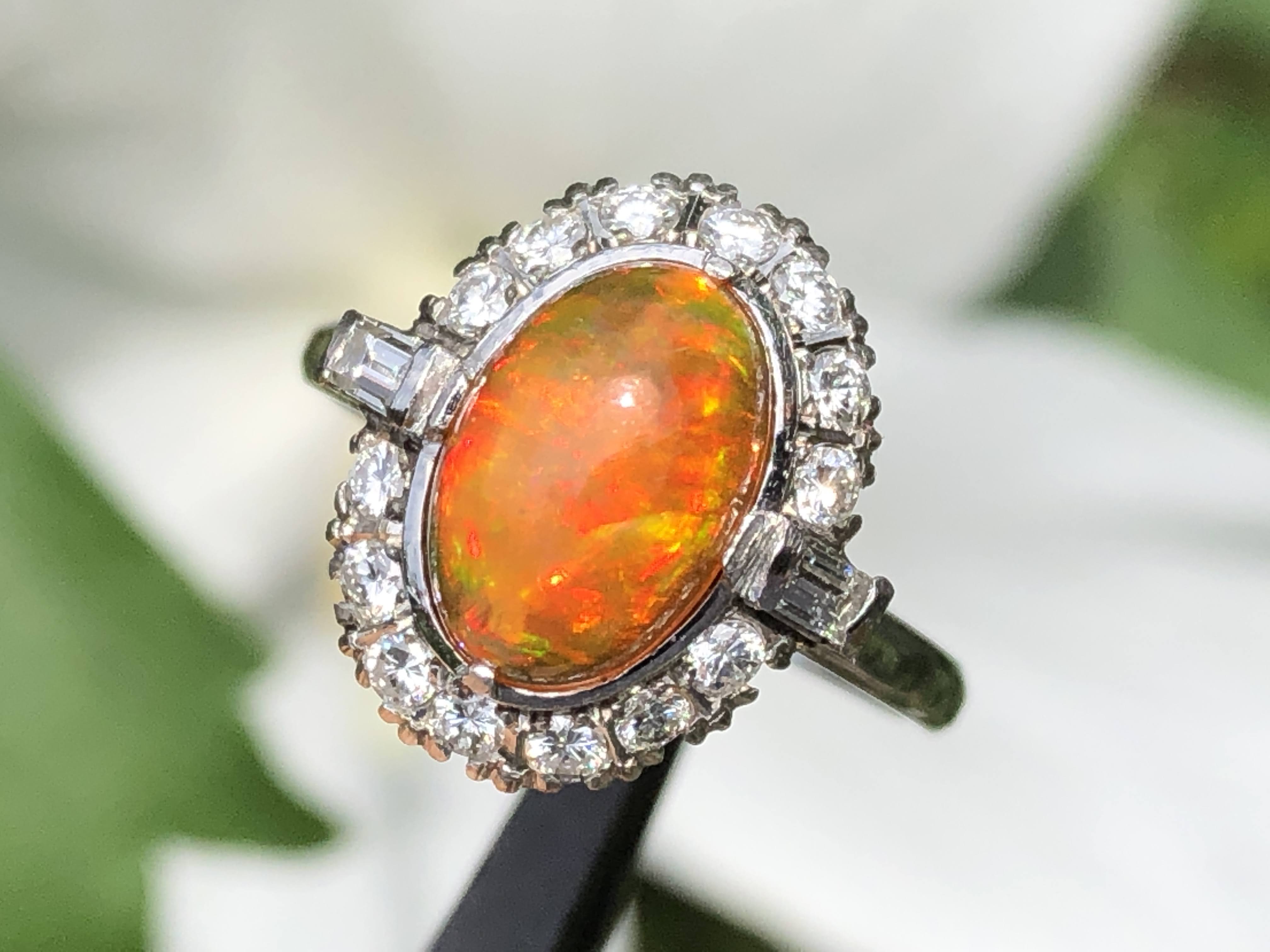ファイヤーオパール ダイヤモンド取巻き P.m リング #11.6 昭和ジュエリー /08031