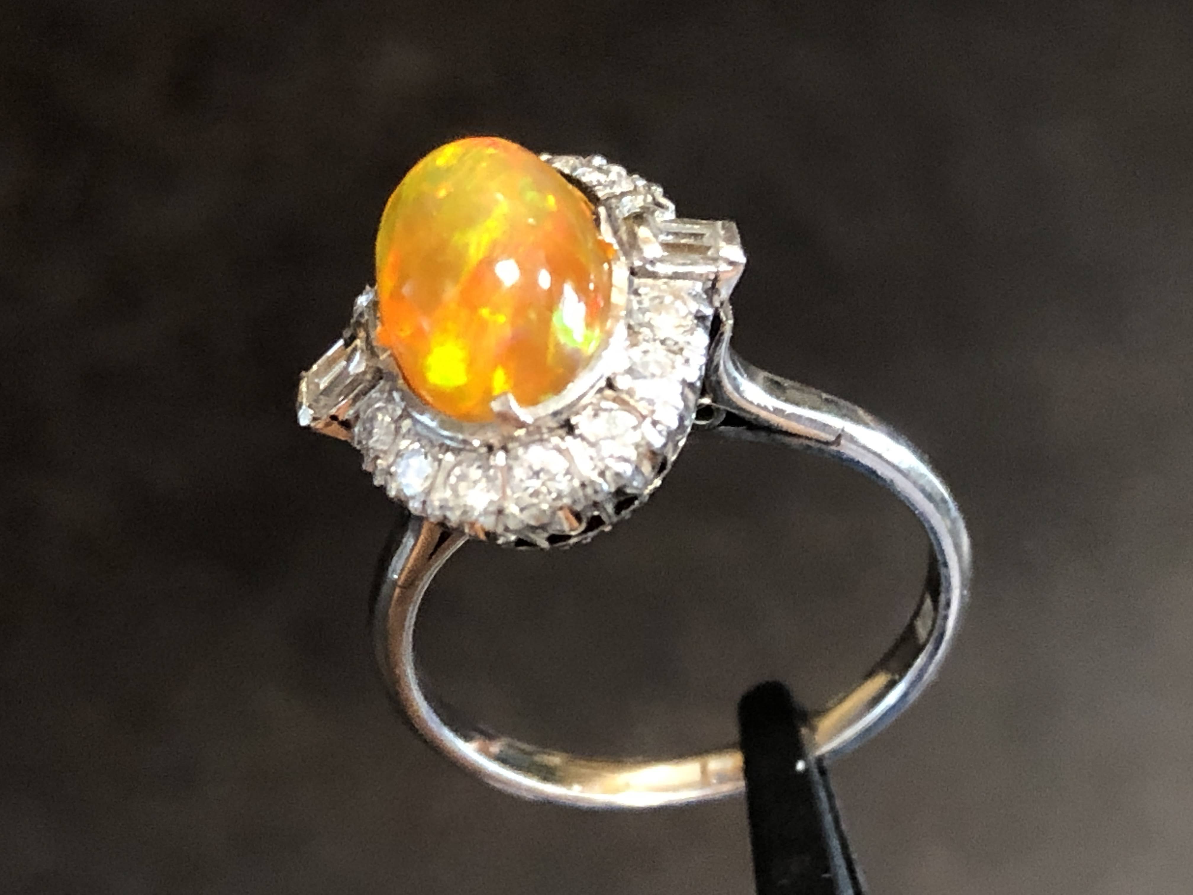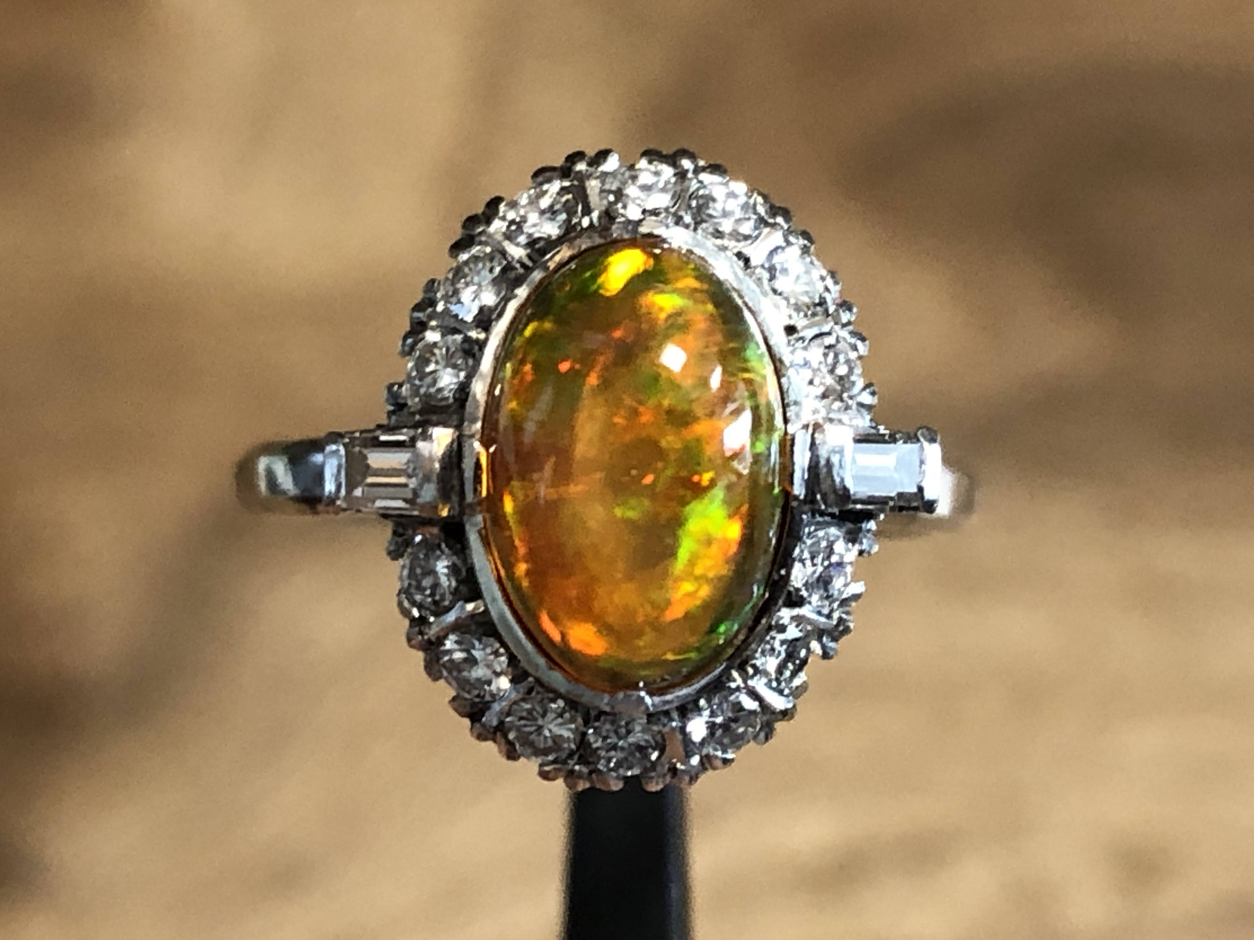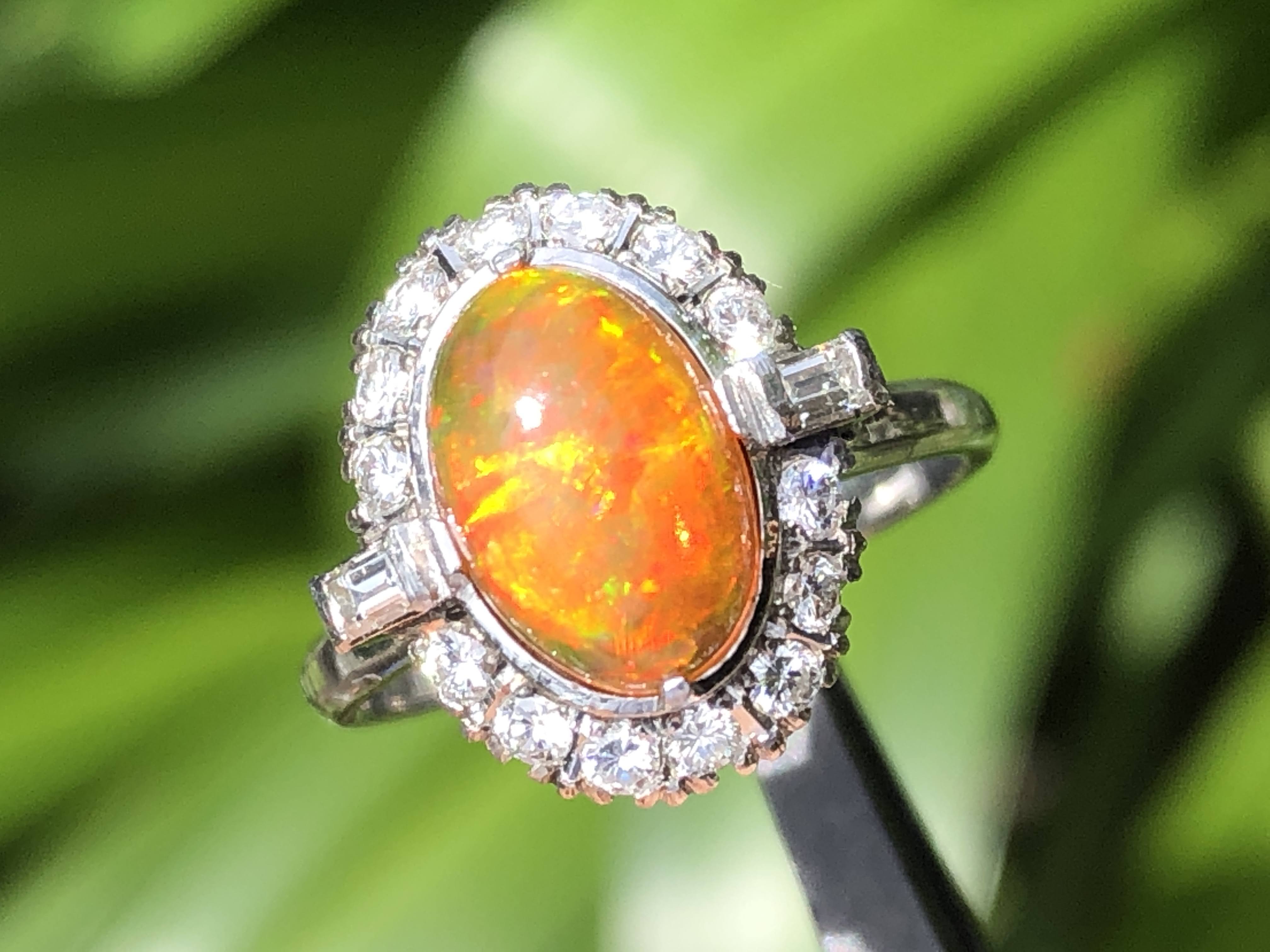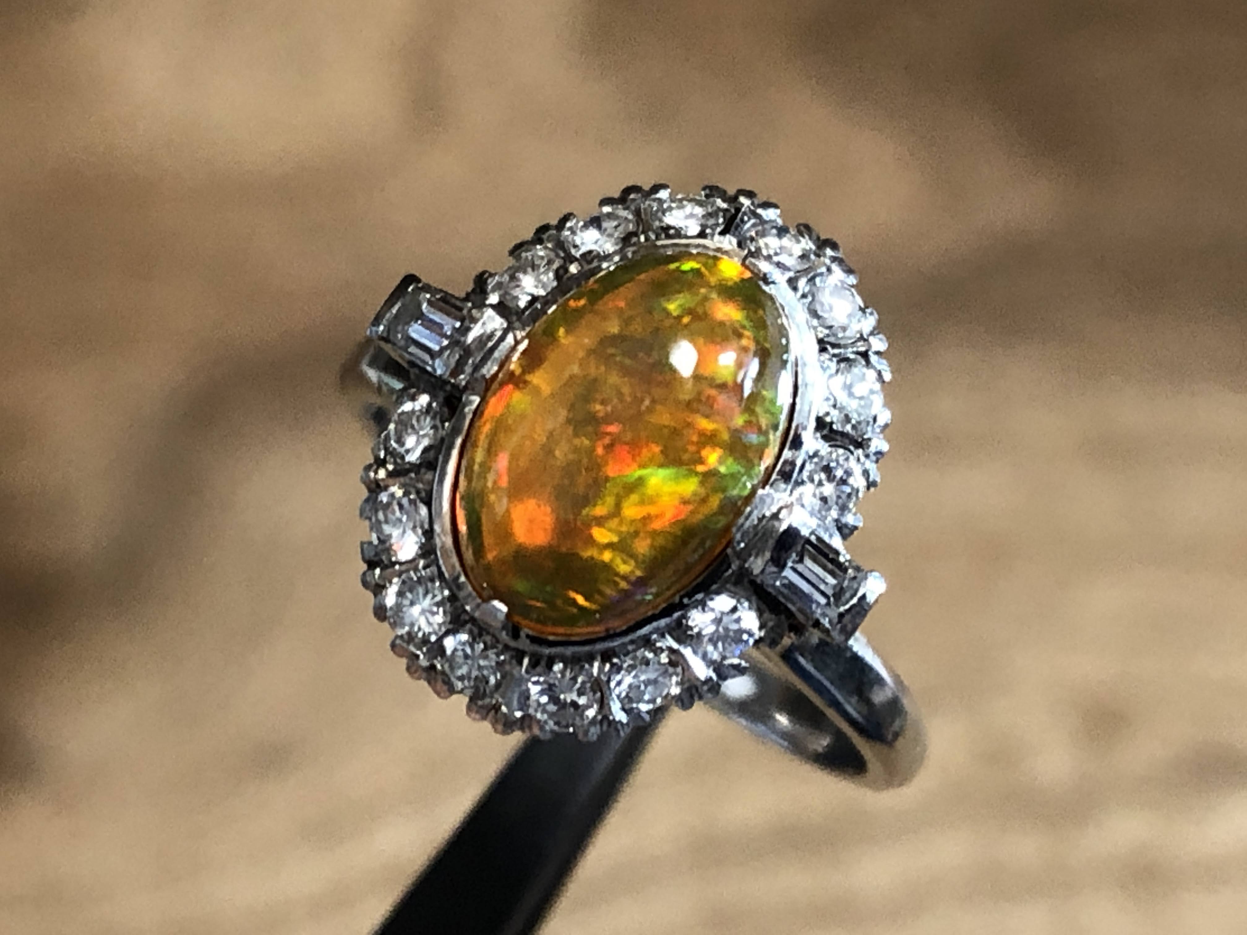 ファイヤーオパール ダイヤモンド取巻き P.m リング #11.6 昭和ジュエリー /08031