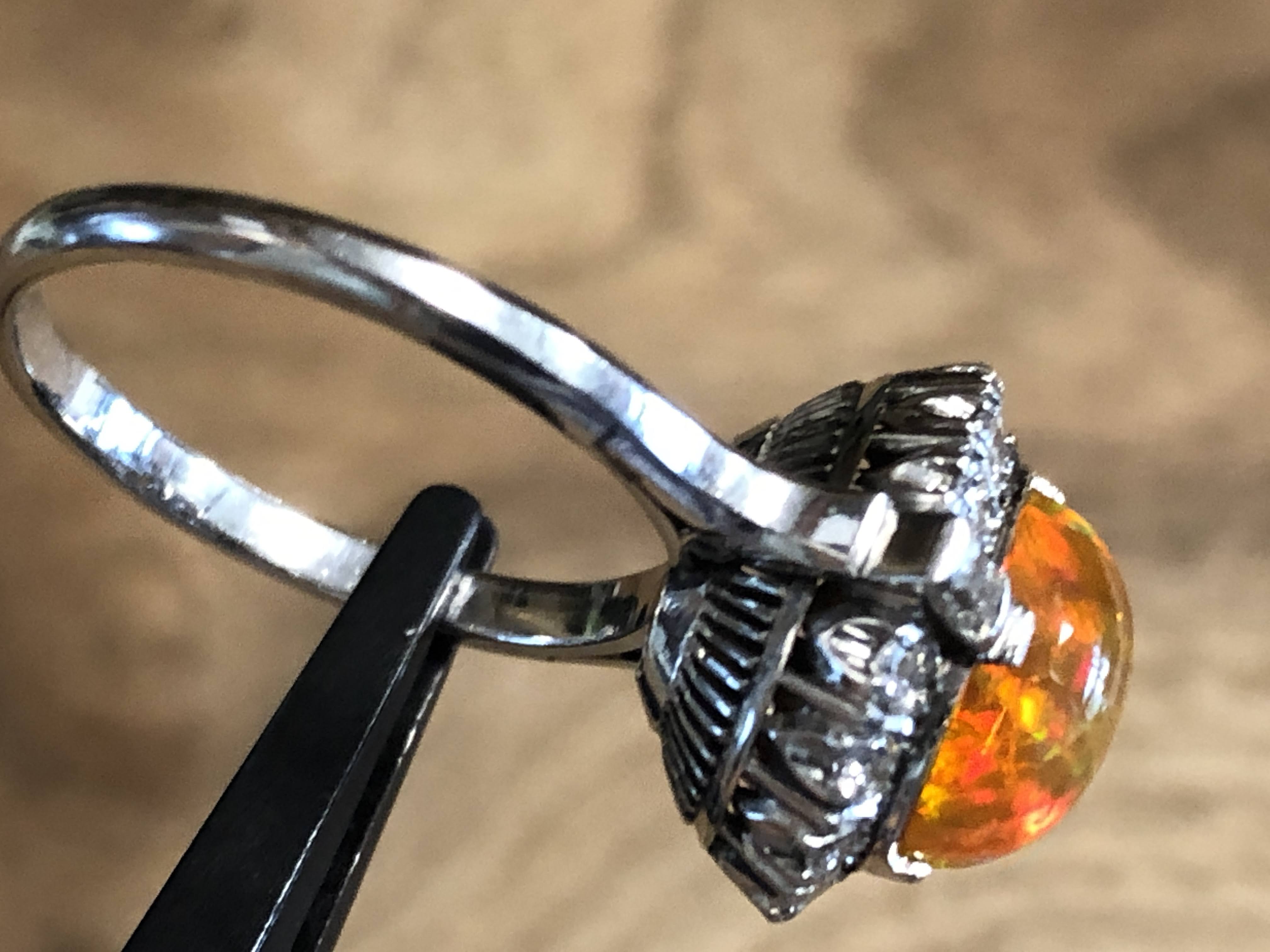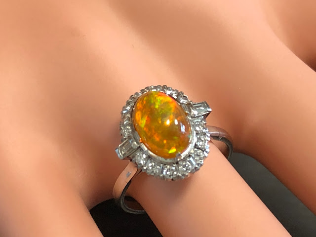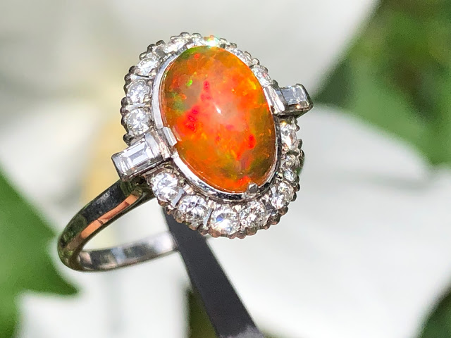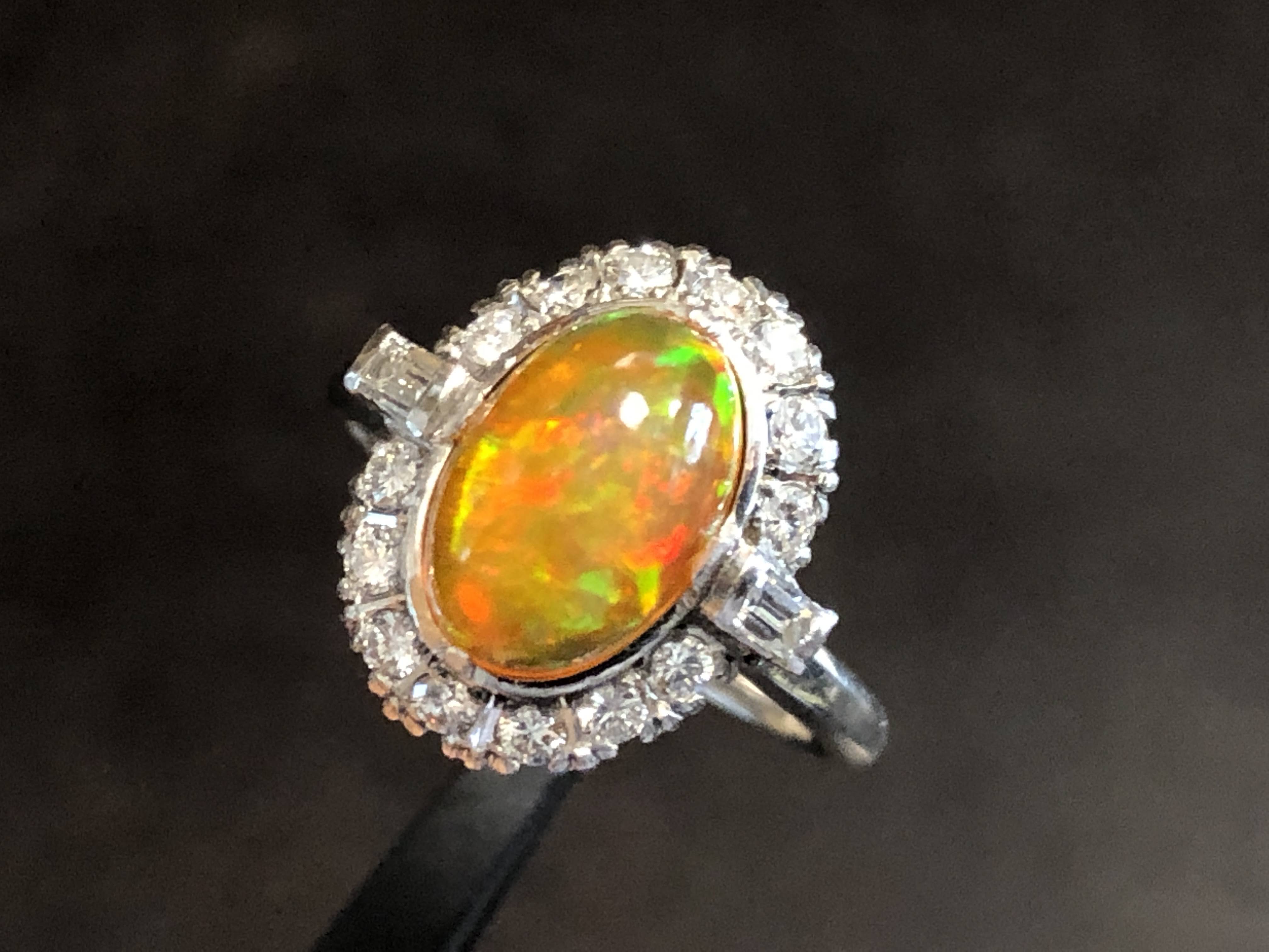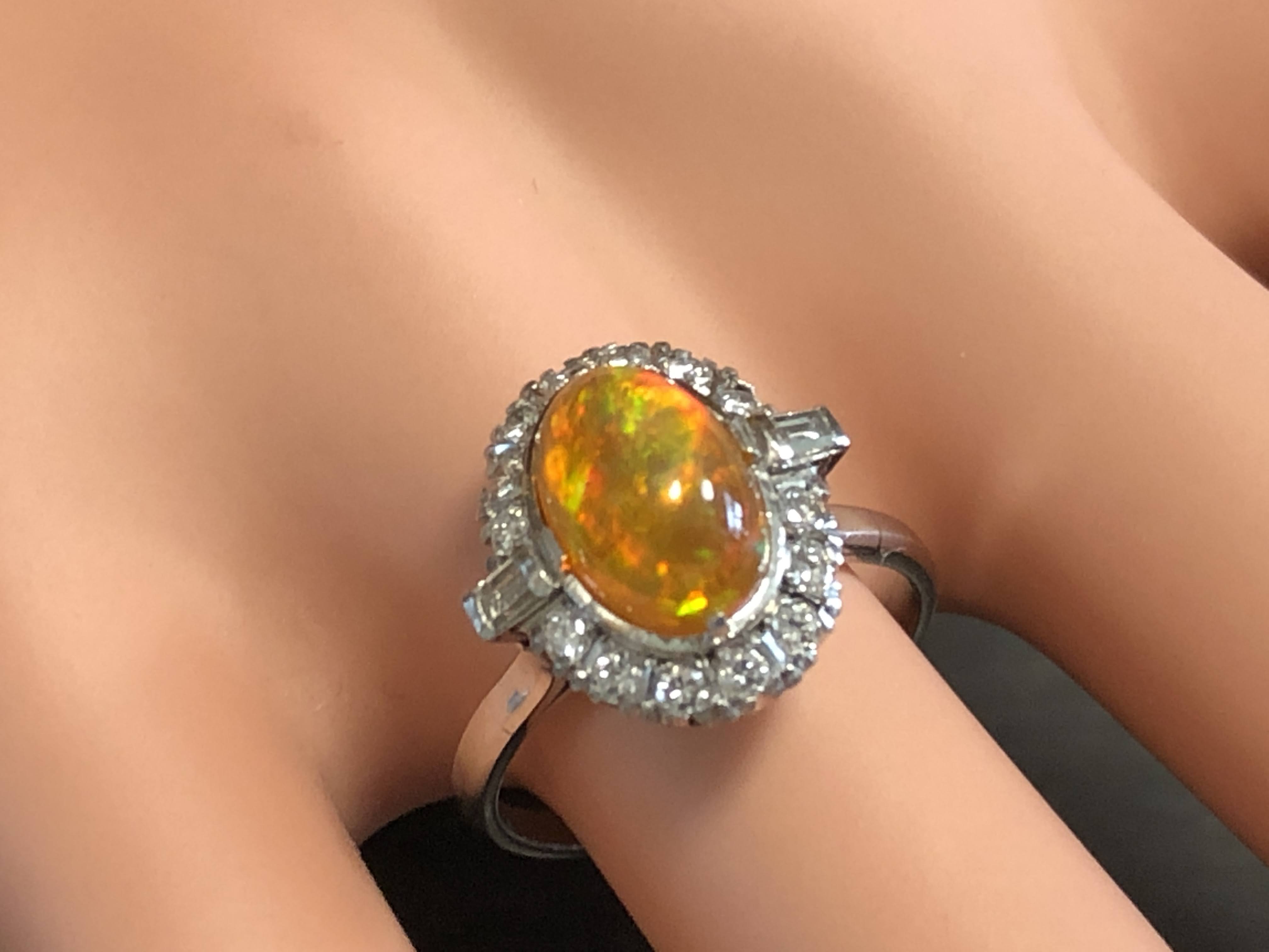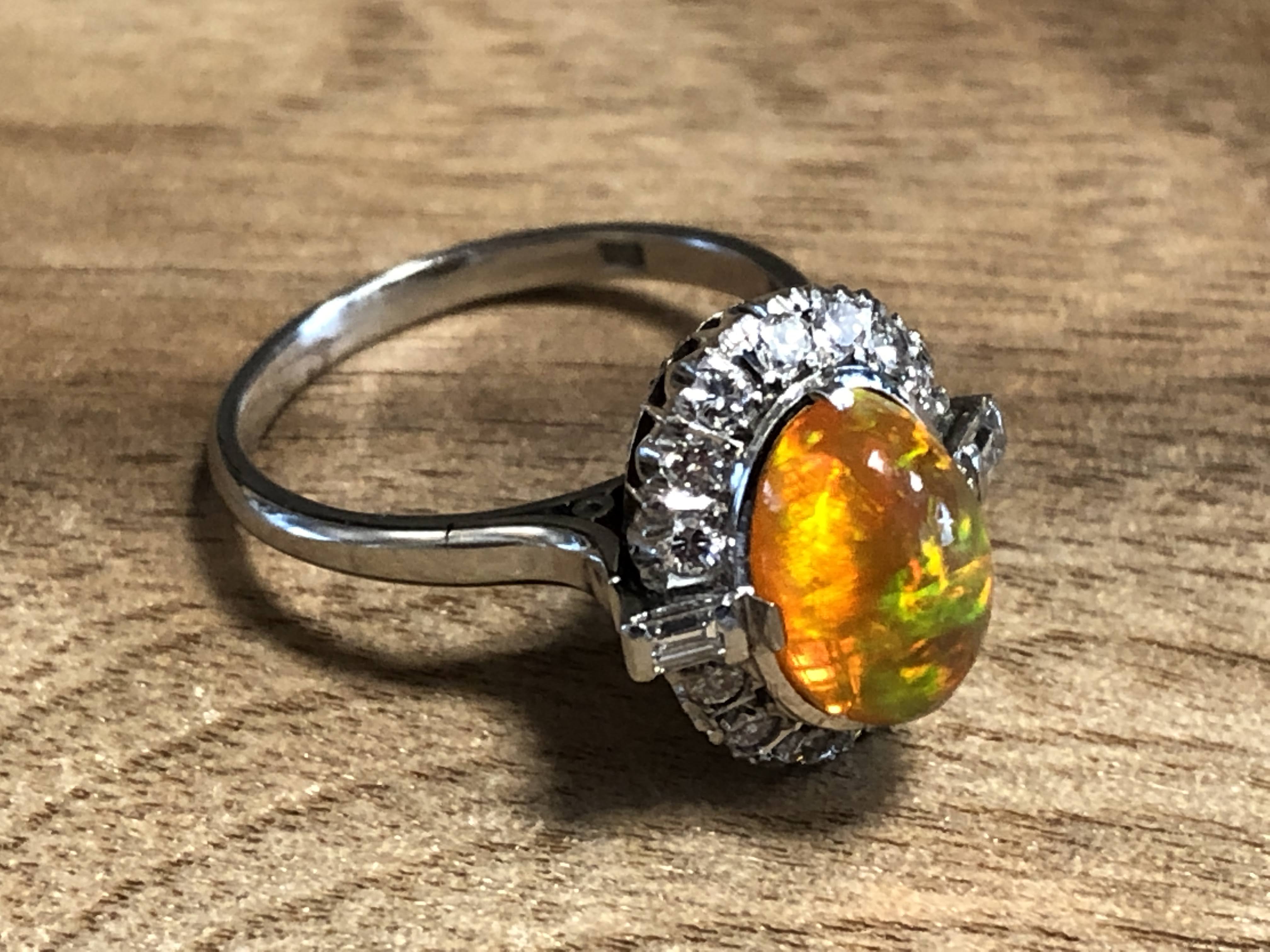 ファイヤーオパール ダイヤモンド取巻き P.m リング #11.6 昭和ジュエリー /08031