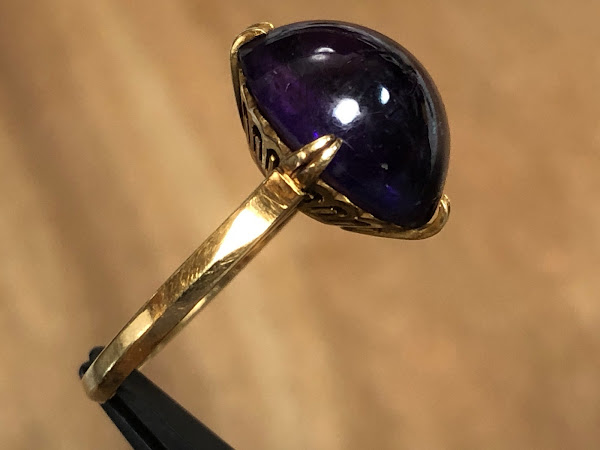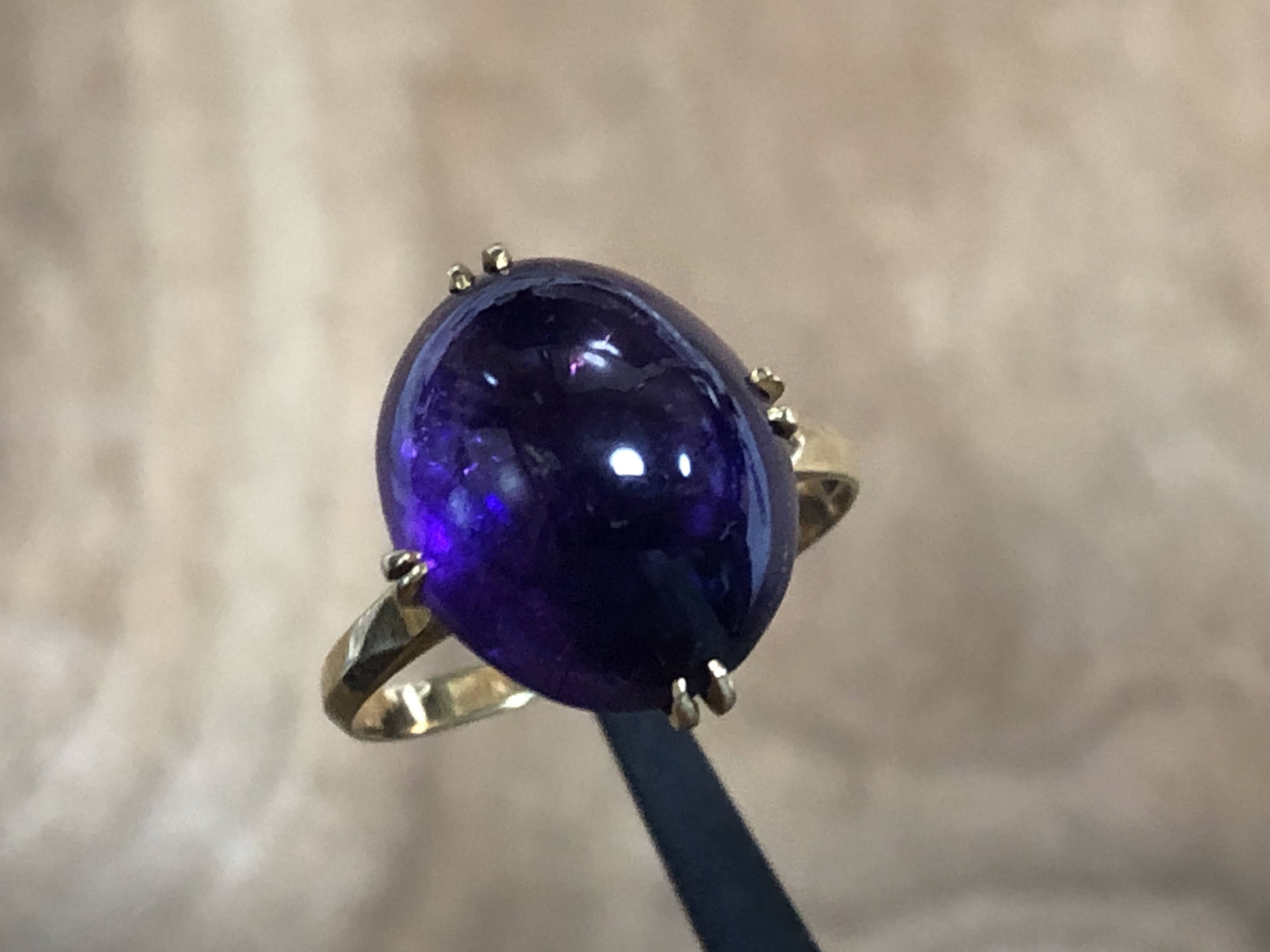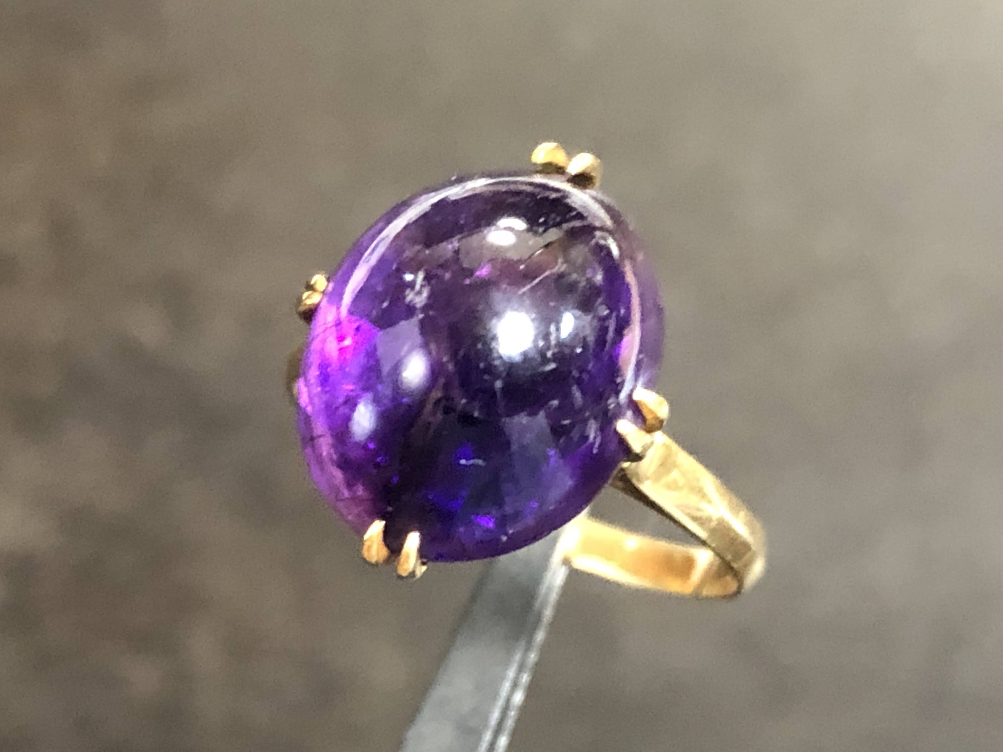 やや小ぶりのアメシスト 王冠透かし K18 リング #10 昭和 /09071
