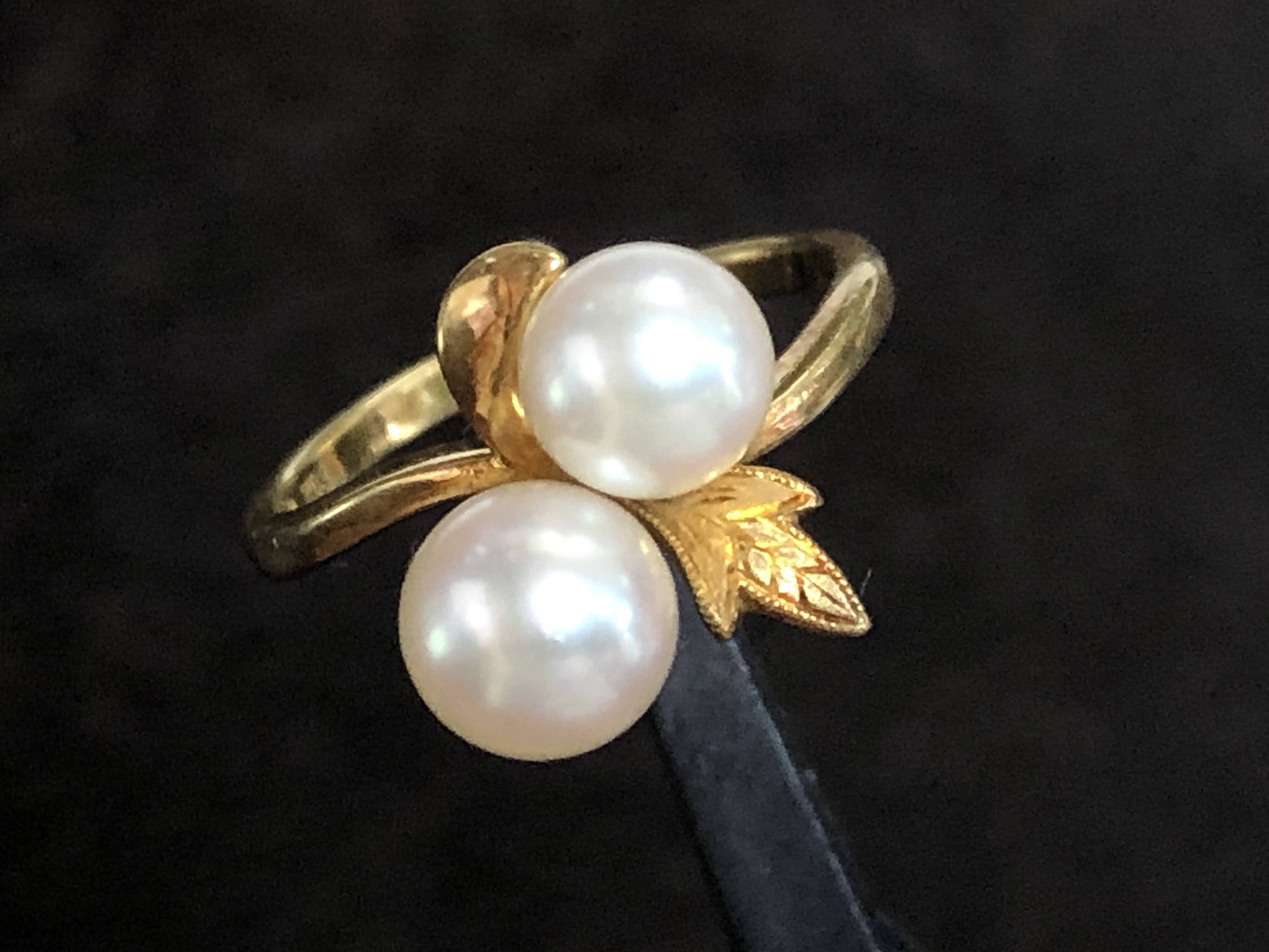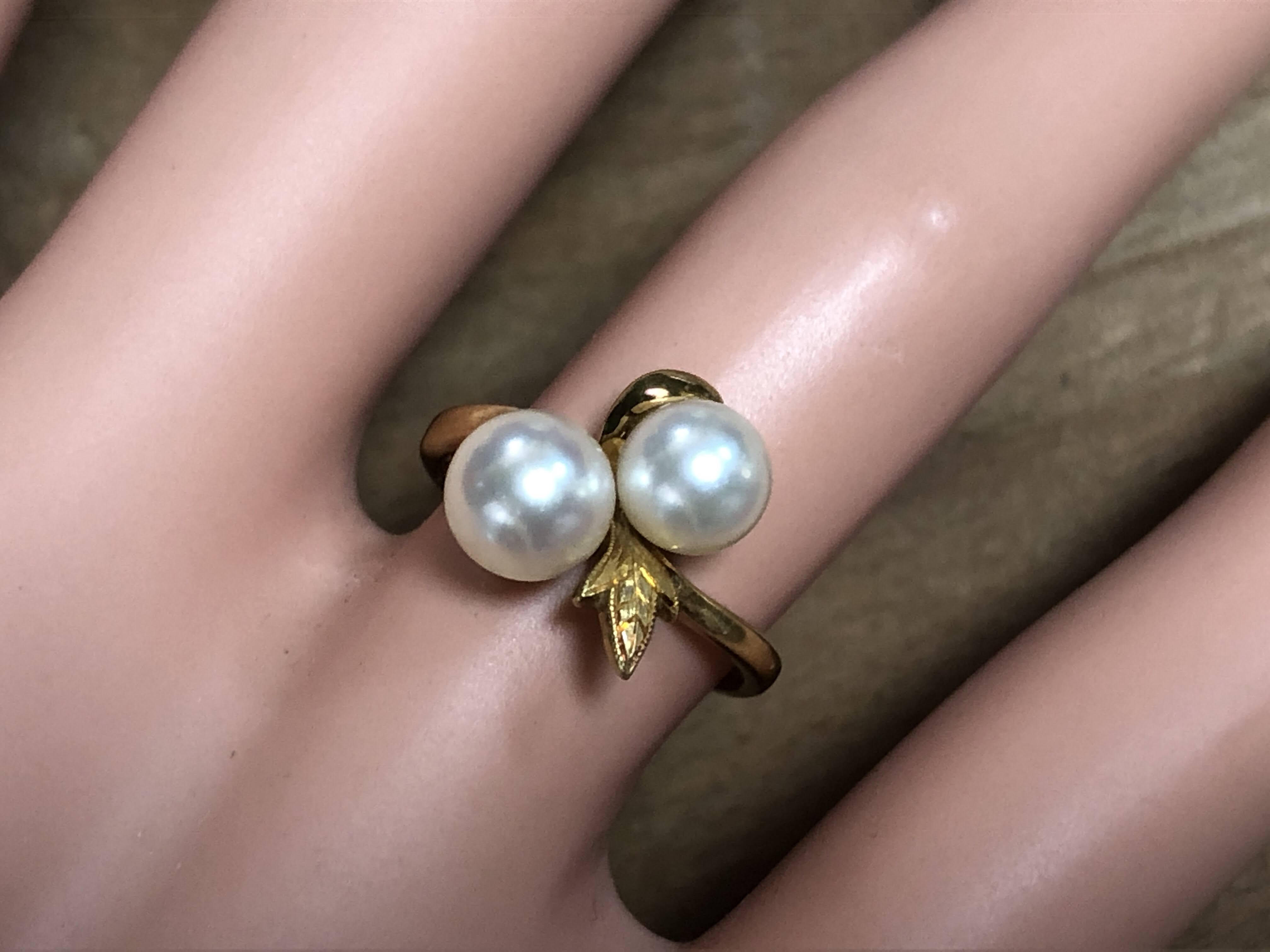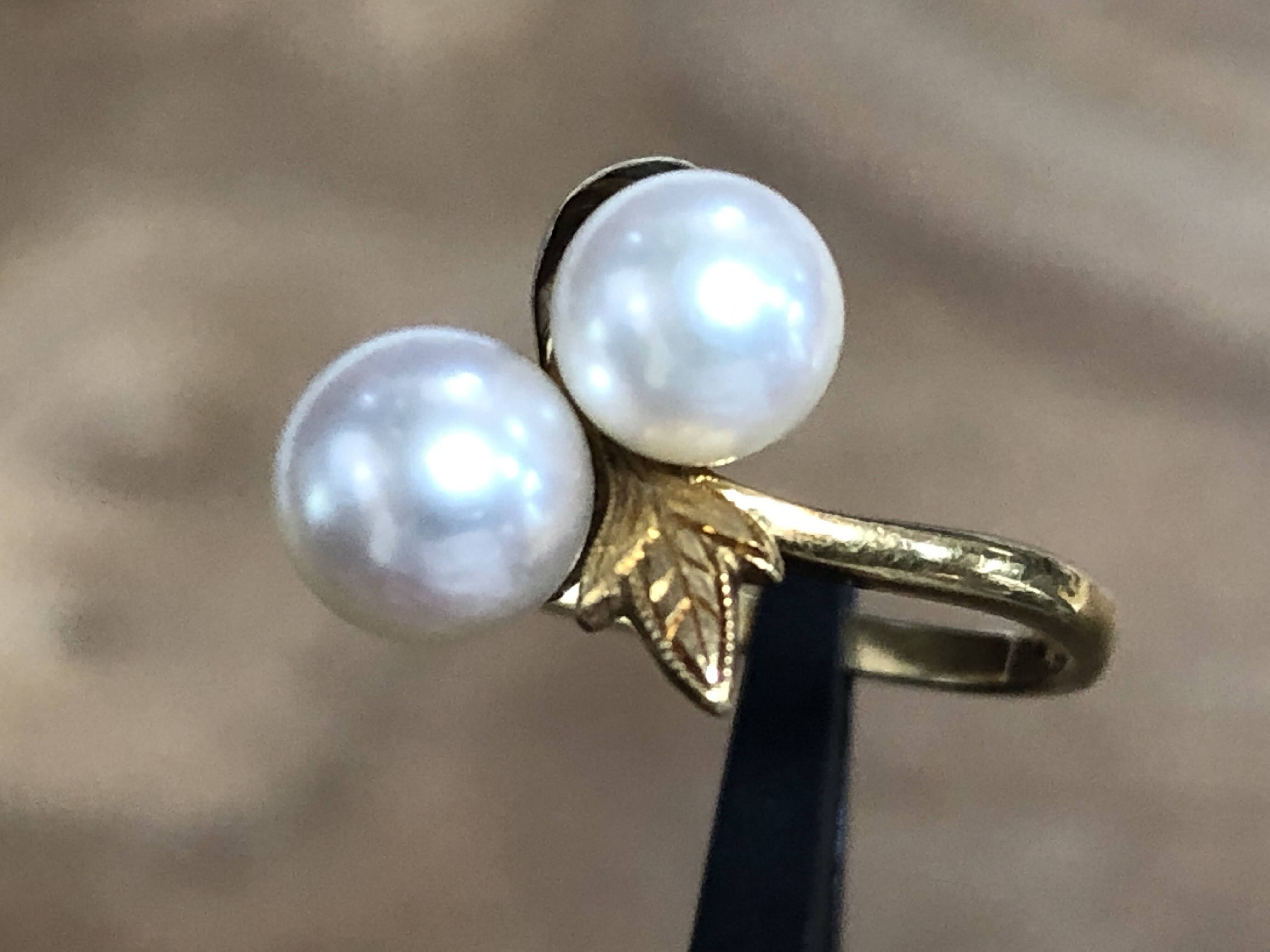 やや小粒 ミキモト アコヤ真珠 トワ・エ・モア K18 リング #7 昭和 /09201