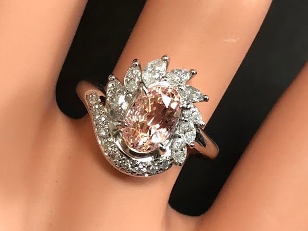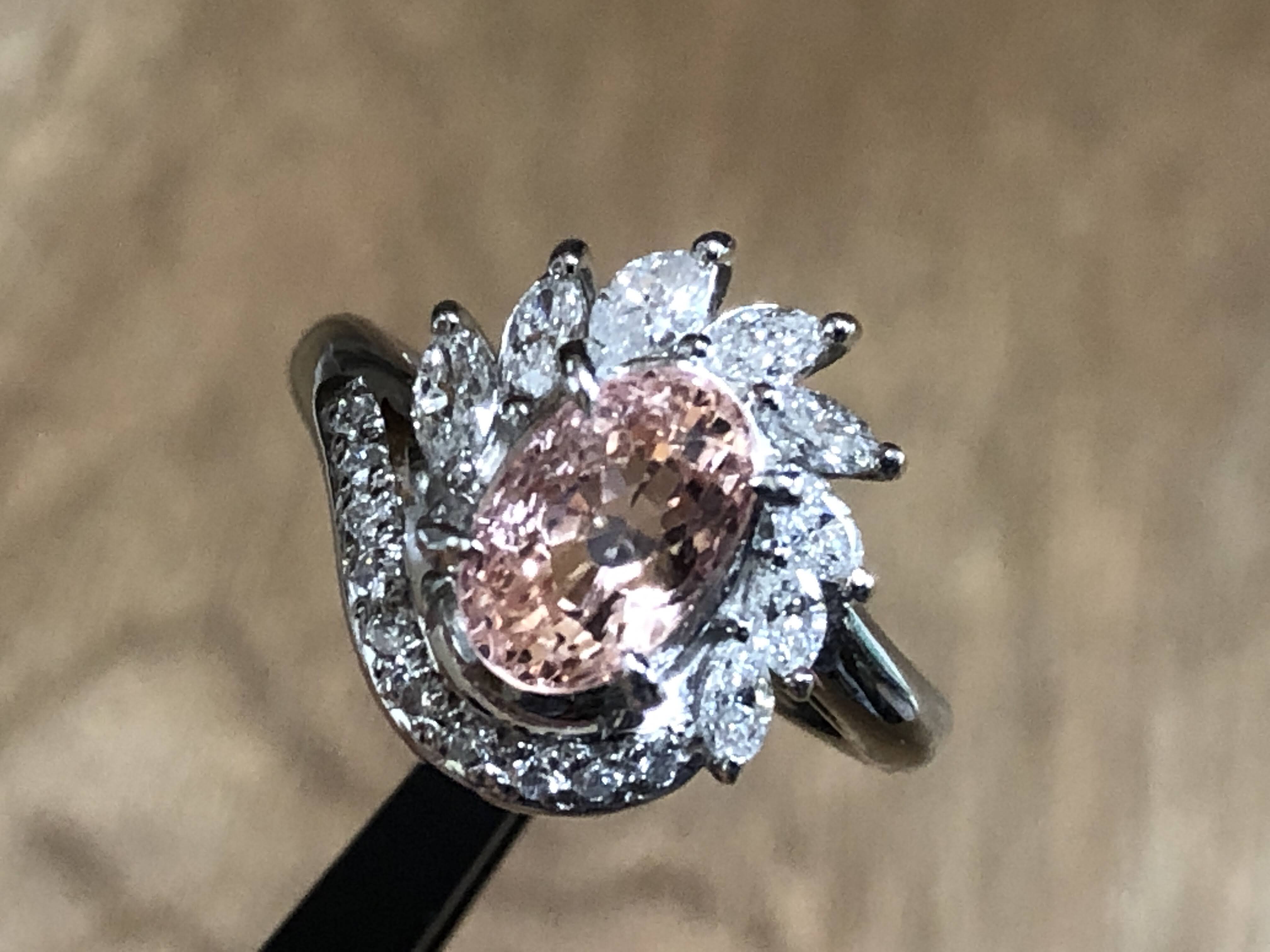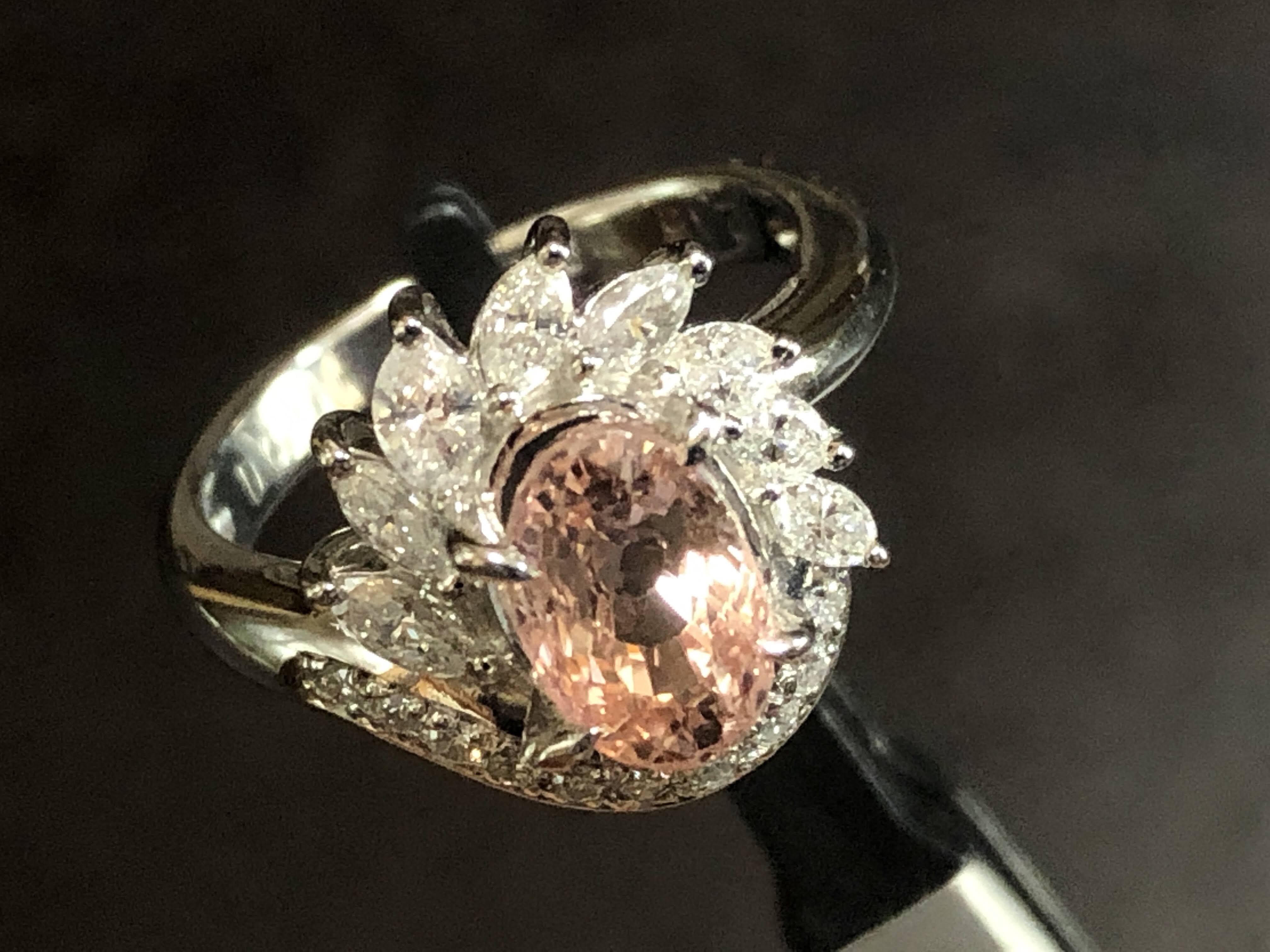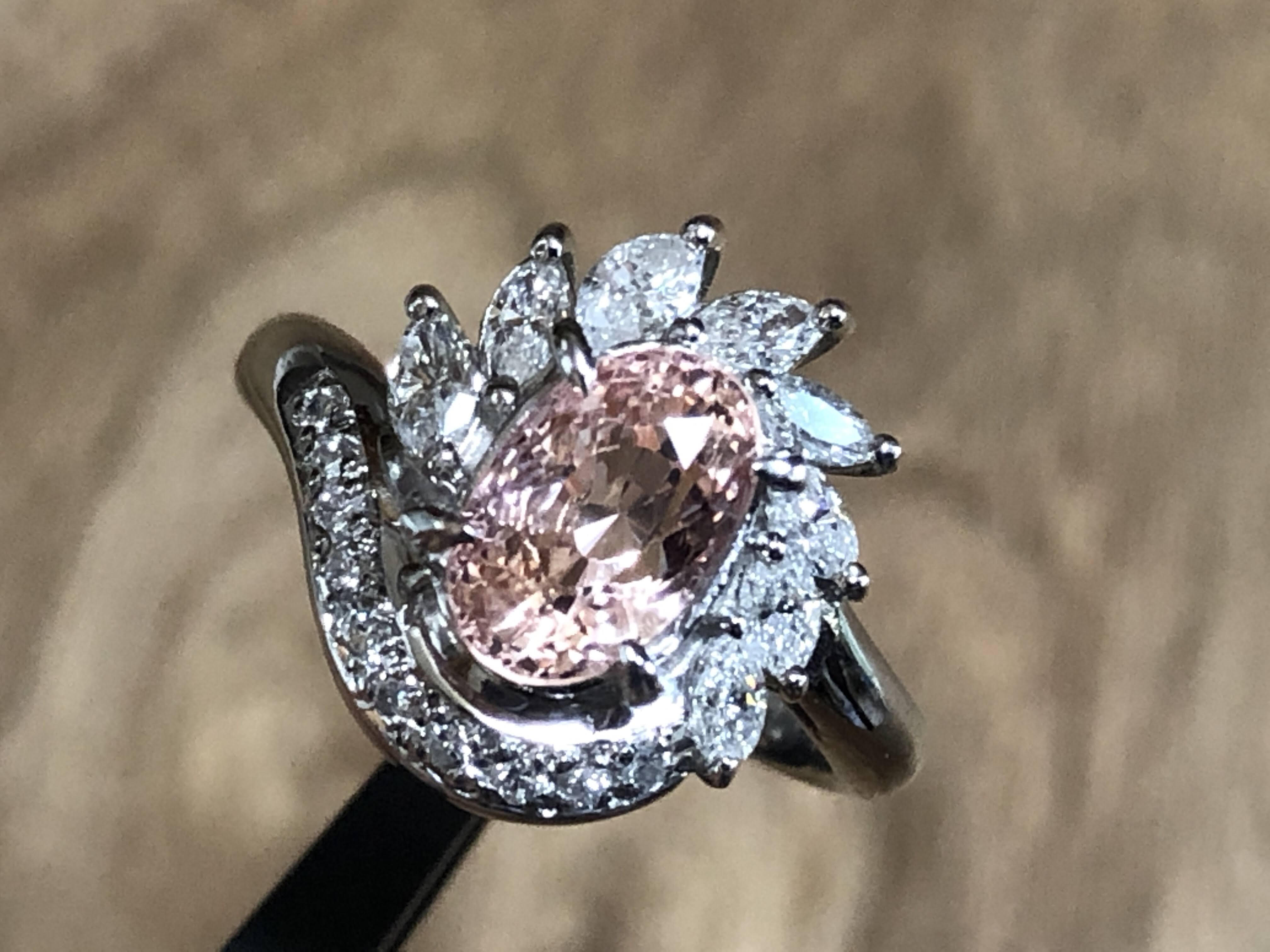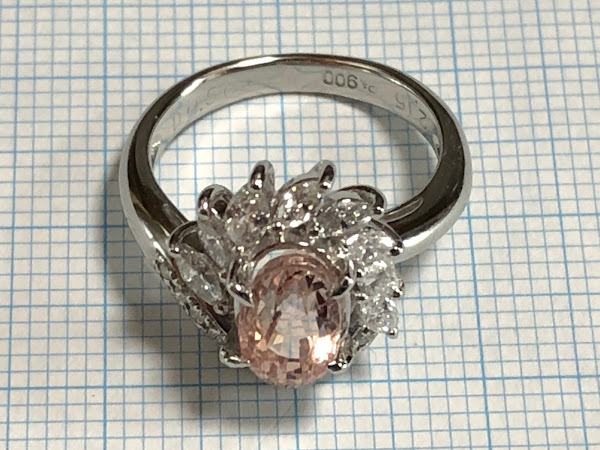 淡い色 非加熱 オレンジサファイア2ct ダイヤモンド Pt900 リング #8 平成? /09271