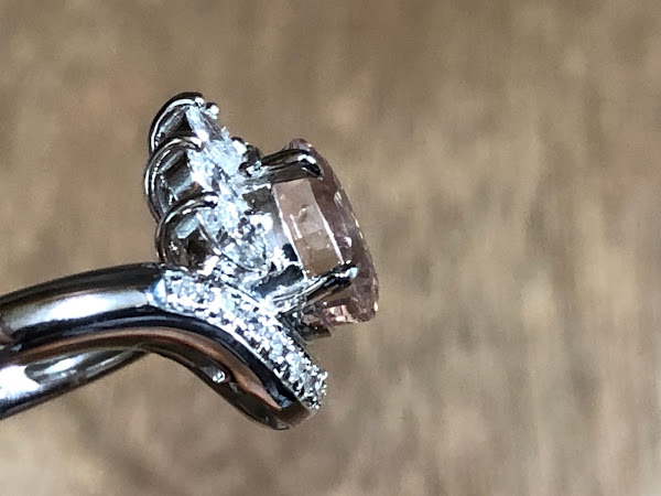 マーキスカットのダイヤモンドはルーペで見てインクルーション確認できますが、透明感阻害されているものは無く、楽しめます。